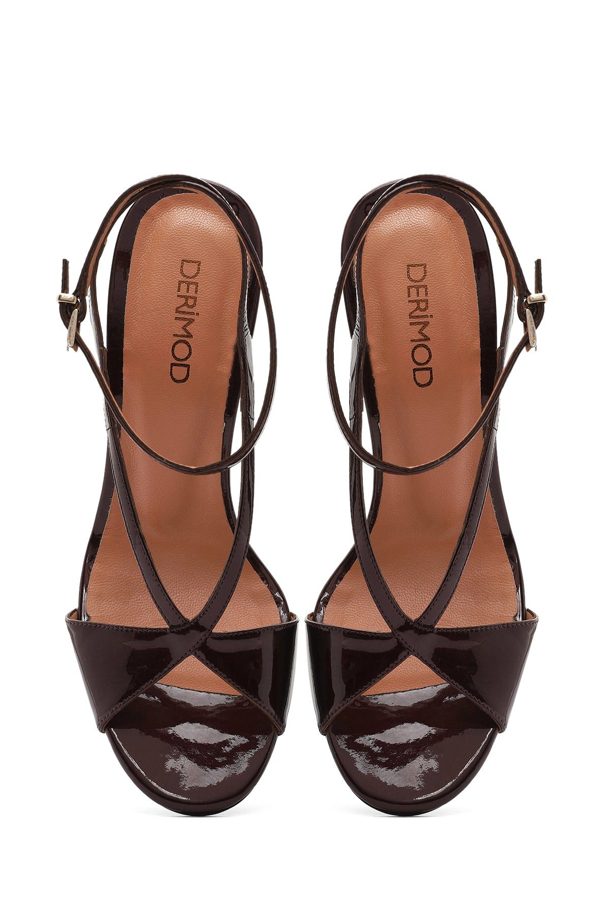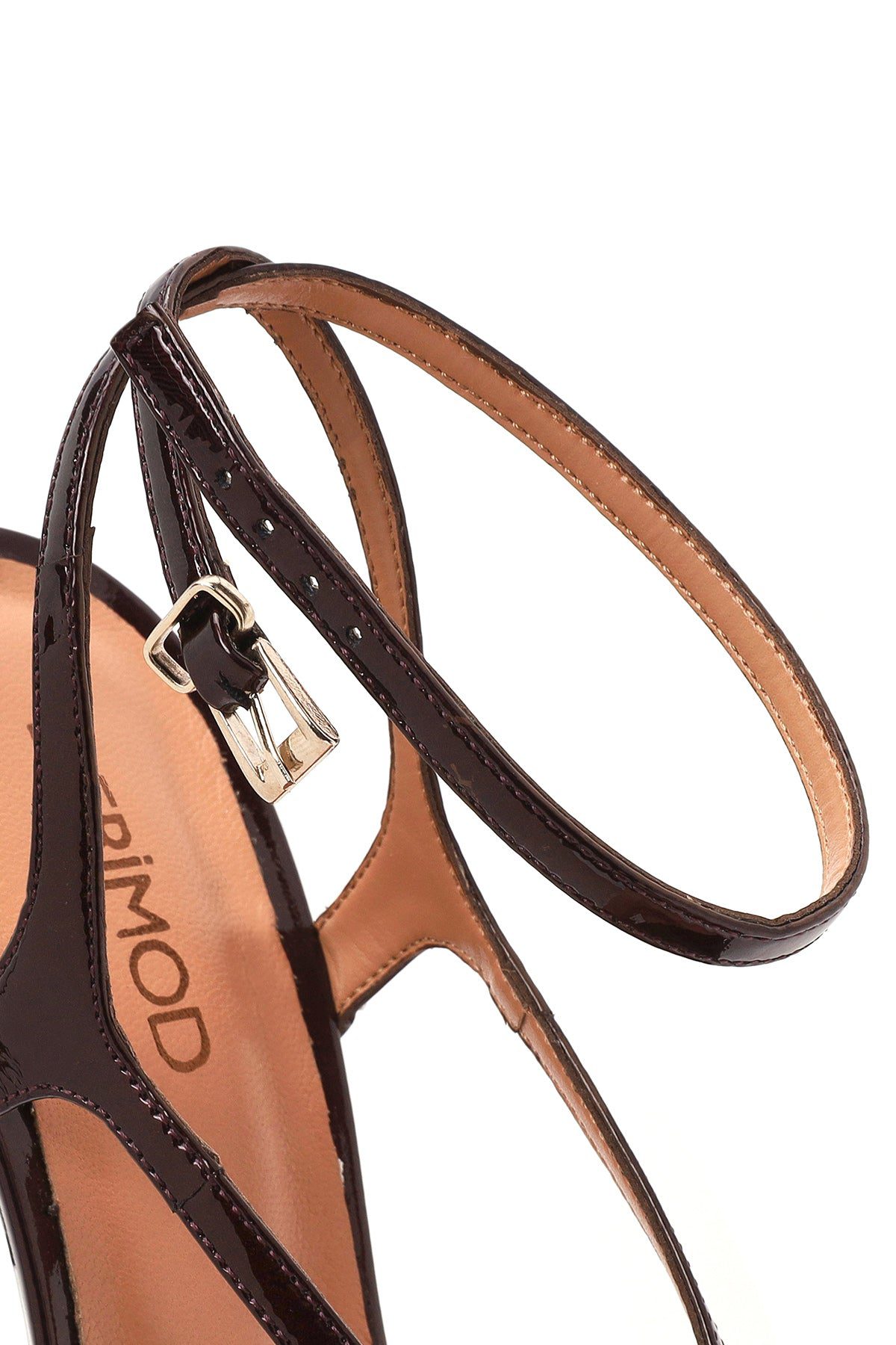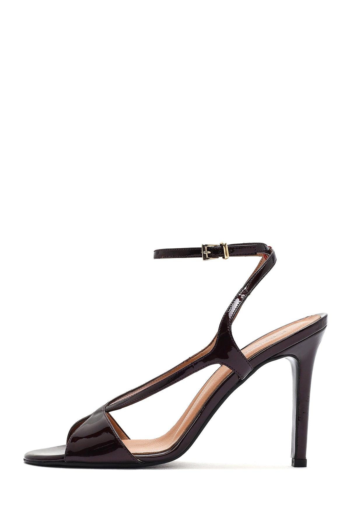 Kadın Bordo Bilekten Bantlı Yüksek İnce Topuklu Deri Sandalet