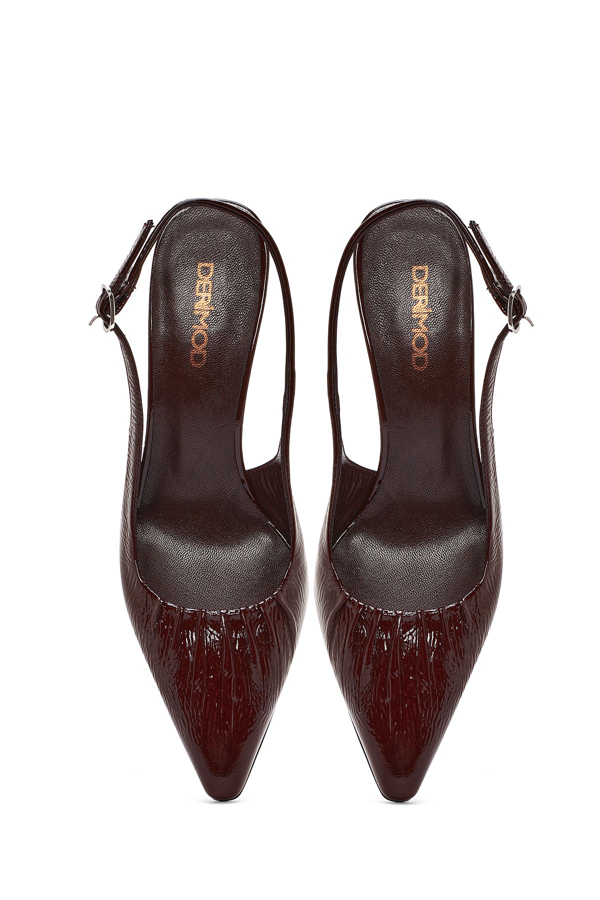 Kadın Bordo Arkası Açık İnce Topuklu Deri Ayakkabı