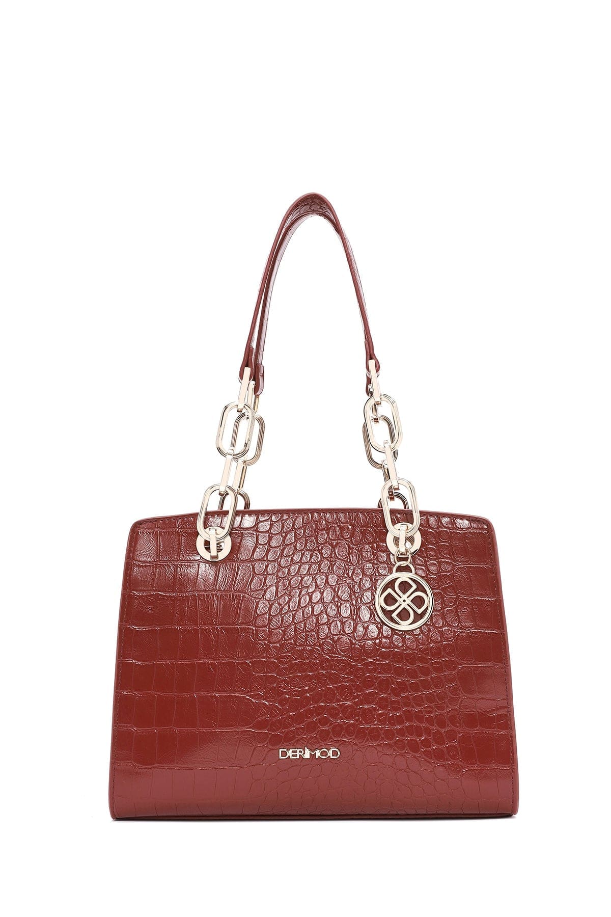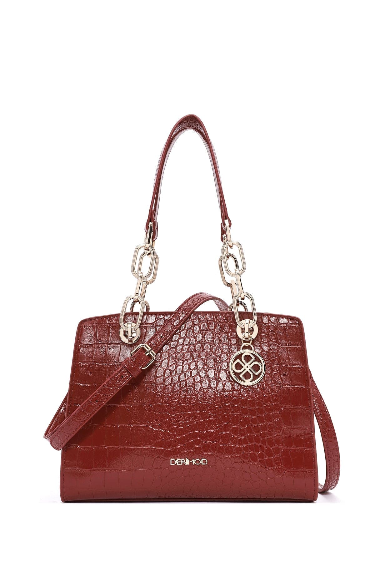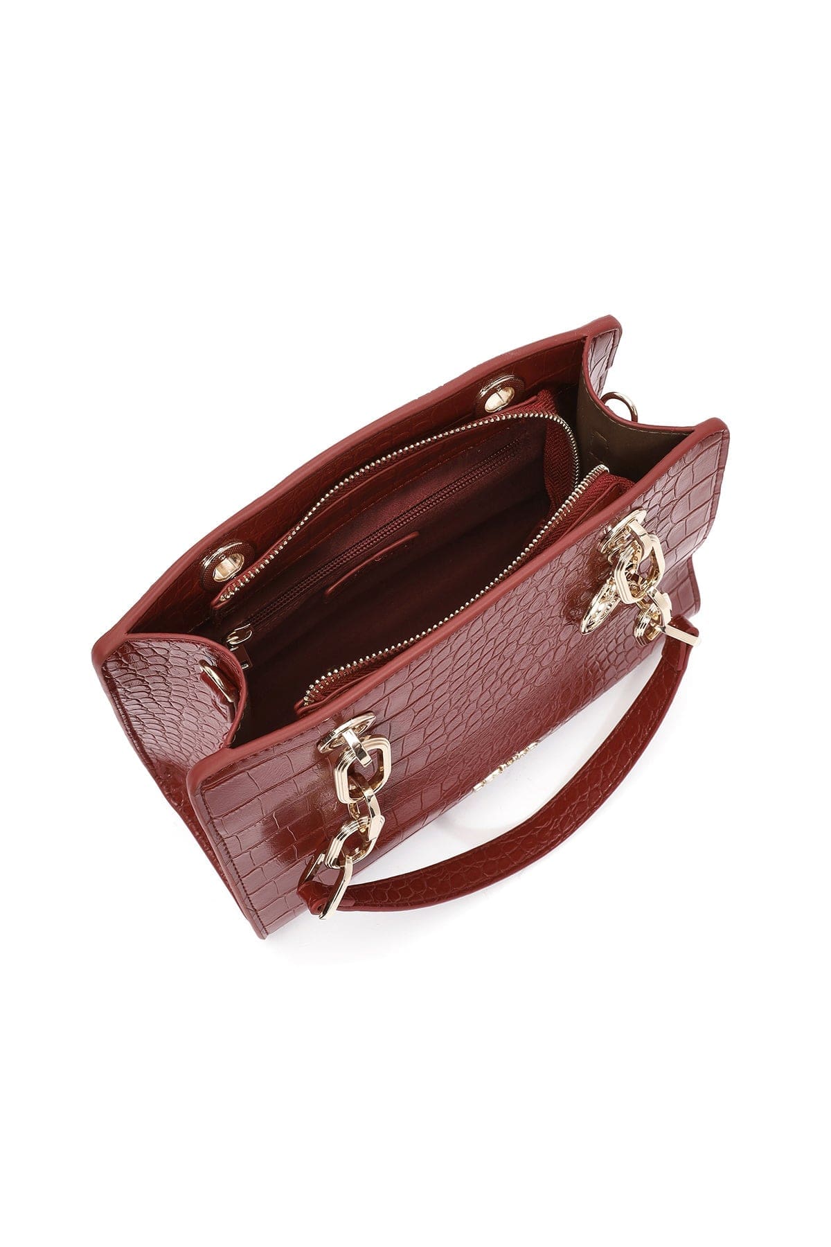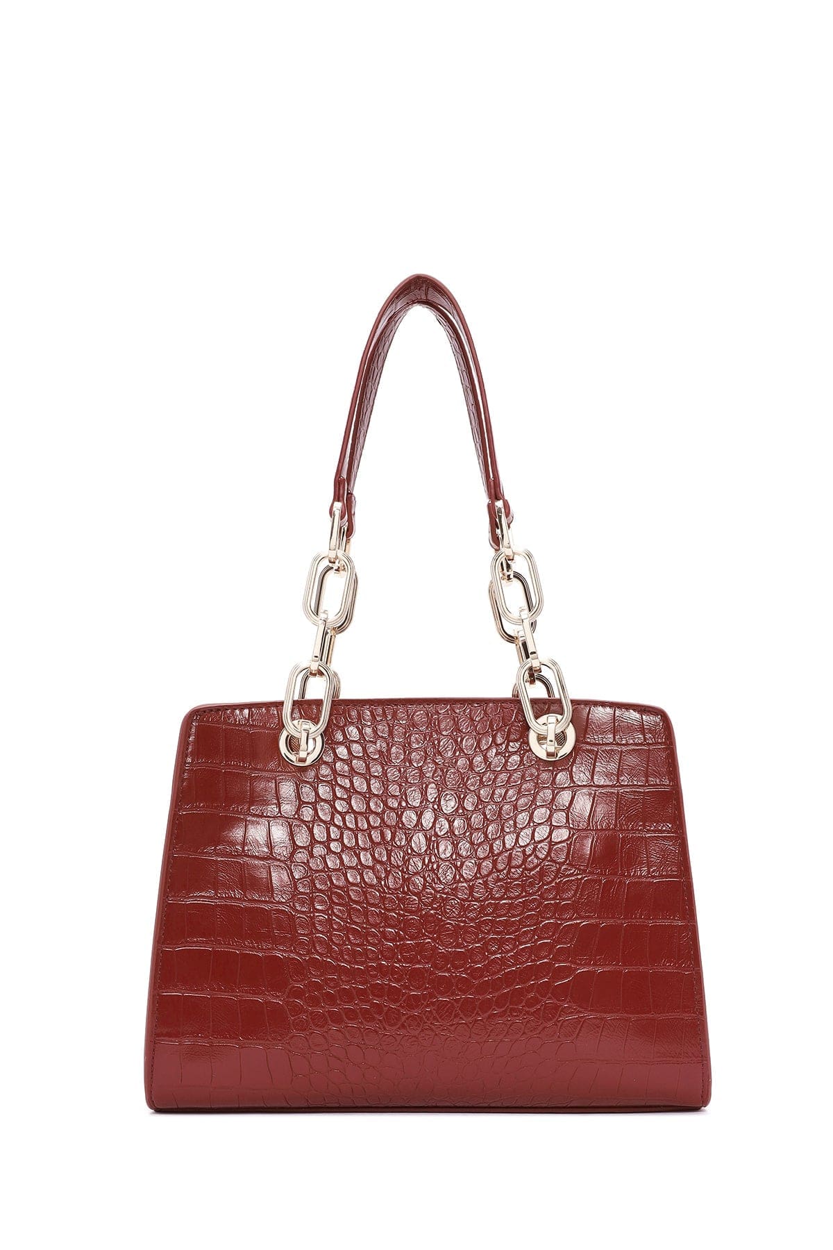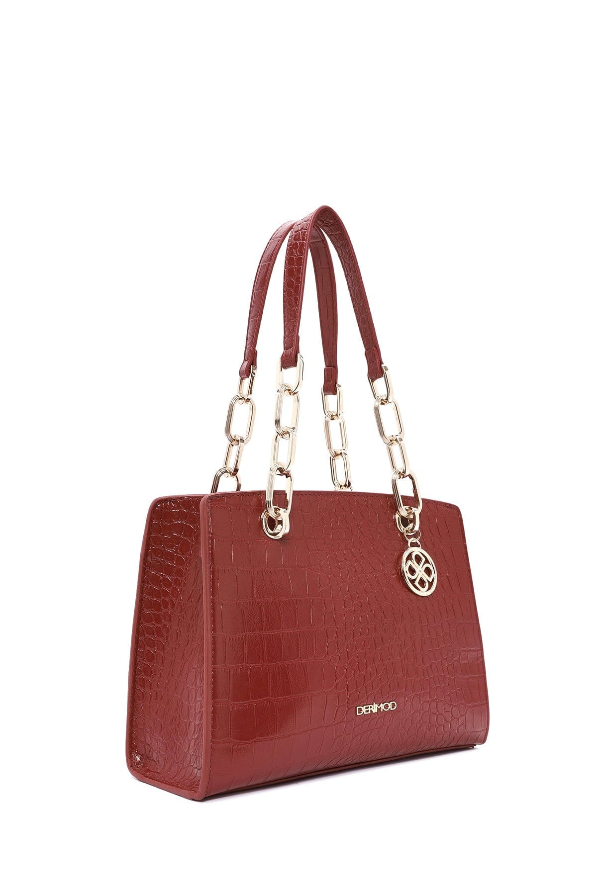 Kadın Bordo Uzun Askılı Kroko Desenli Klasik Omuz Çantası