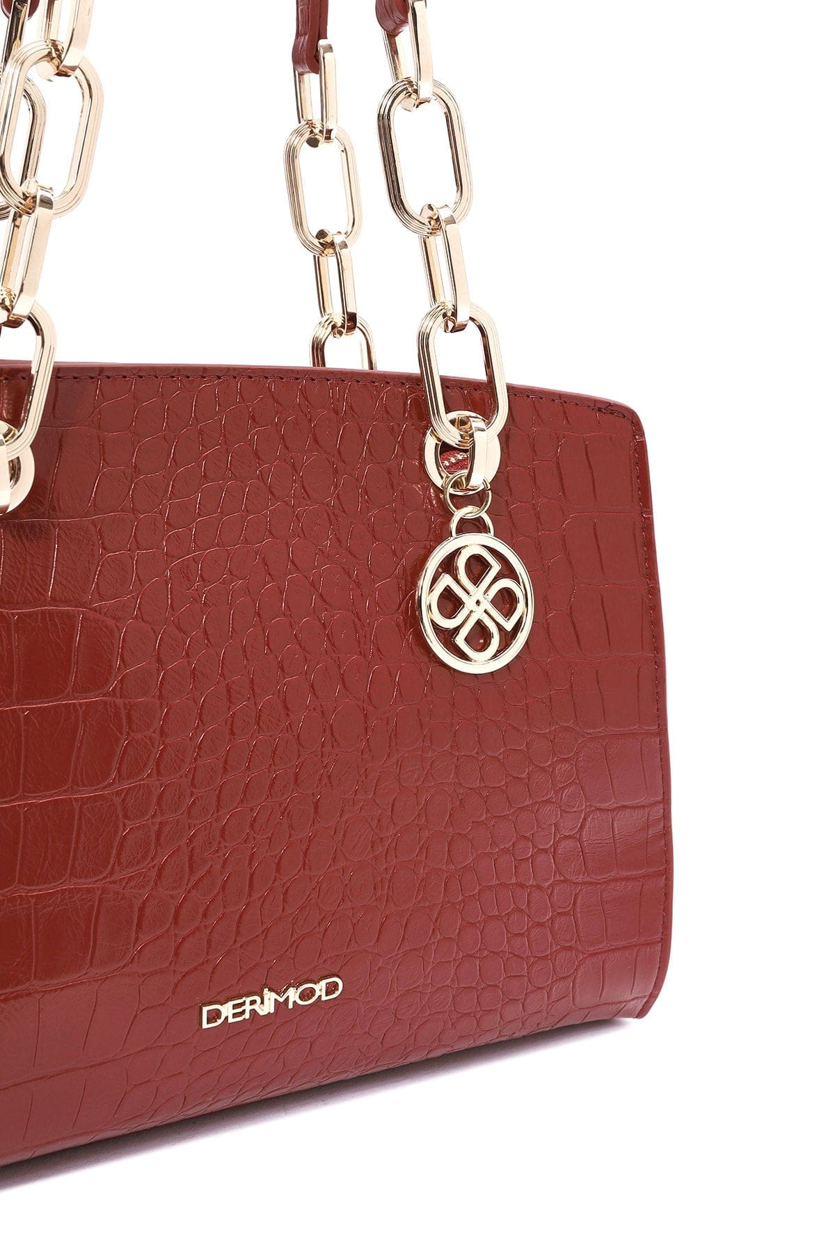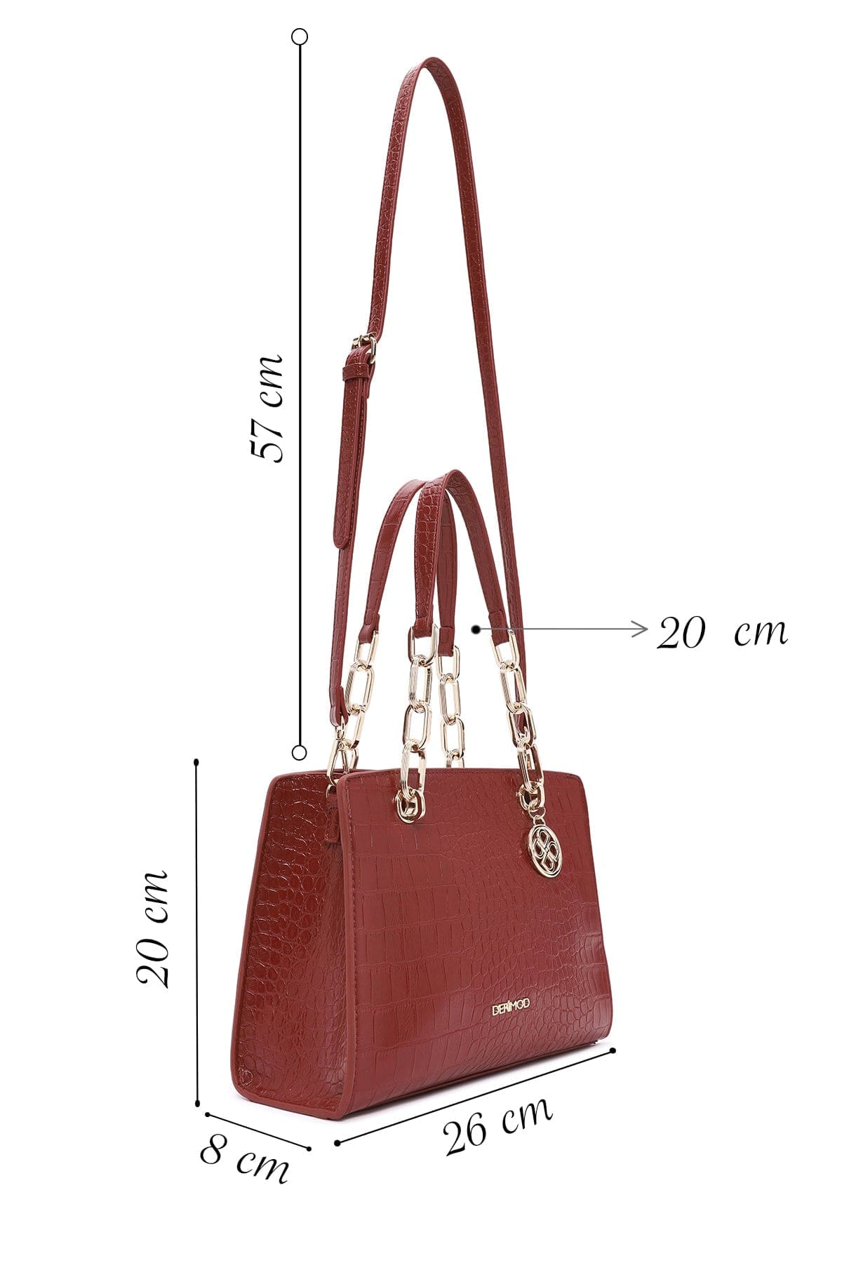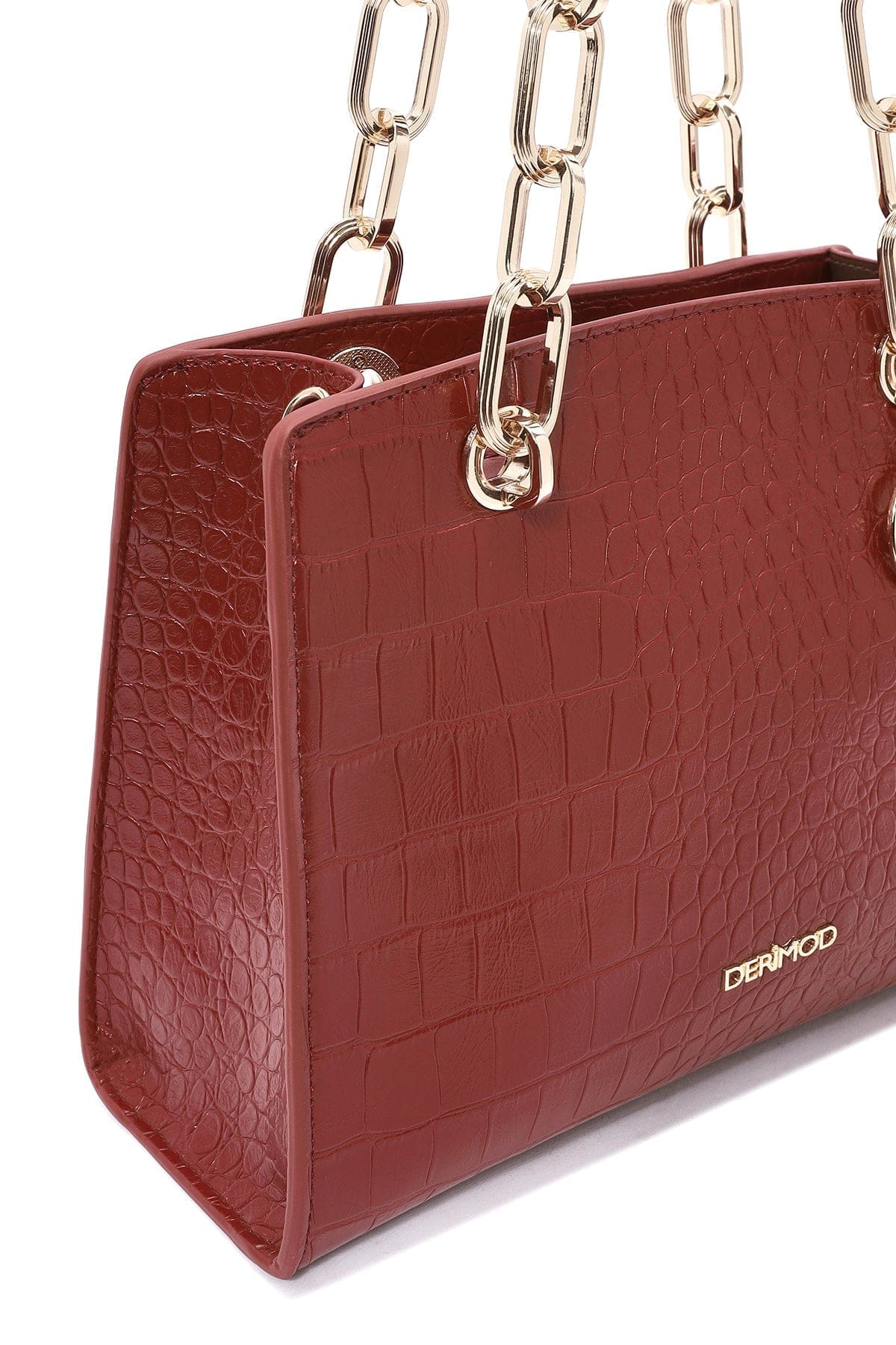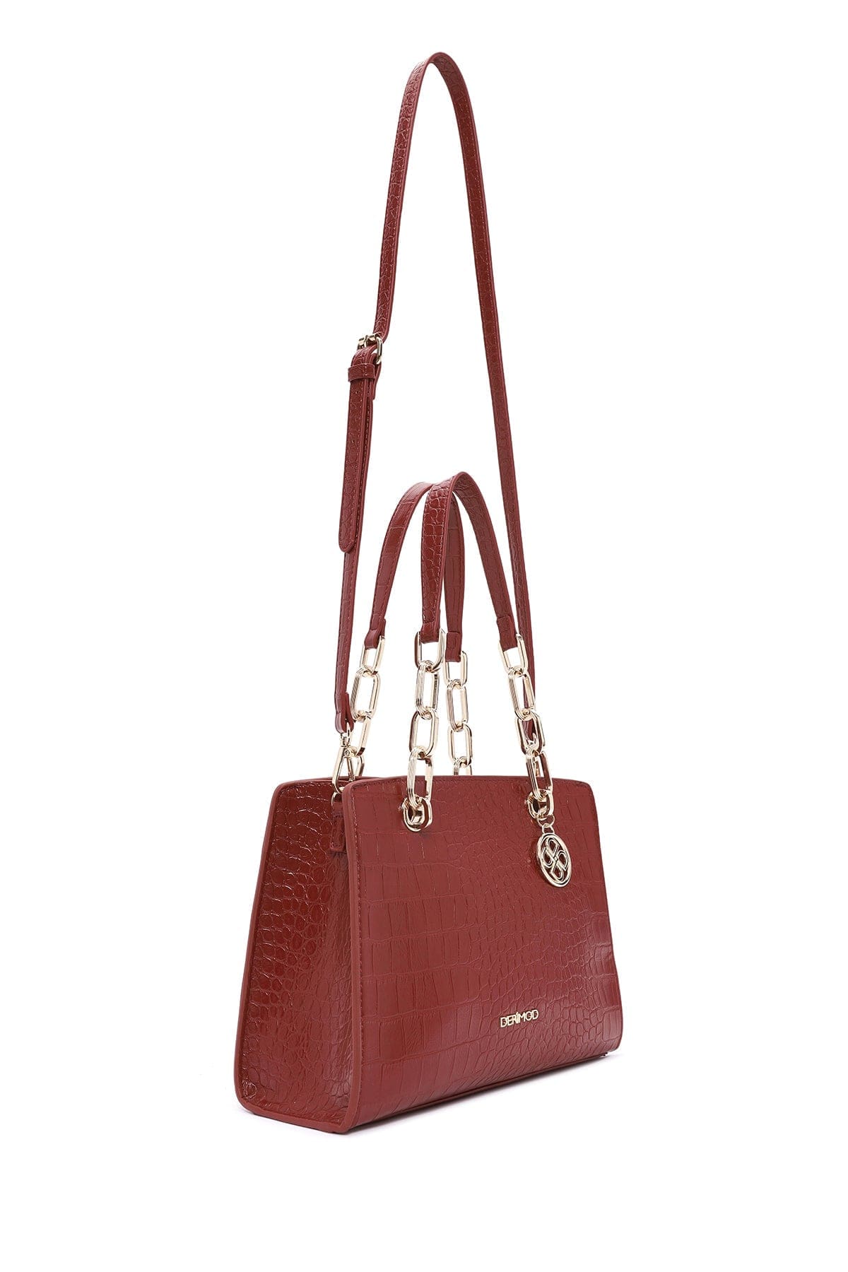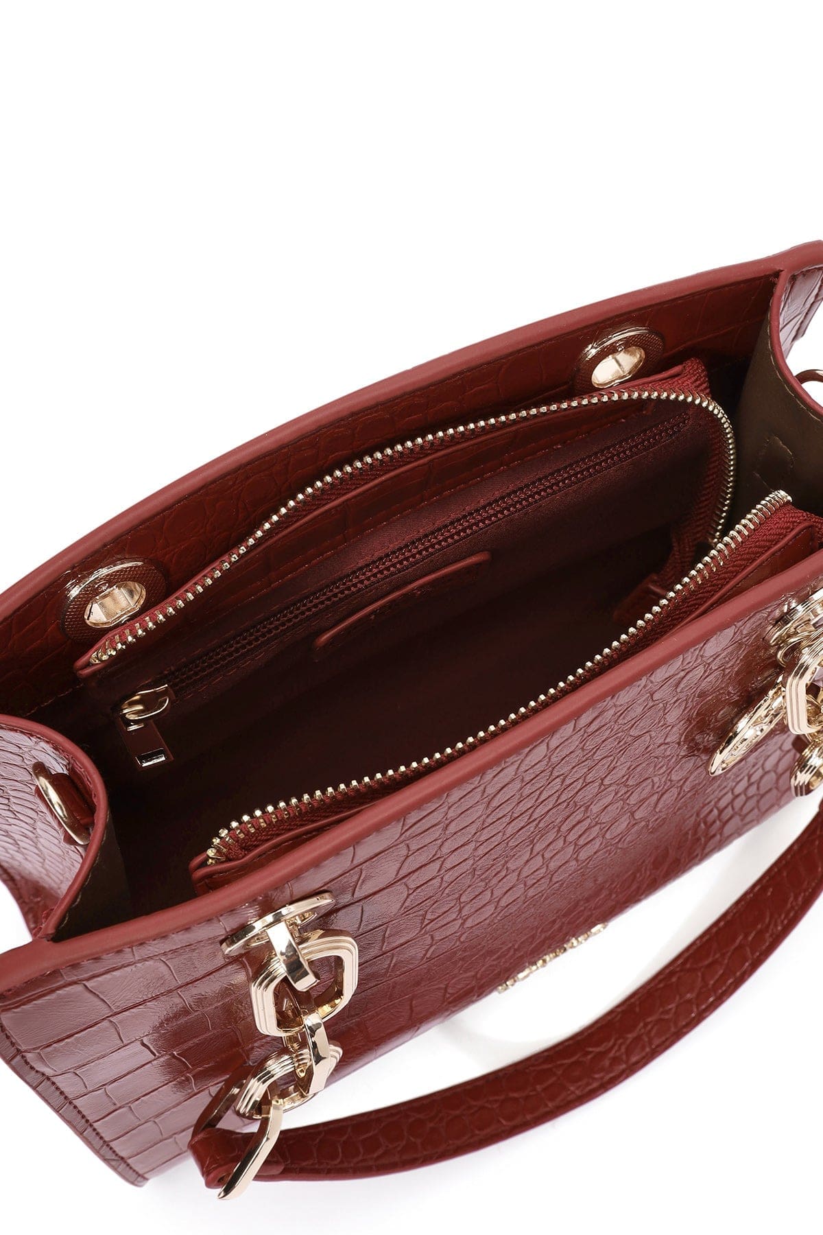 Kadın Bordo Uzun Askılı Kroko Desenli Klasik Omuz Çantası
