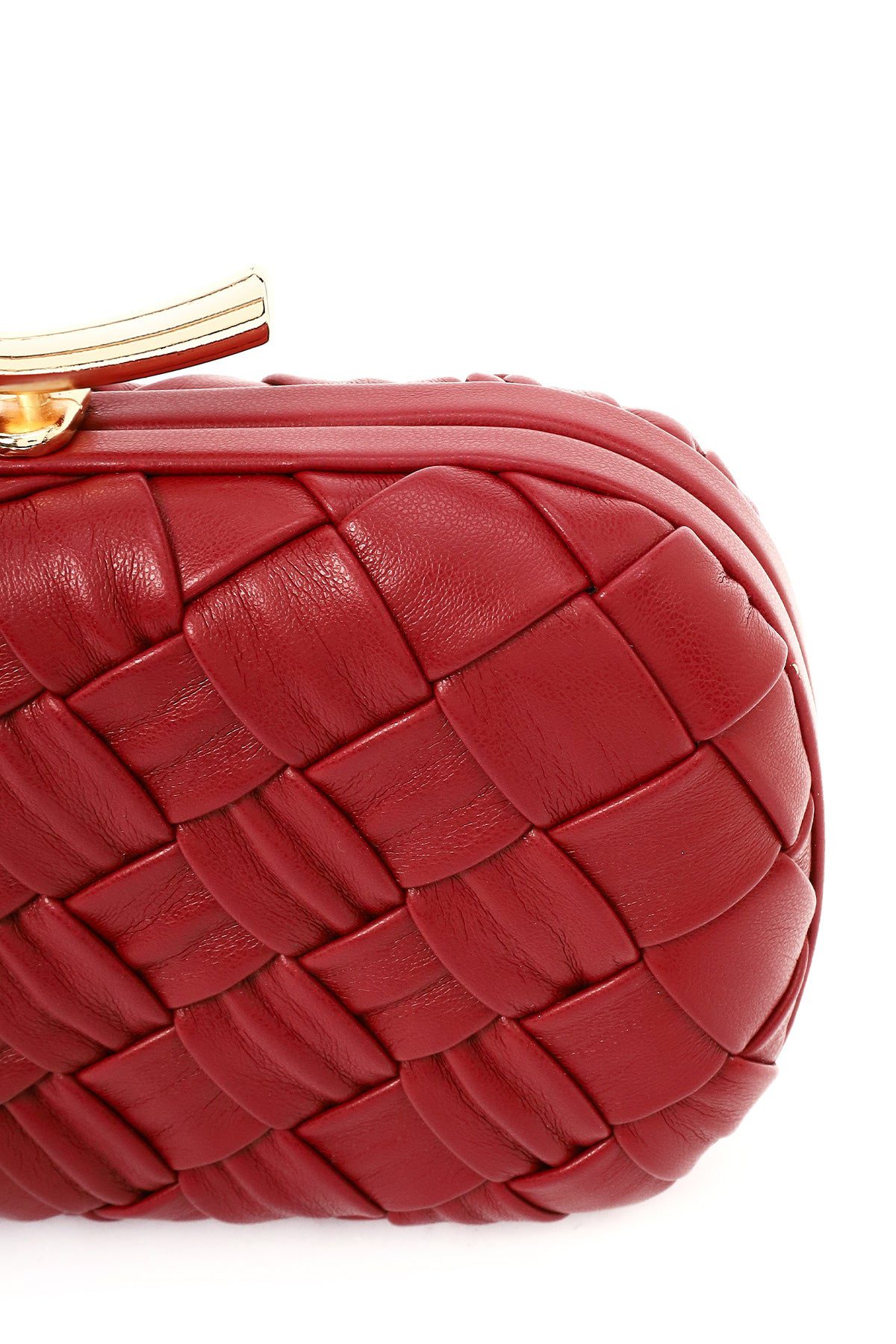 کیف مجلسی زنانه زرشکی دستی بافتنی مینی با بند زنجیری بلند دری مد
