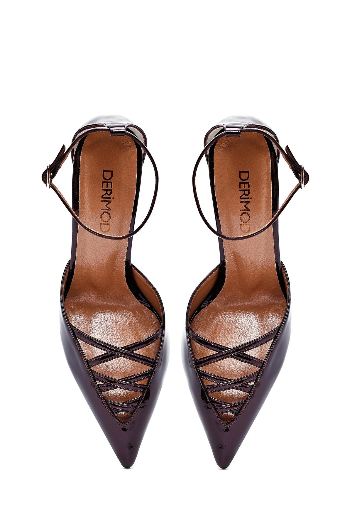 Kadın Bordo Bilekten Tokalı İnce Topuklu Rugan Deri Ayakkabı