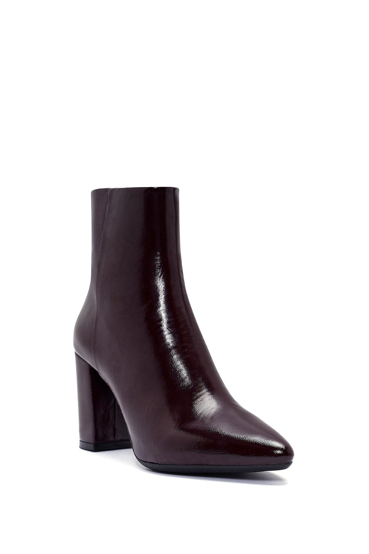 Derimod Gritti Kadın Bordo Fermuarlı Kalın Topuklu Rugan Deri Bot