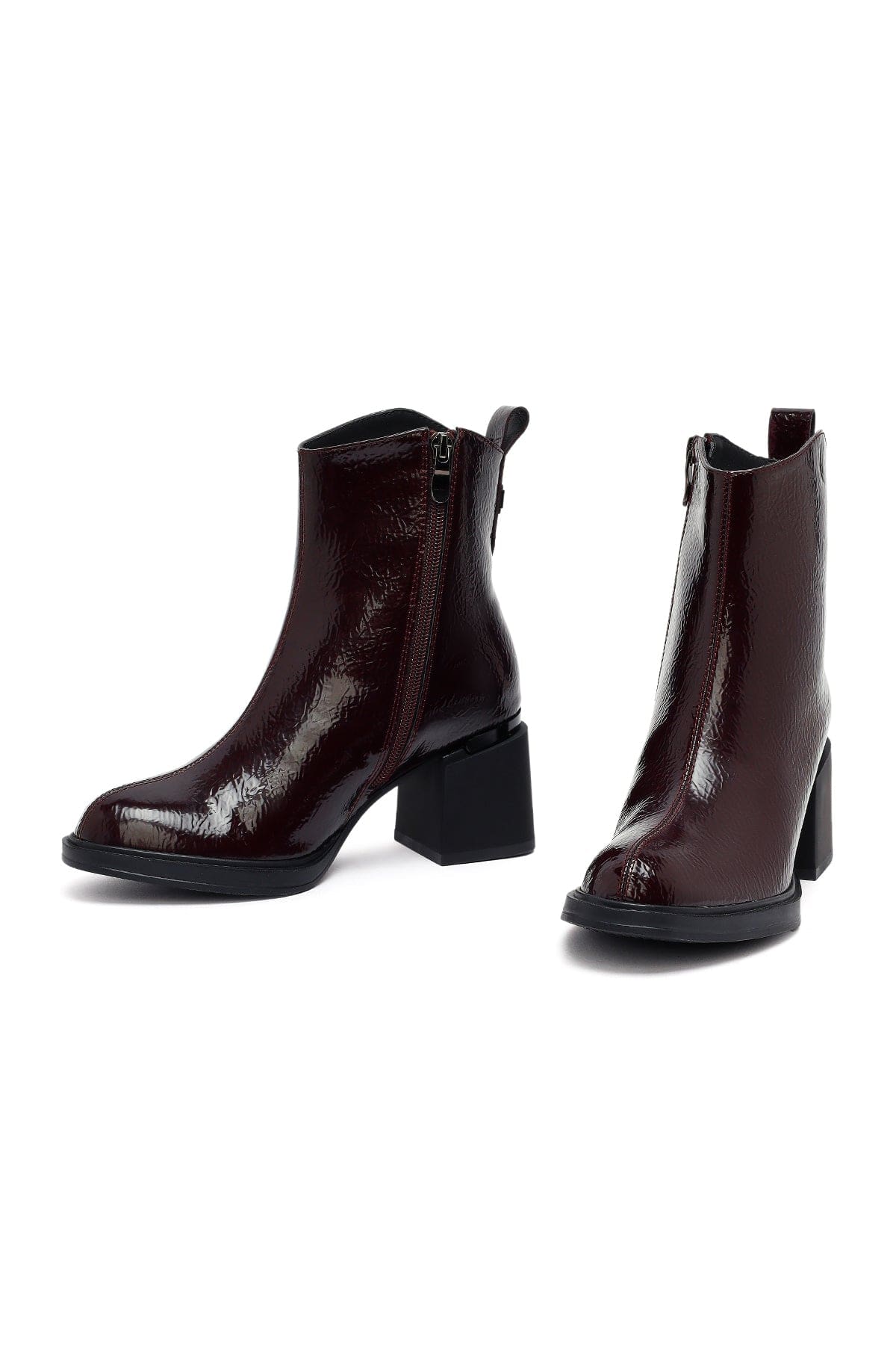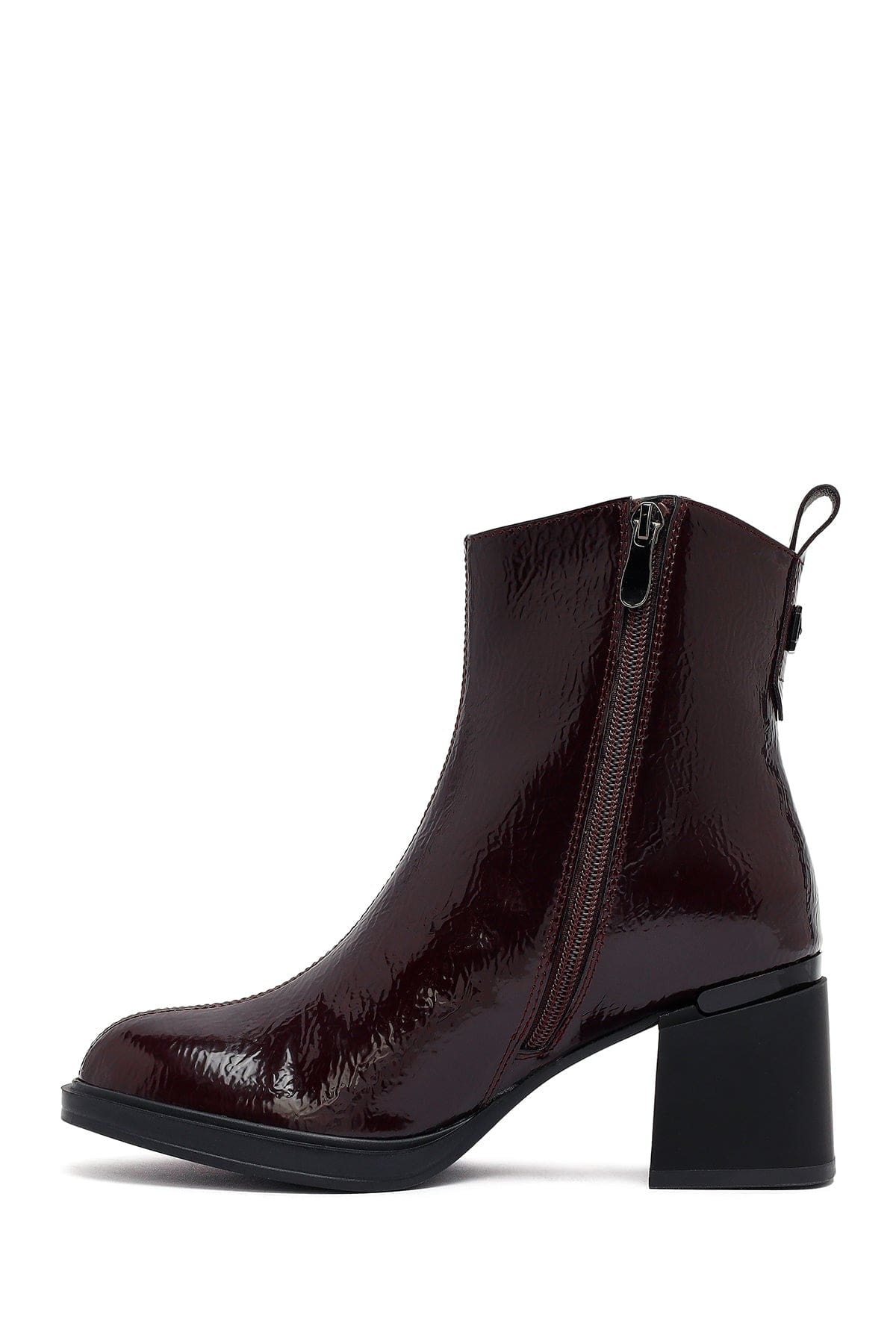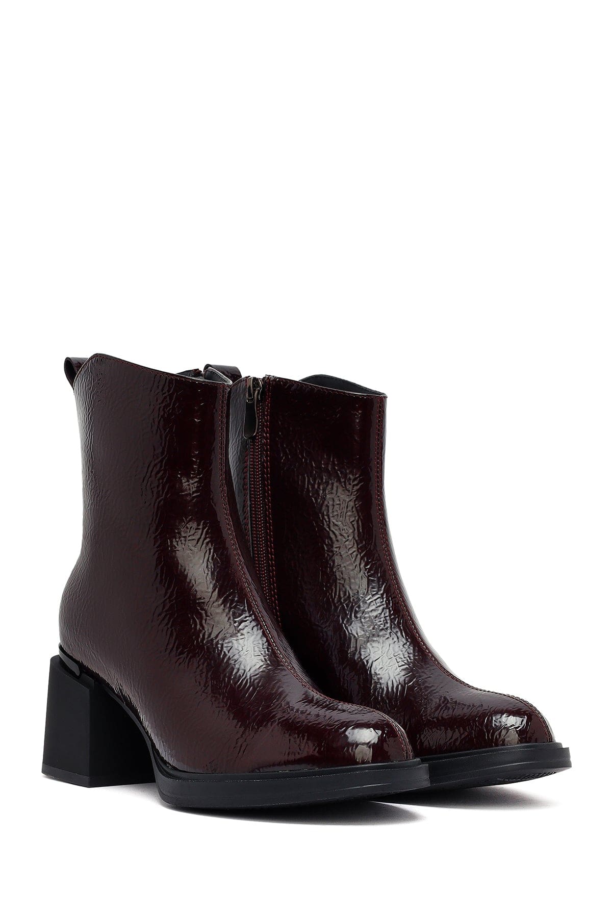 Kadın Bordo Fermuarlı Kalın Topuklu Bot