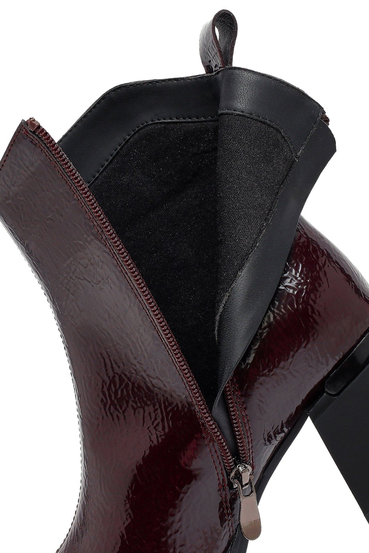 بوت زنانه زرشکی پاشنهضخیم زیپدار دری مد