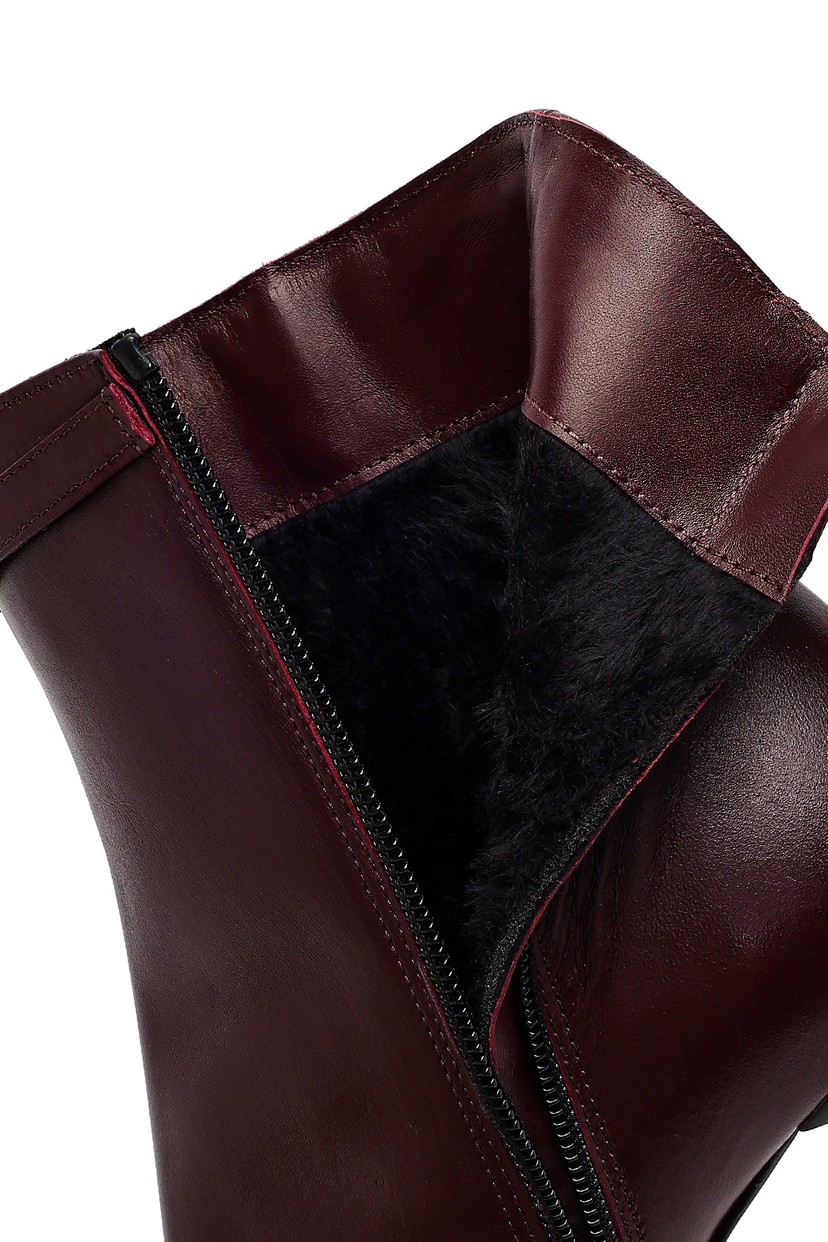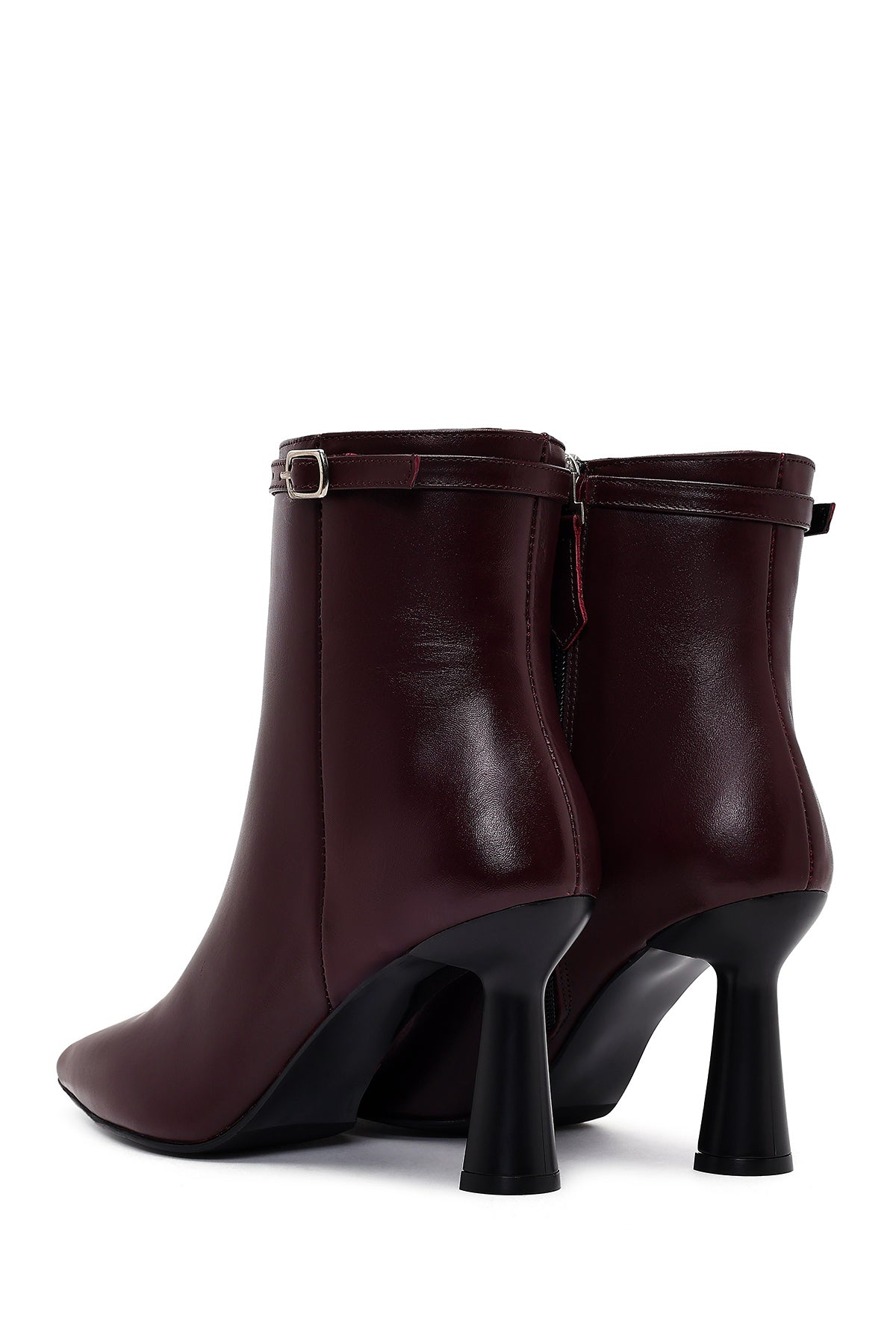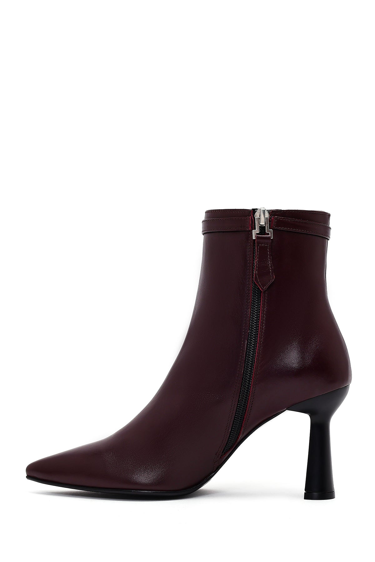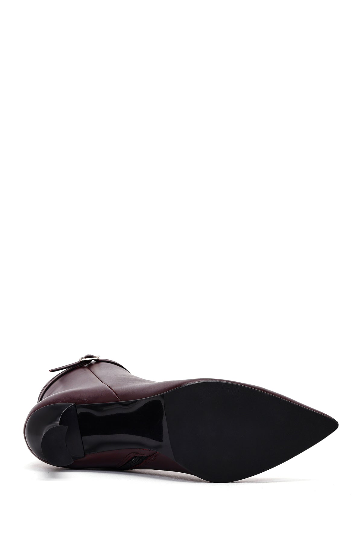 Kadın Bordo Fermuarlı Topuklu Deri Bot