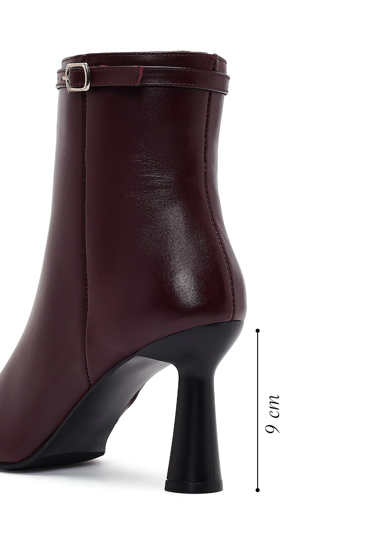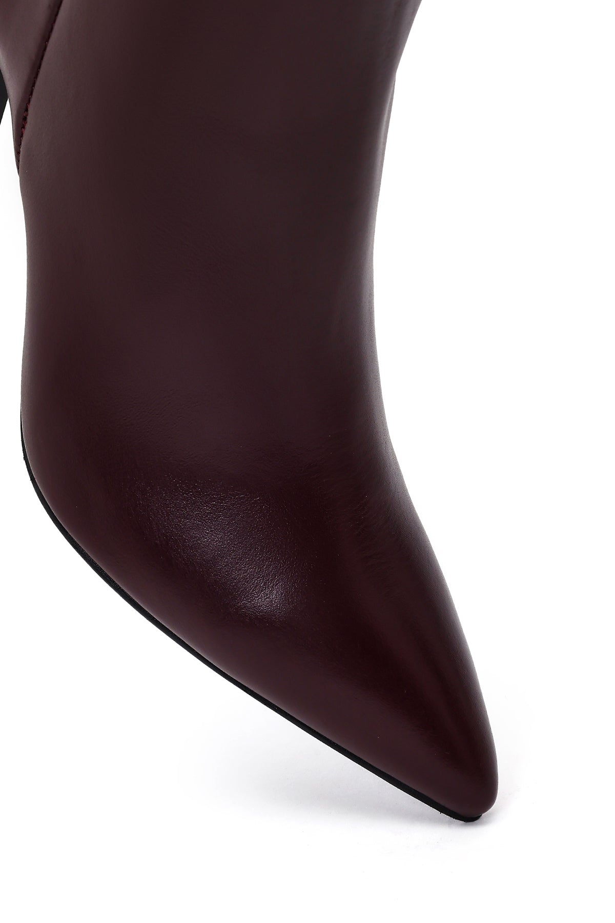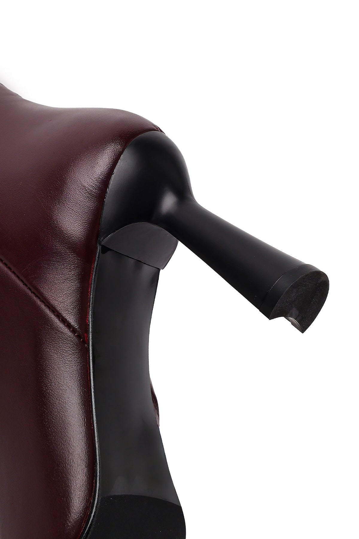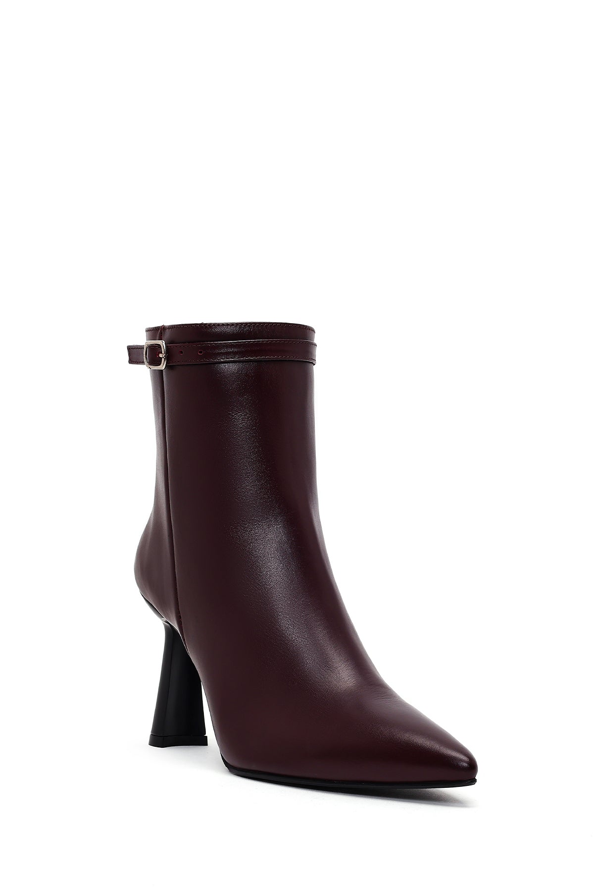 Kadın Bordo Fermuarlı Topuklu Deri Bot
