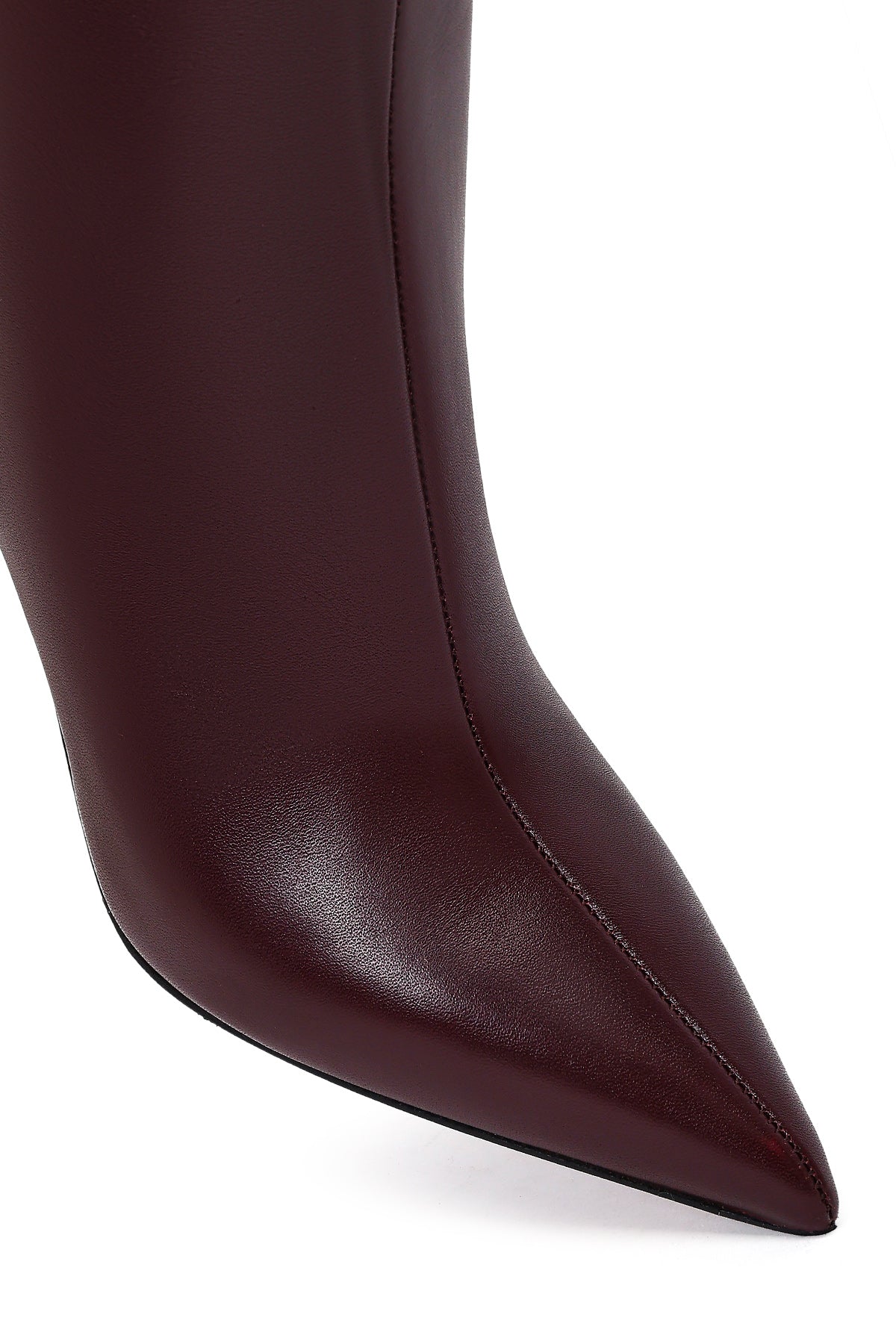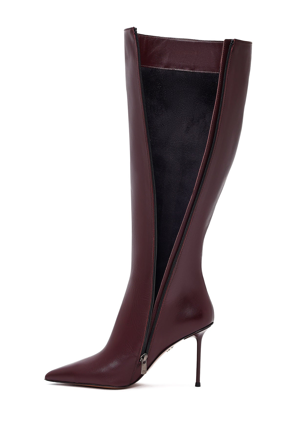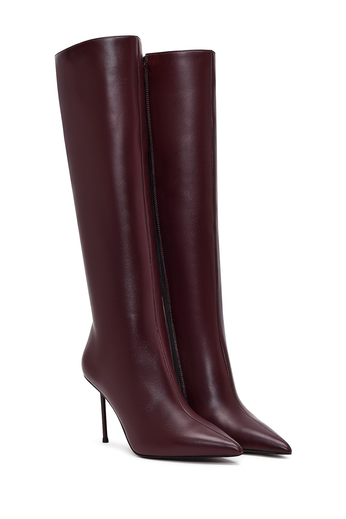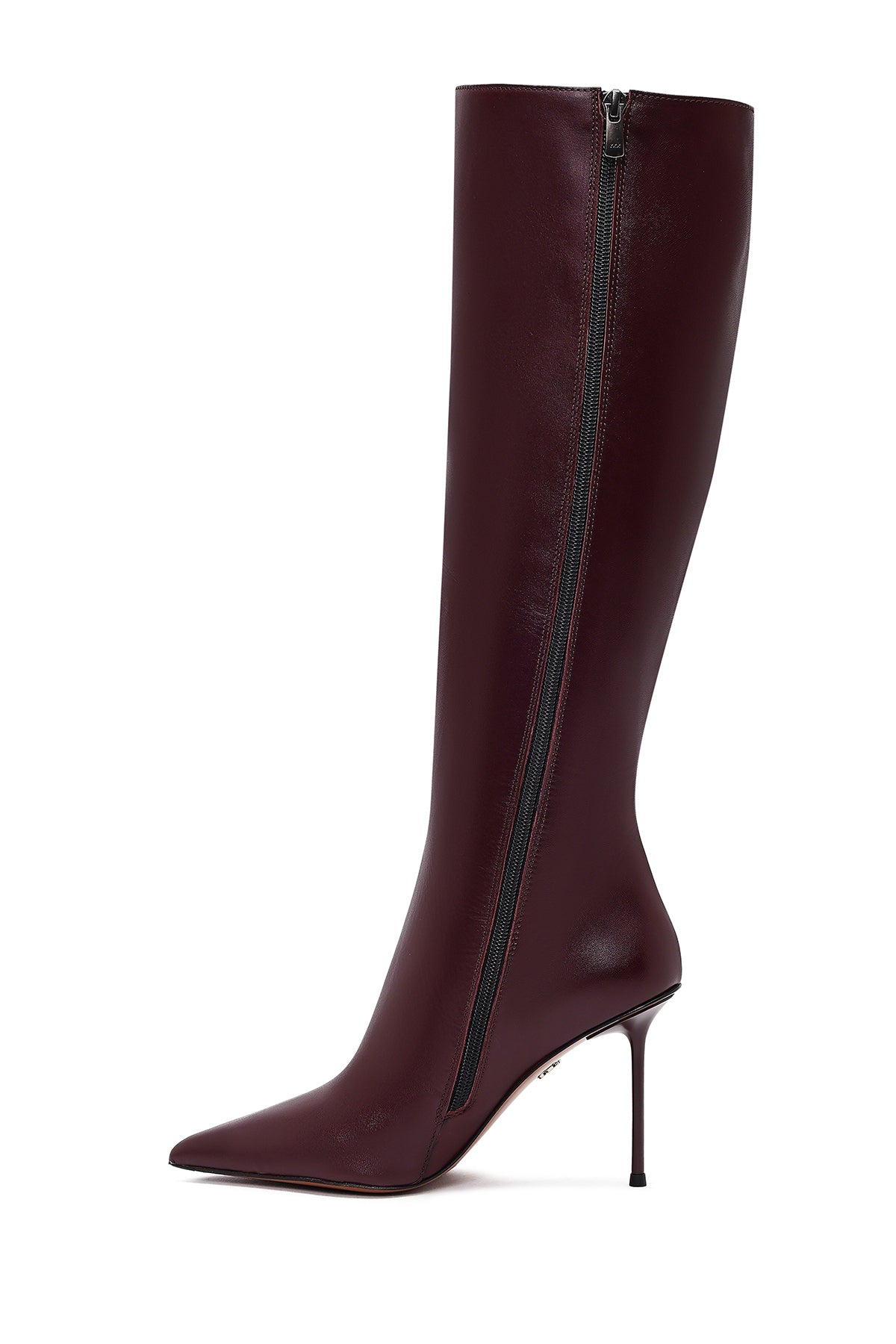 Kadın Bordo Fermuarlı Yüksek İnce Topuklu Deri Çizme