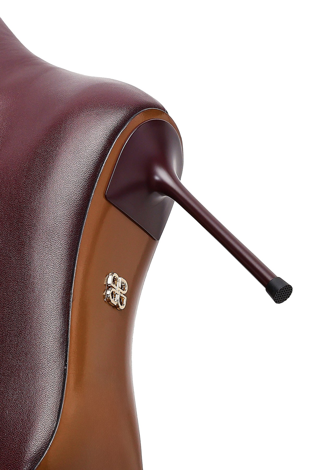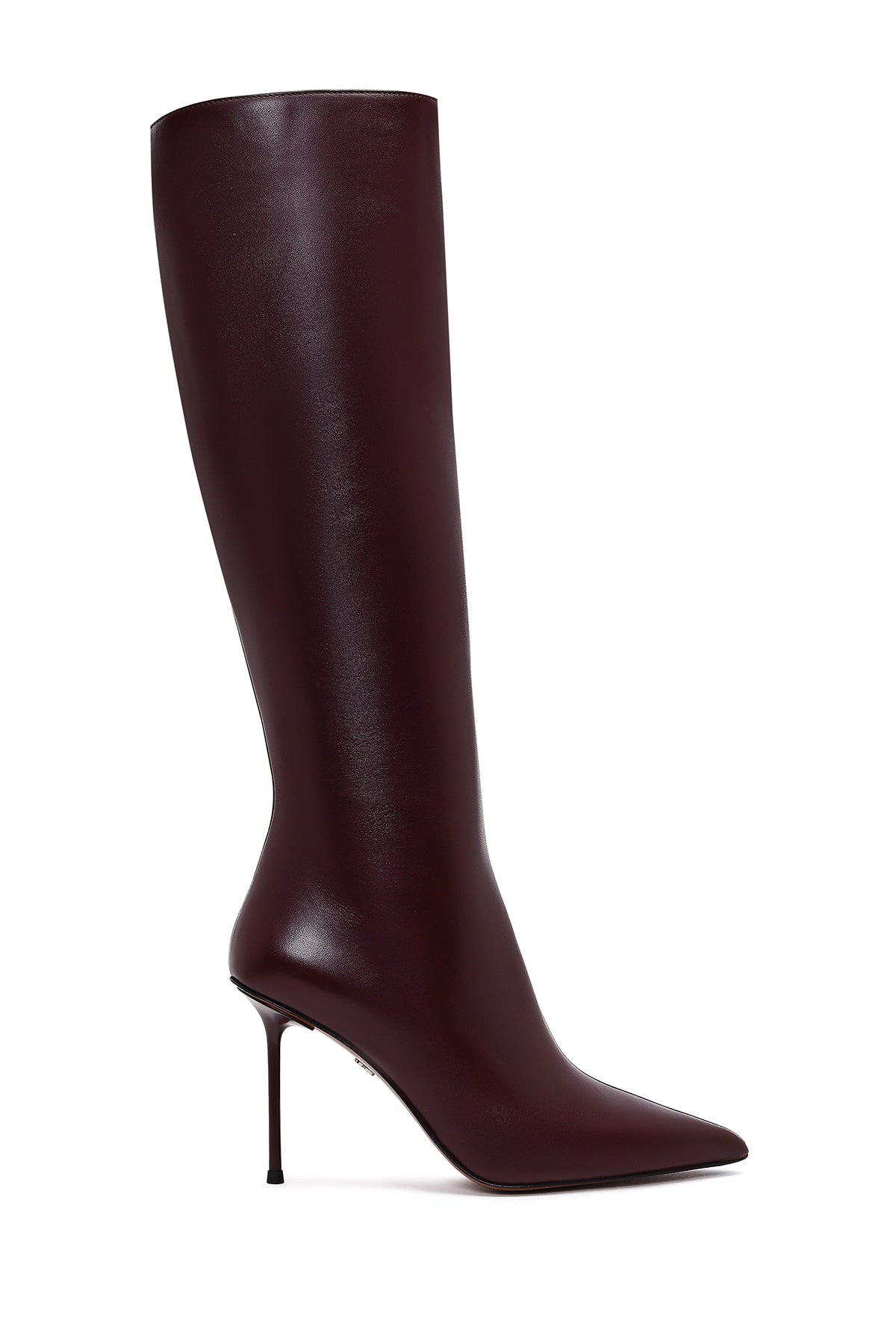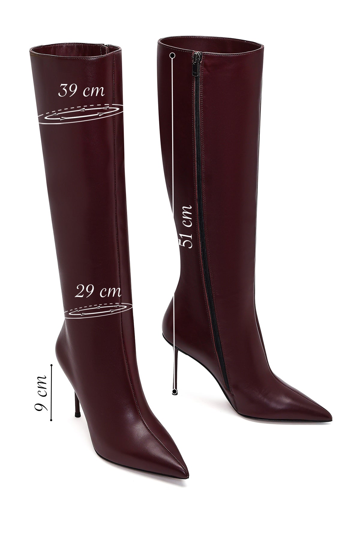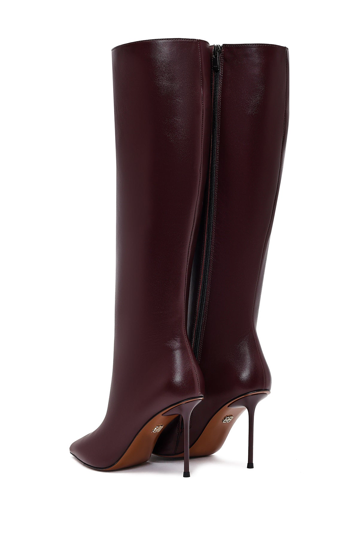 Kadın Bordo Fermuarlı Yüksek İnce Topuklu Deri Çizme