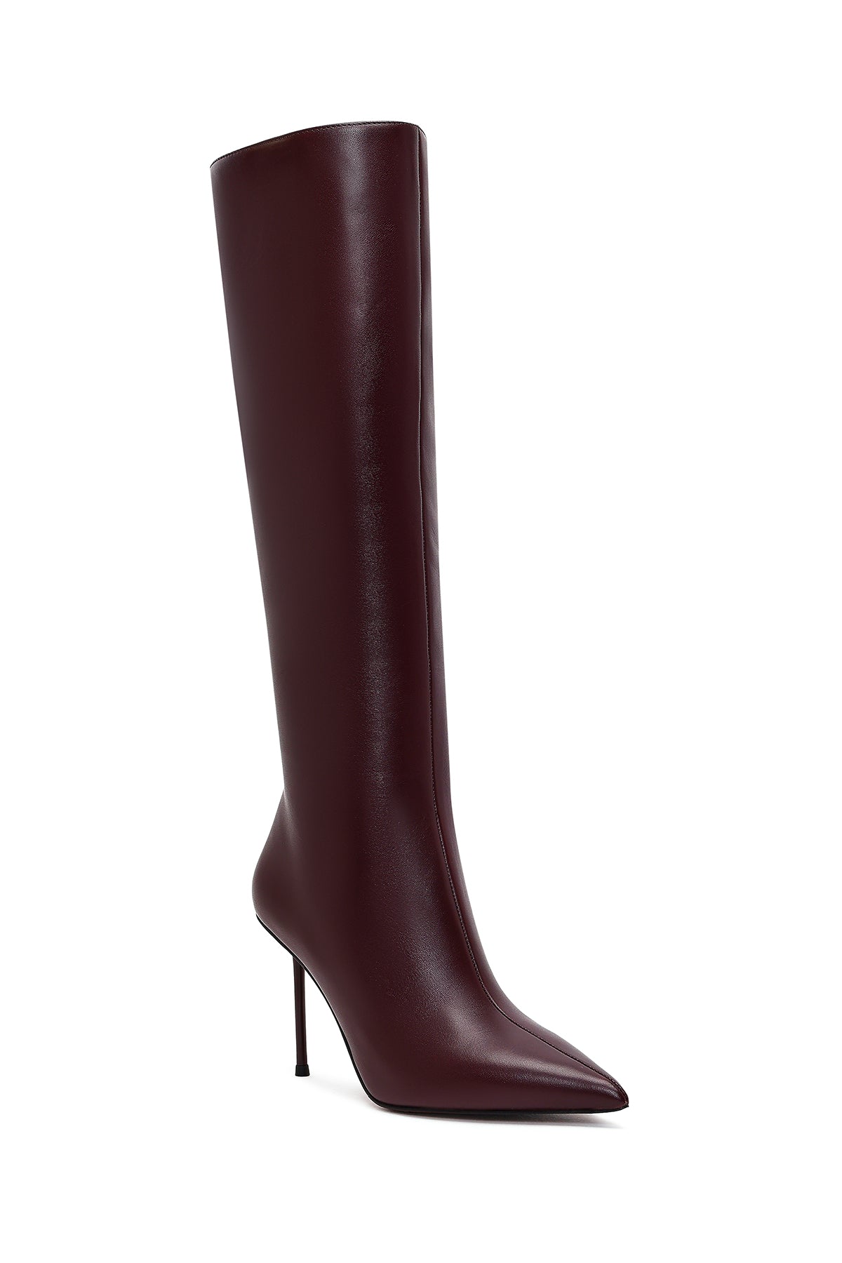 چکمه زنانه چرمی زرشکی زیپدار پاشنه بلند باریک دری مد