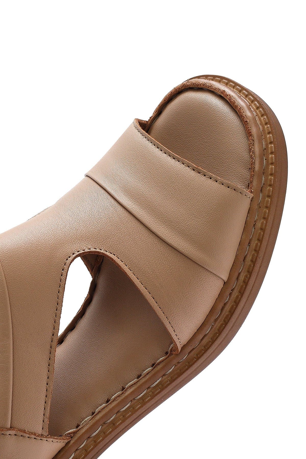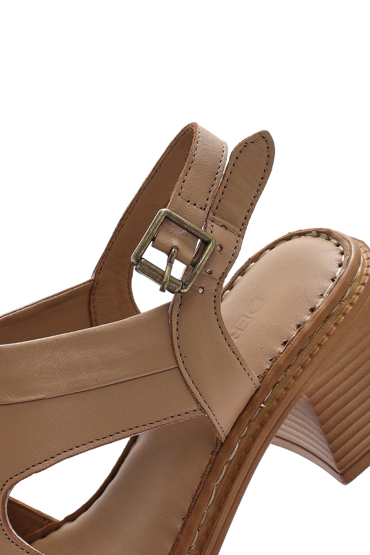 Kadın Camel Bilekten Bantlı Kalın Topuklu Deri Sandalet