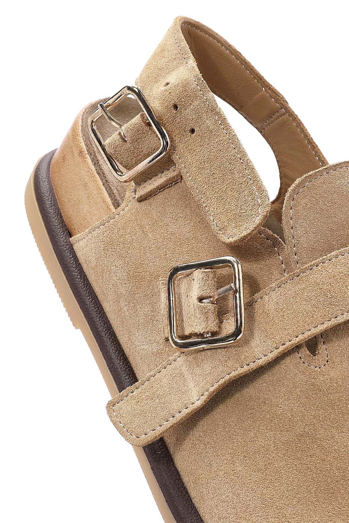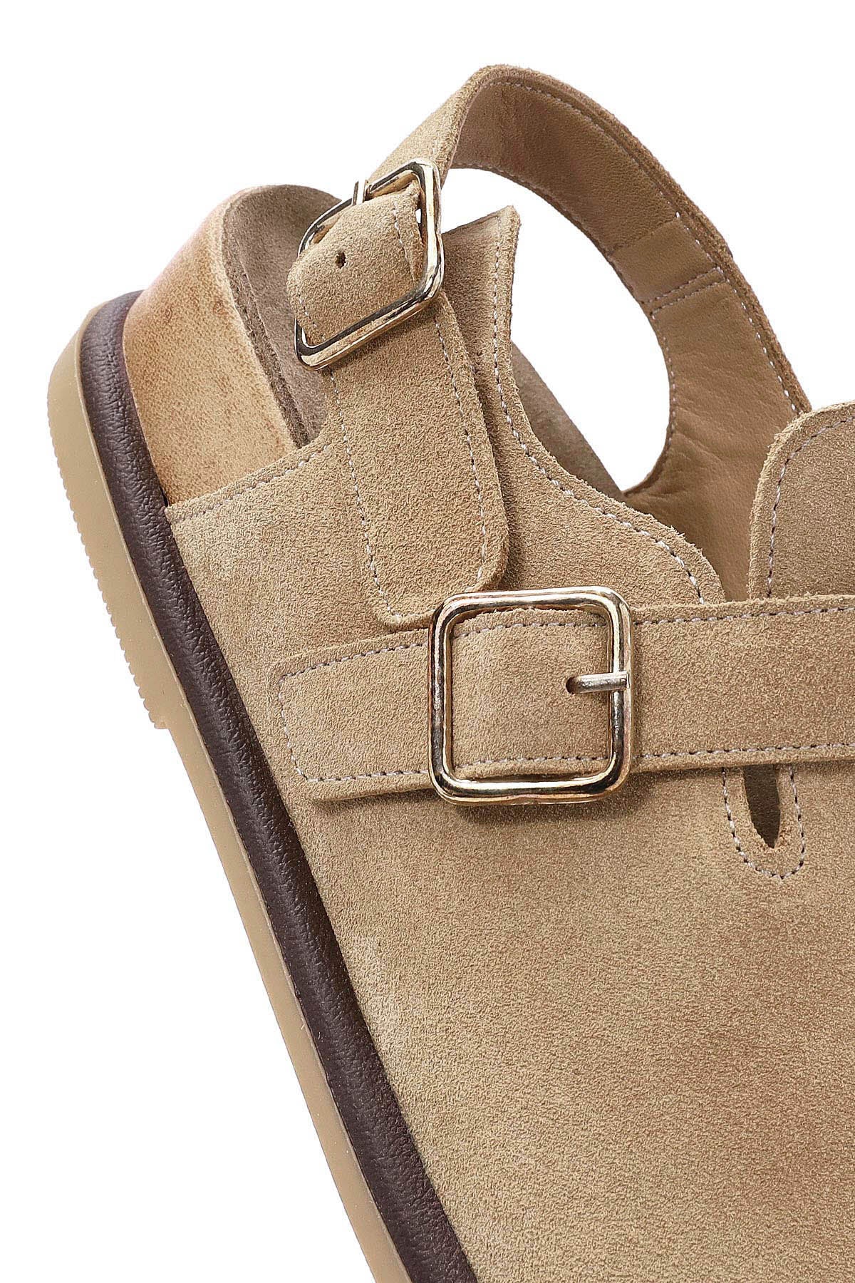 Kadın Camel Arkadan Bağlamalı Süet Deri Sandalet