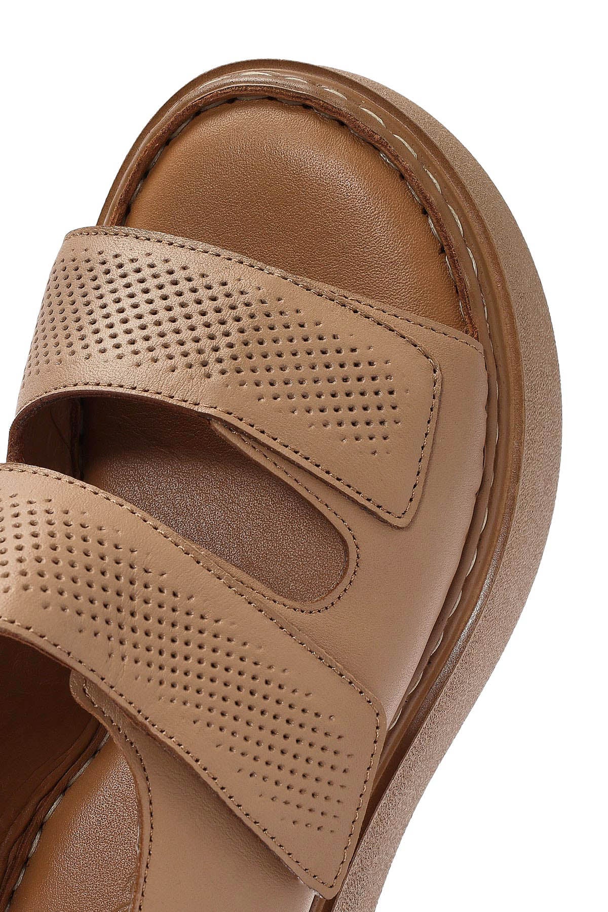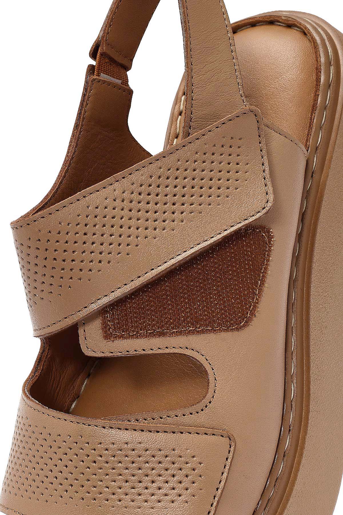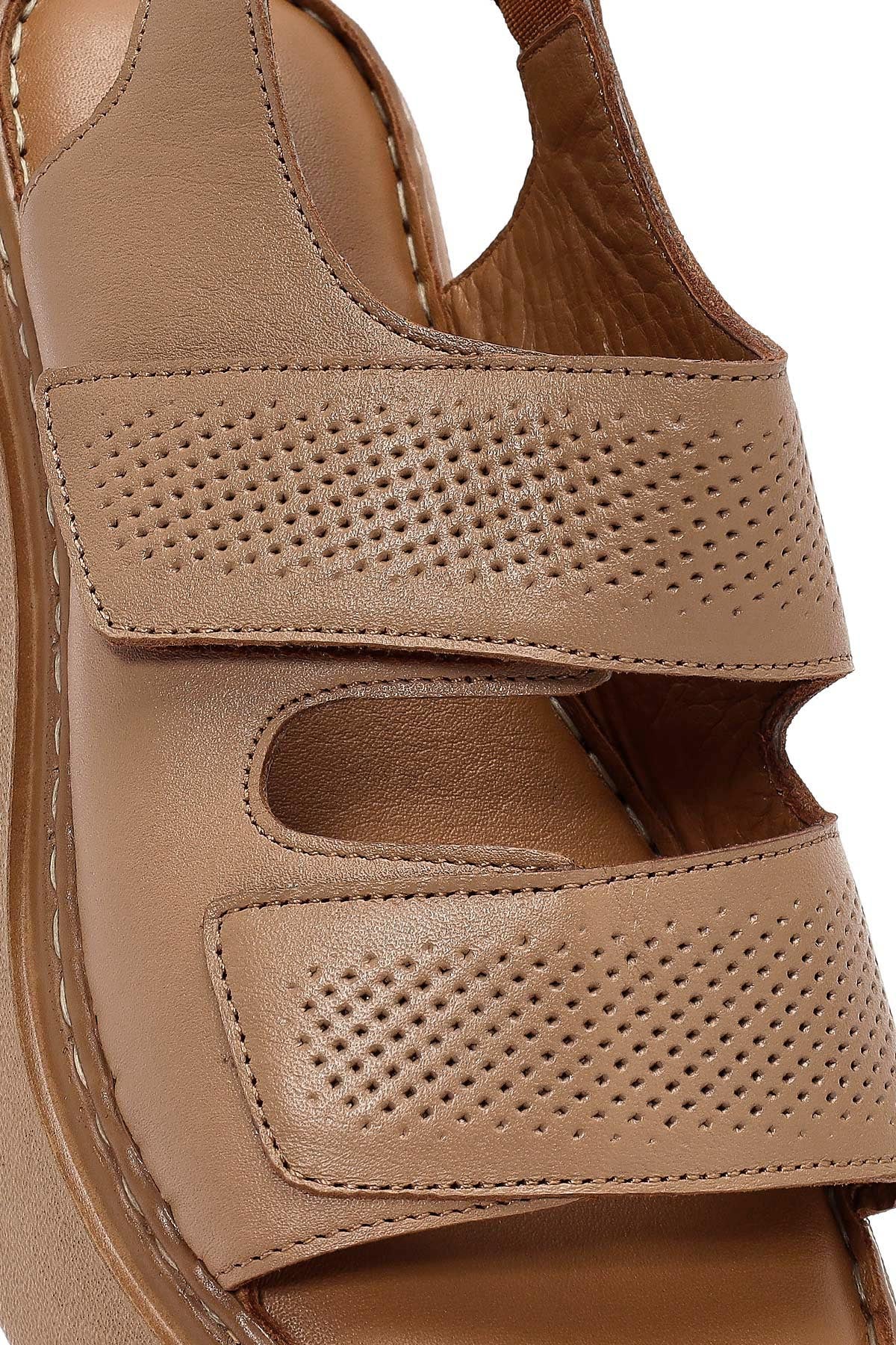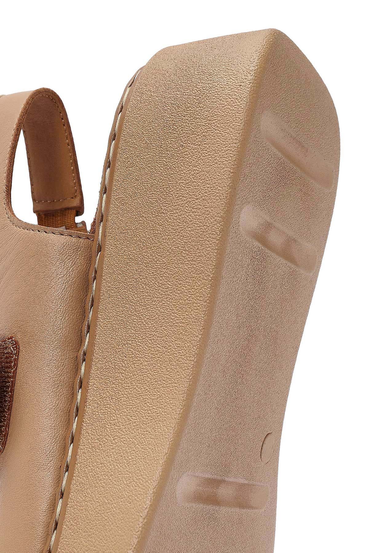 Kadın Camel Bantlı Kalın Tabanlı Deri Comfort Sandalet