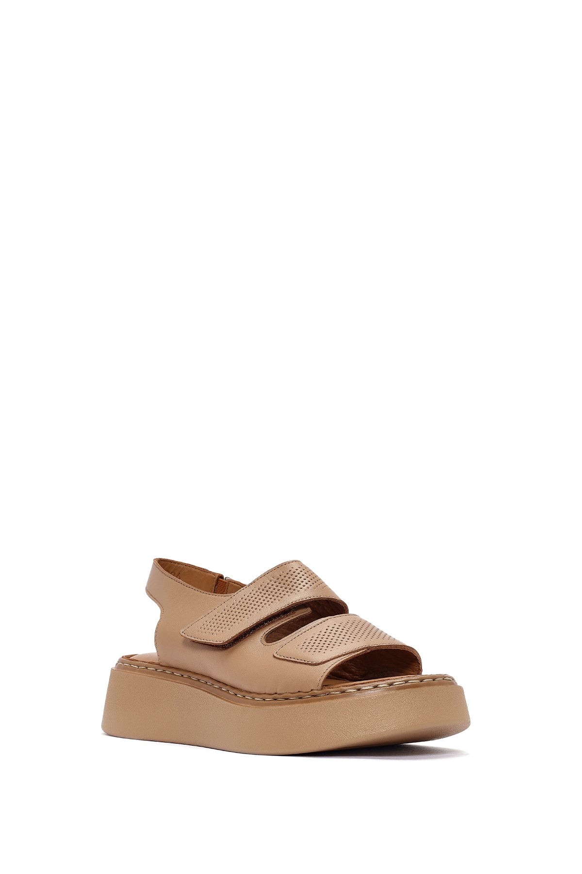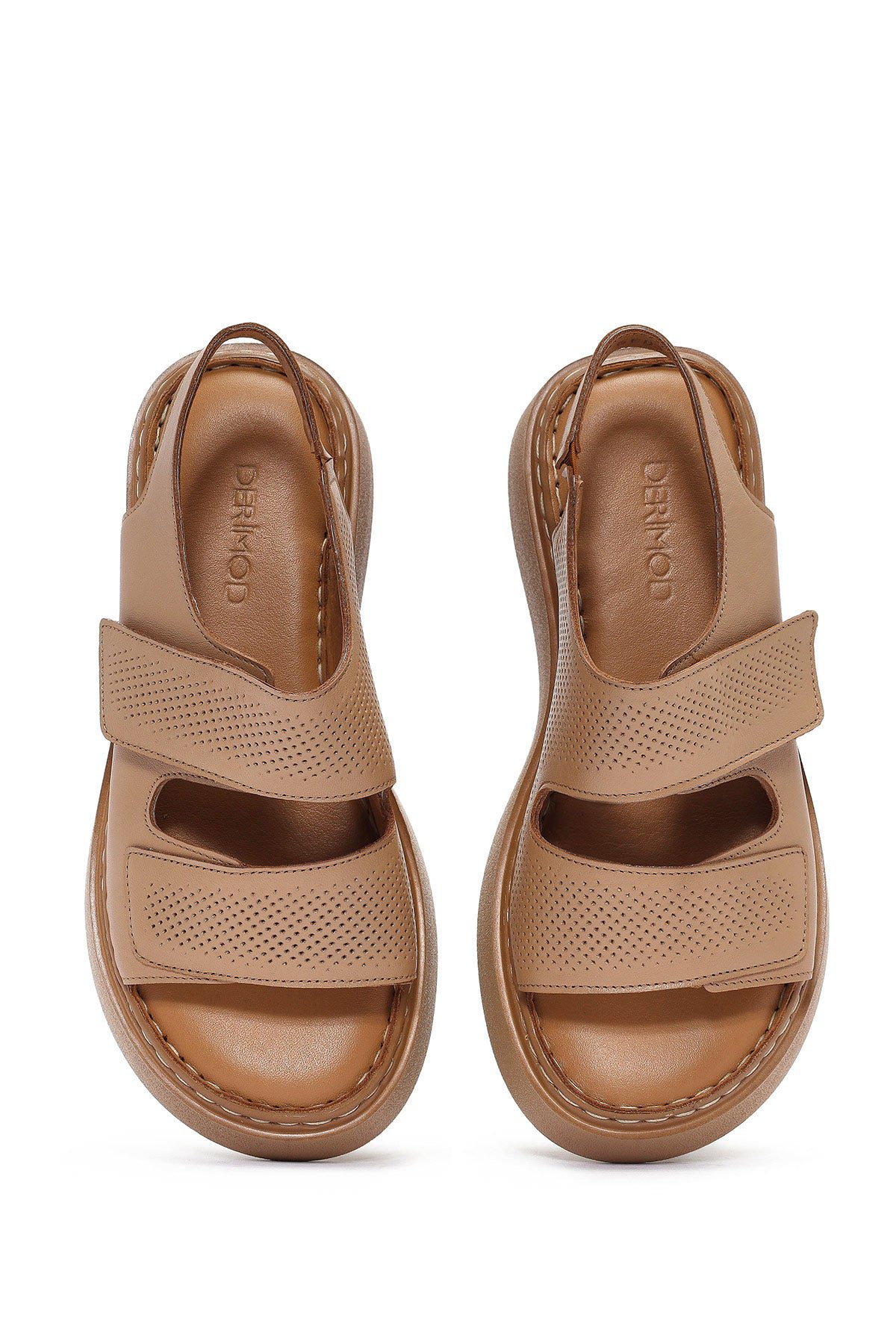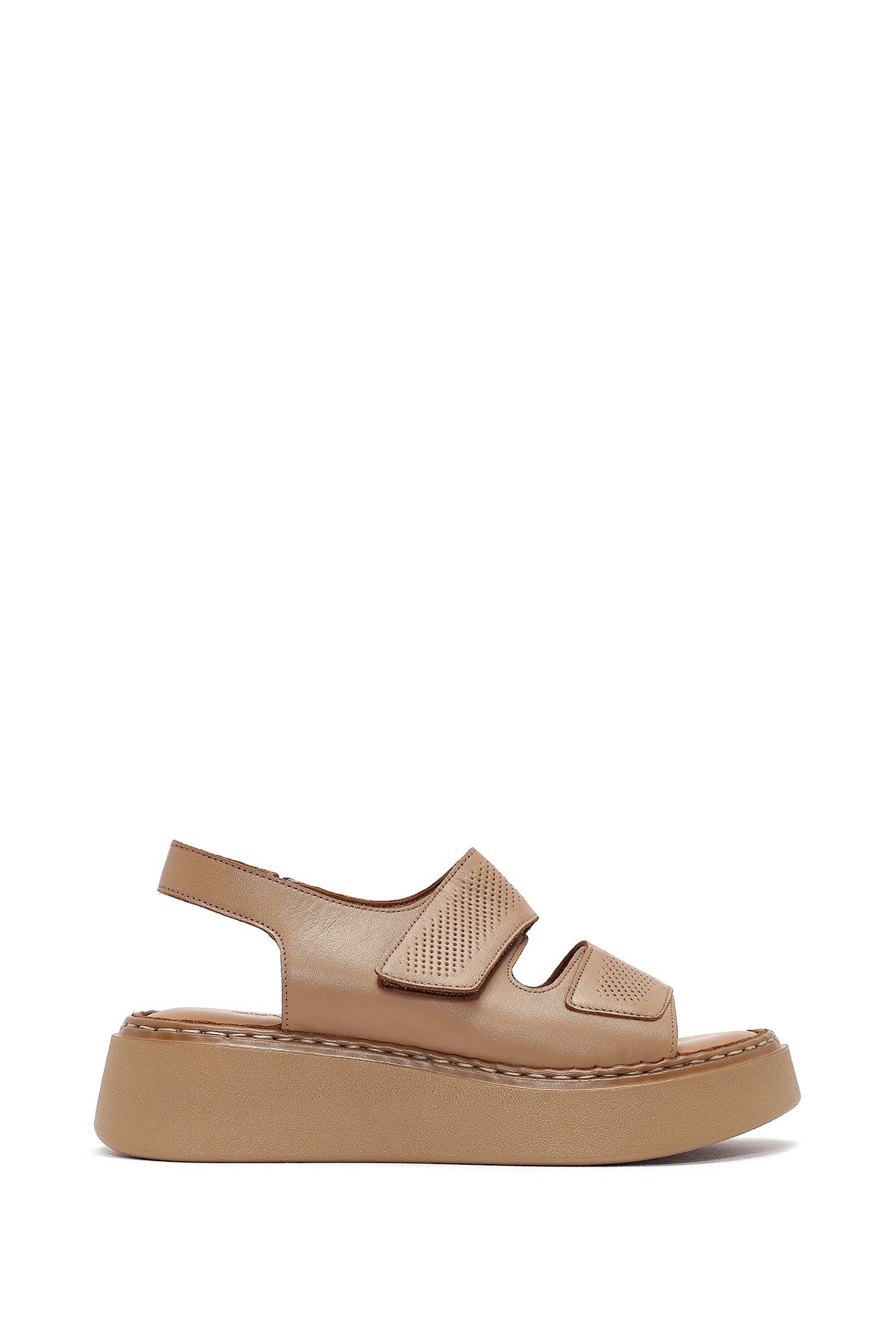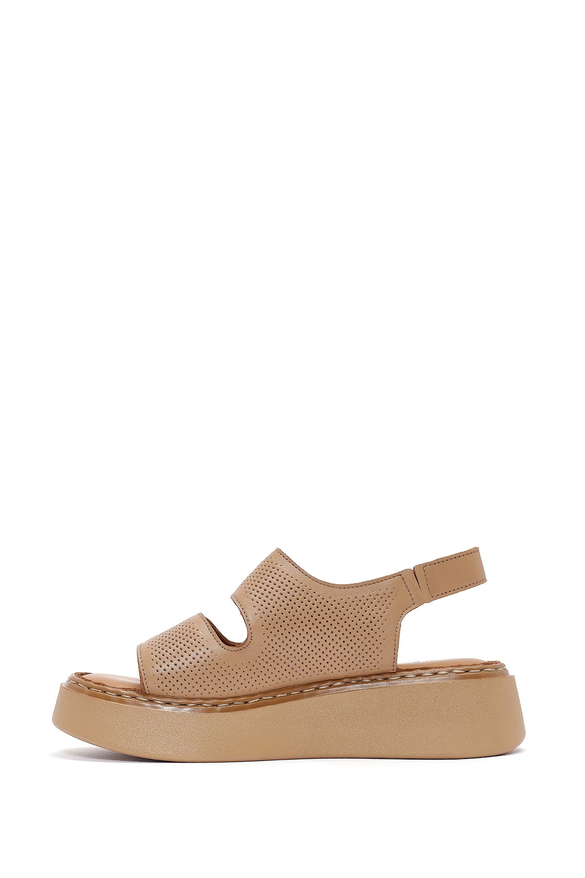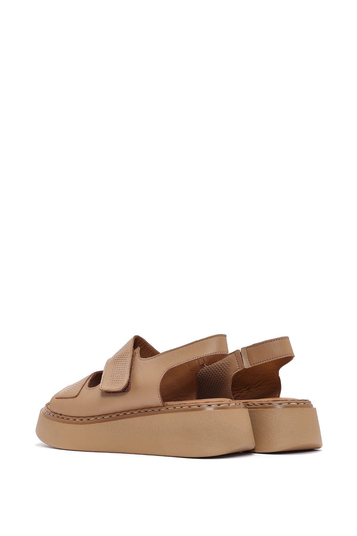 Kadın Camel Bantlı Kalın Tabanlı Deri Comfort Sandalet