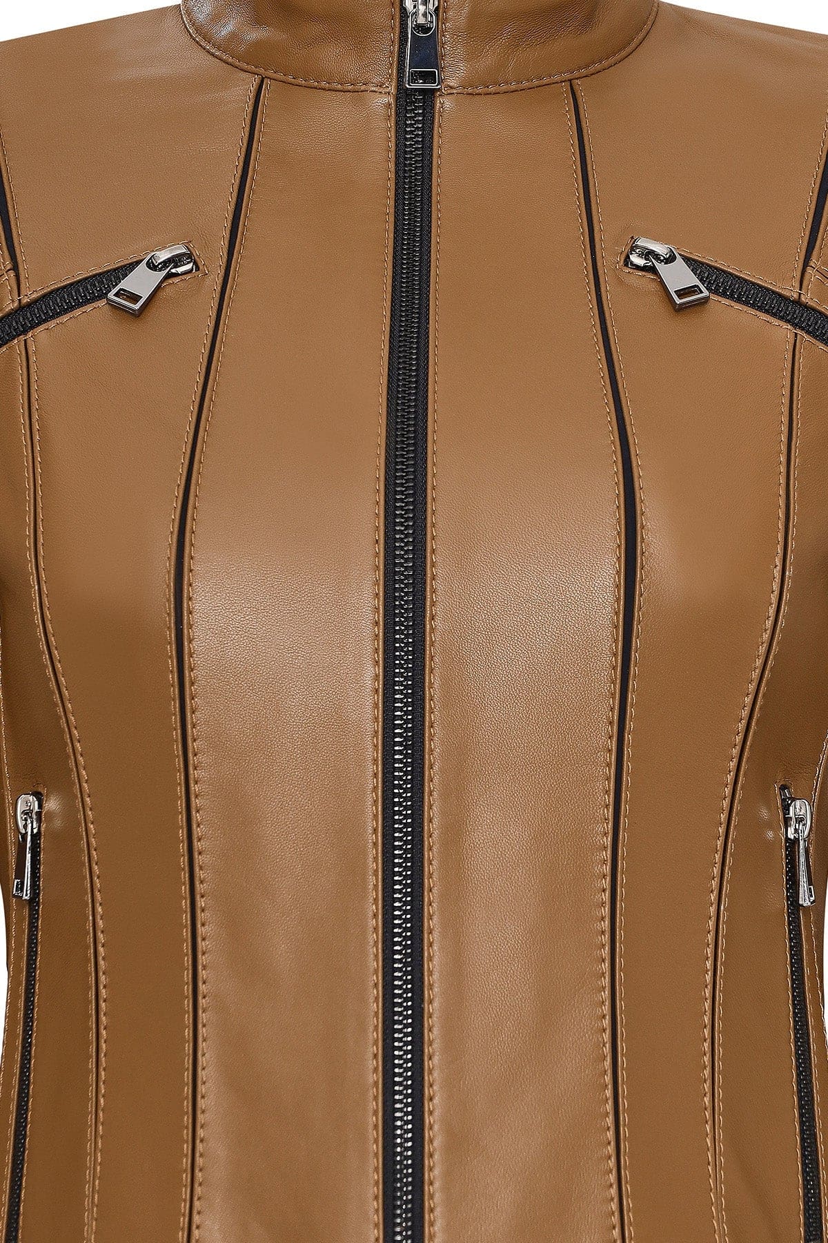 کت چرمی زنانه شتری کوتاه Linda دری مد