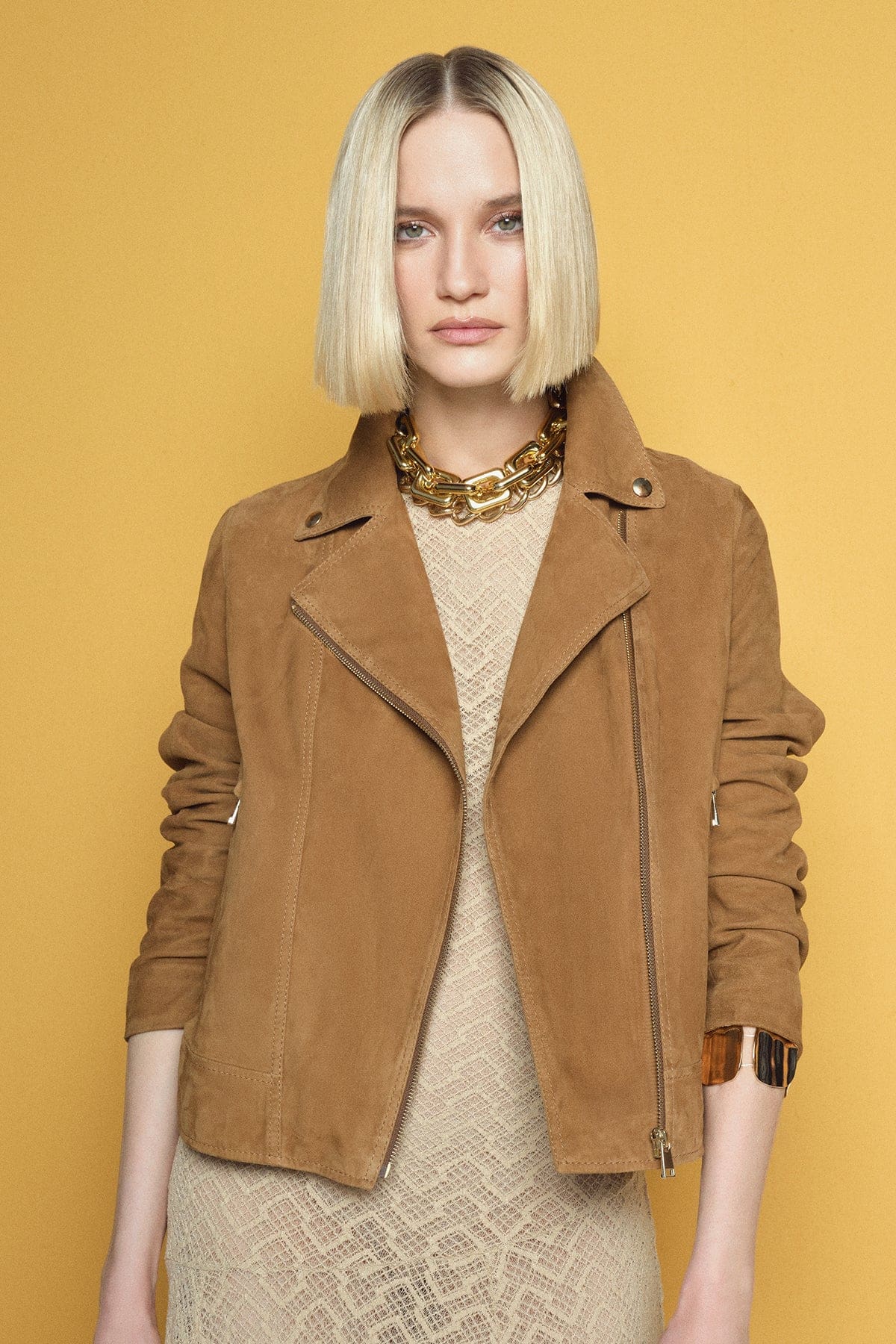 کت چرمی زنانه شتری بایکر جیر Alba دری مد