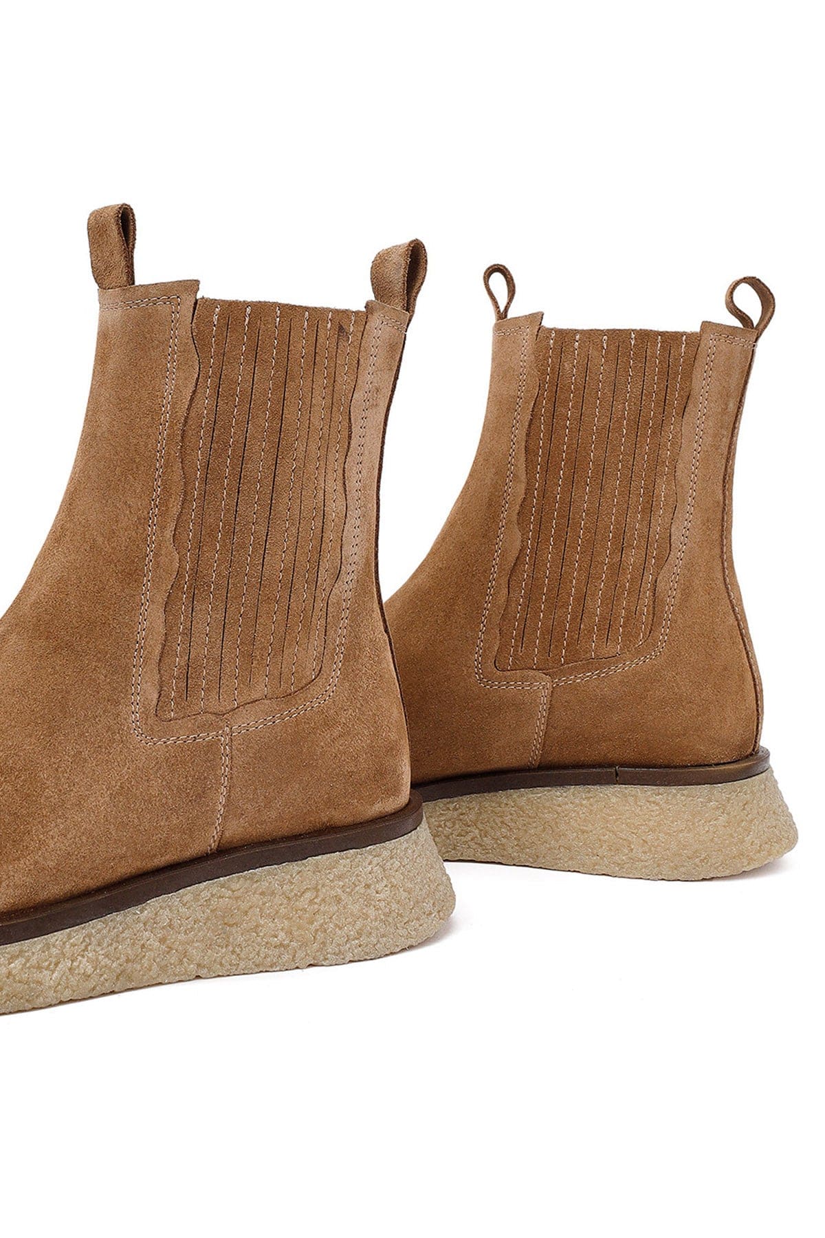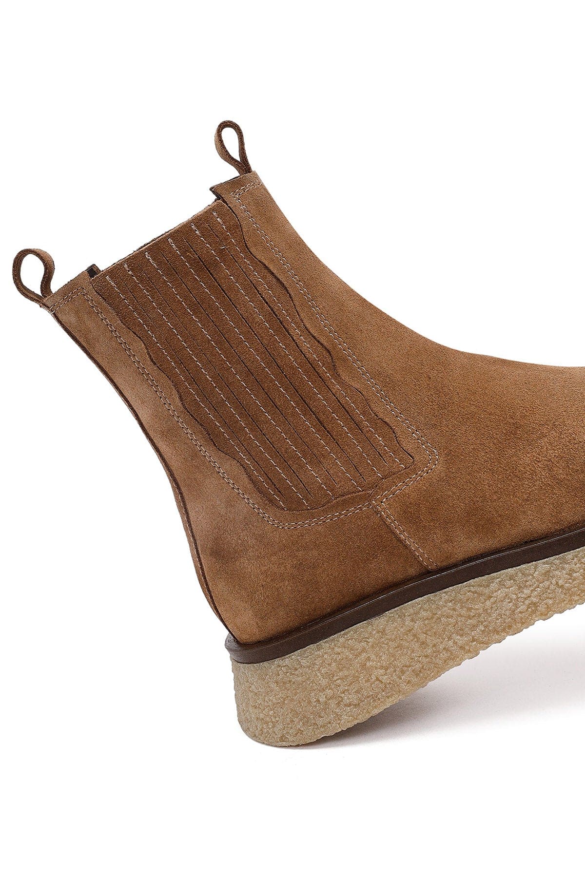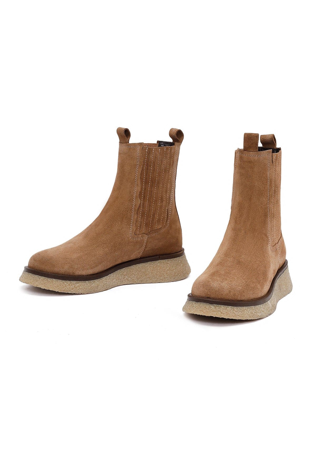 Kadın Camel Kalın Tabanlı Süet Deri Chelsea Bot