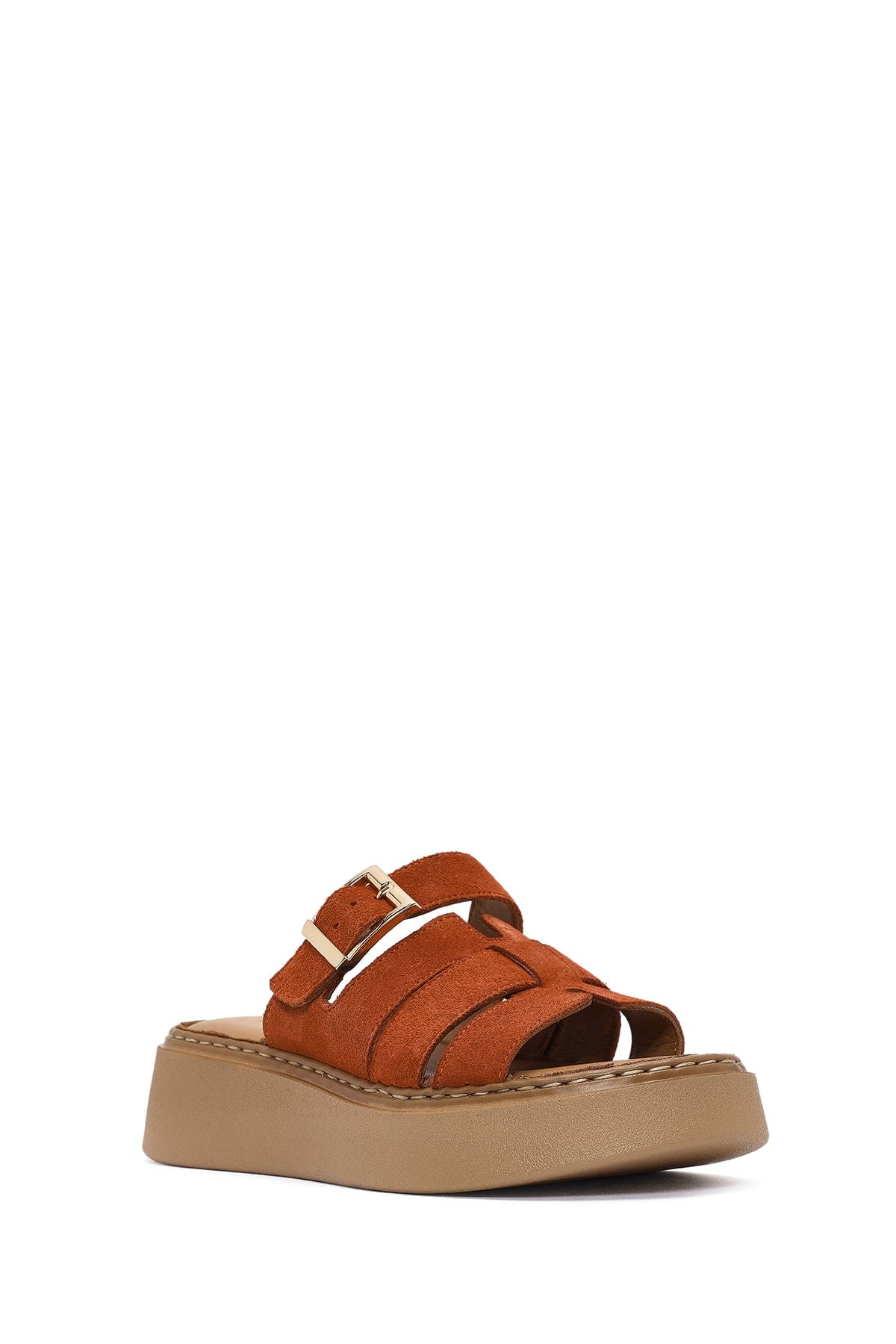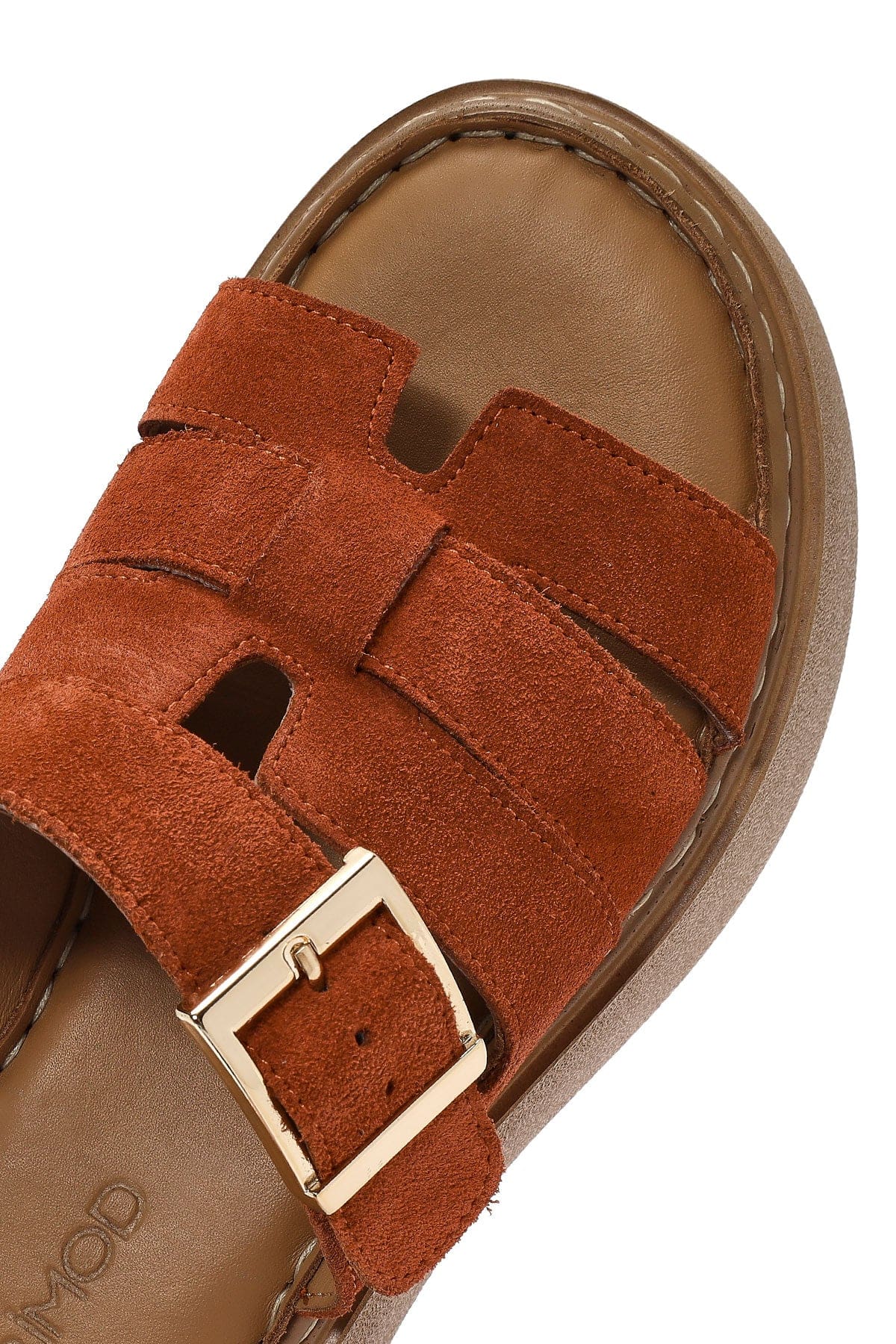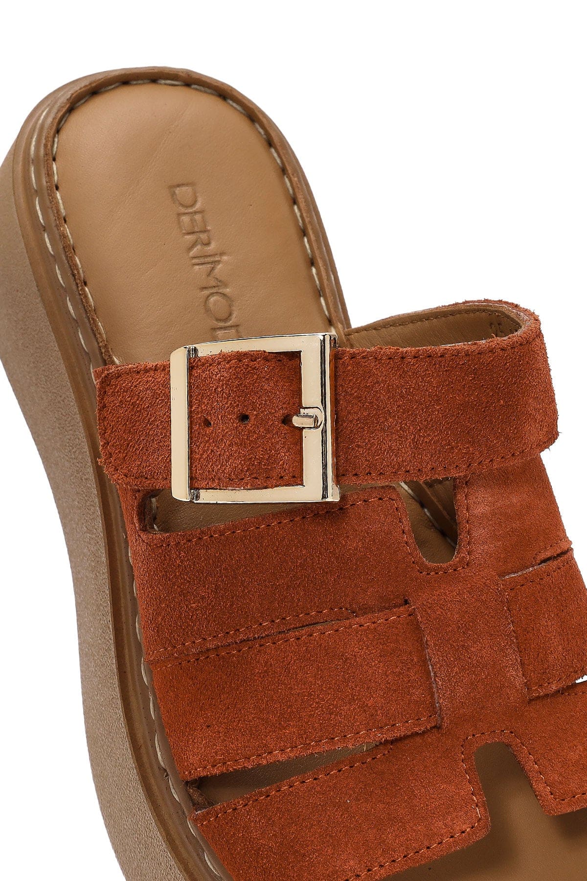 Kadın Tarçın Kalın Tabanlı Süet Deri Comfort Terlik