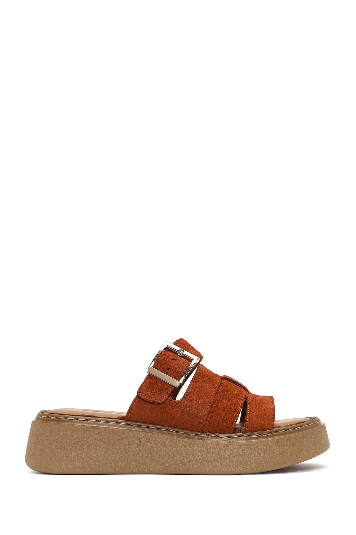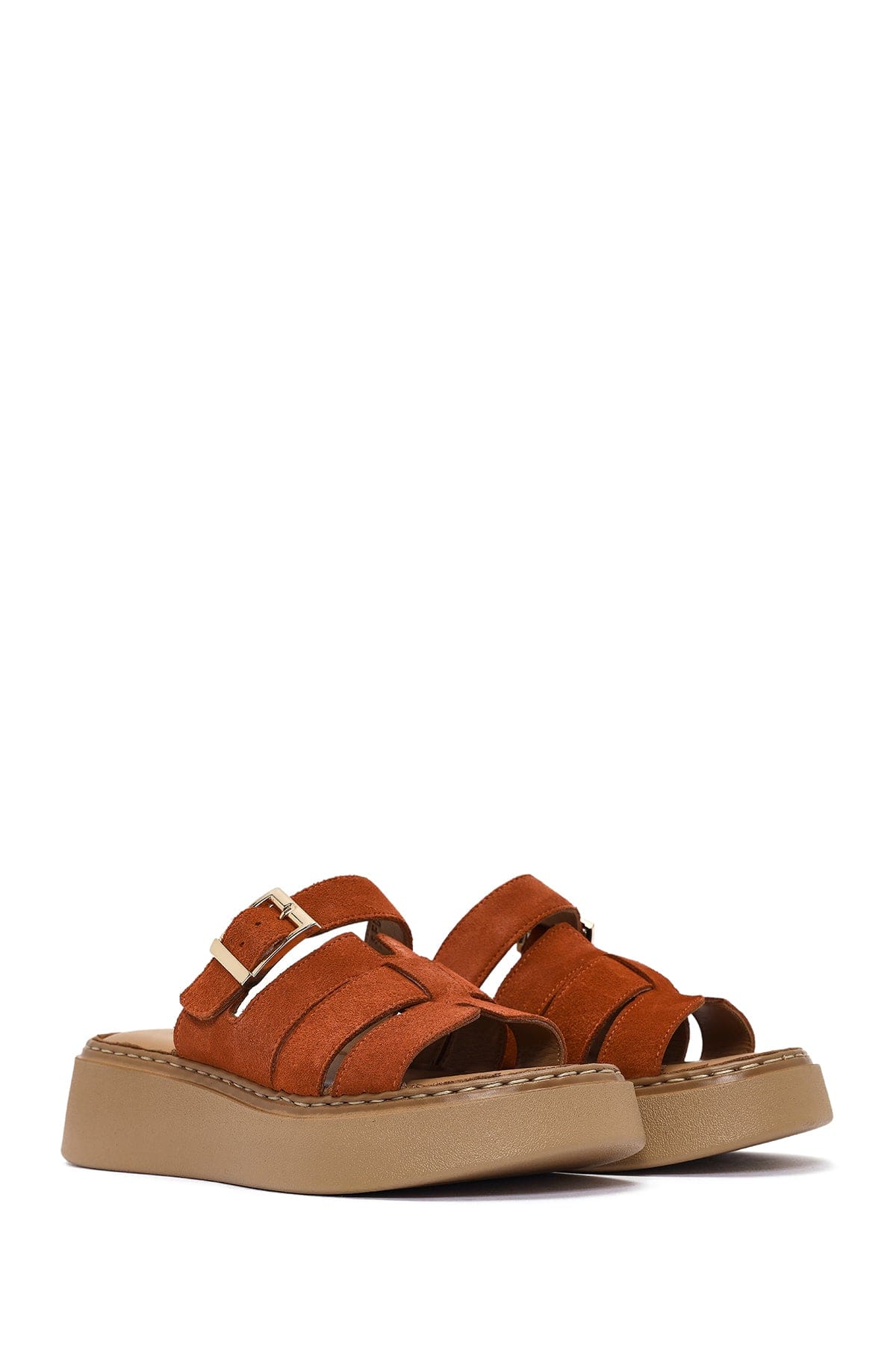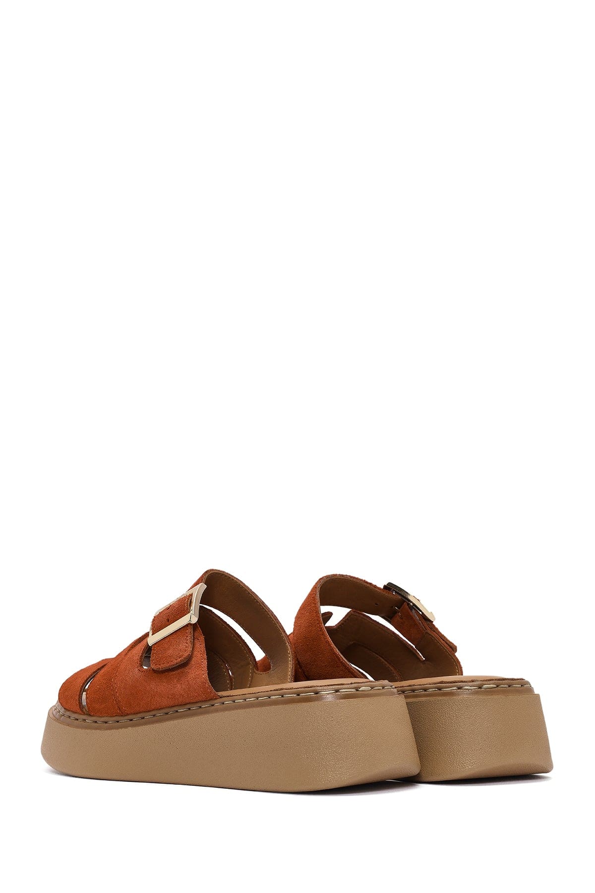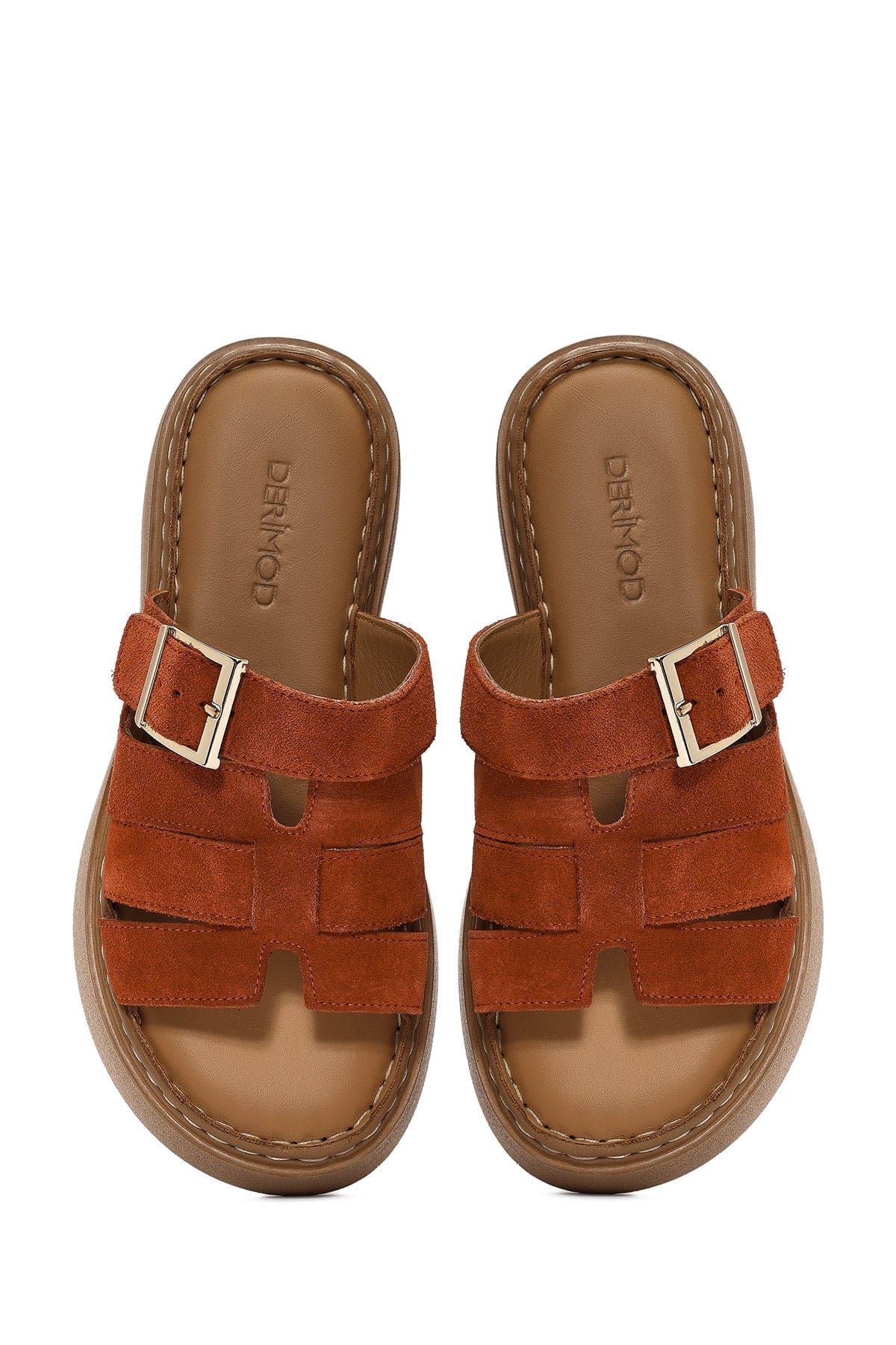 Kadın Tarçın Kalın Tabanlı Süet Deri Comfort Terlik