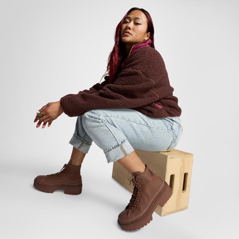 بوت کانورس آلاستار Chuck Taylor All Star Lugged Heel چرم قهوهای لژدار ضدآب زنانه