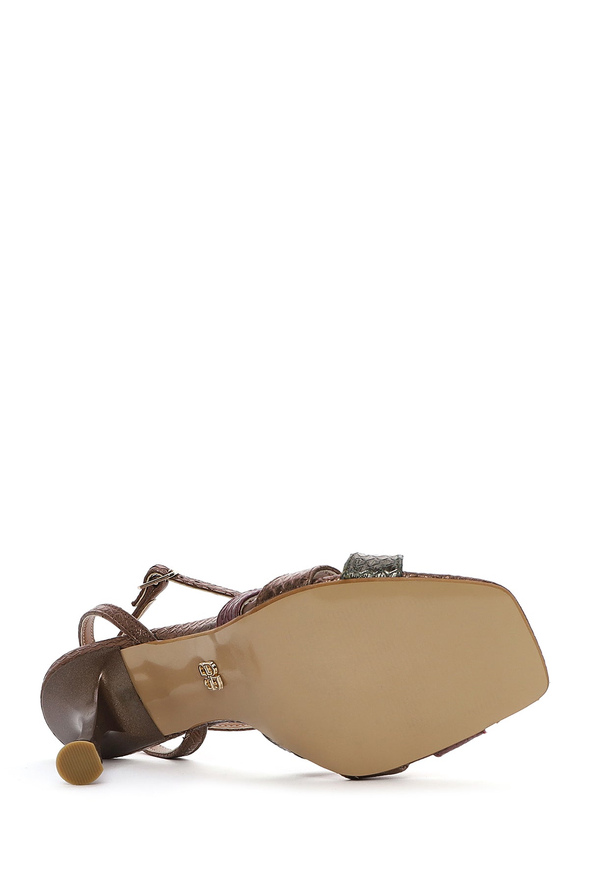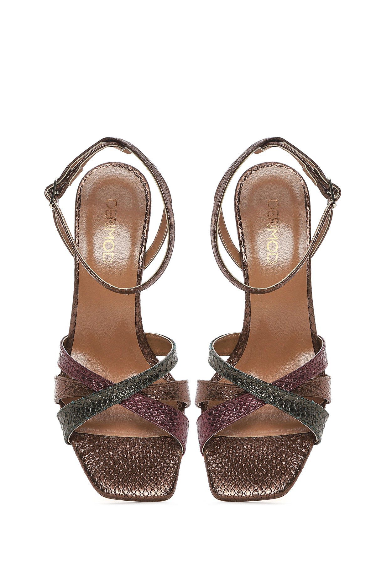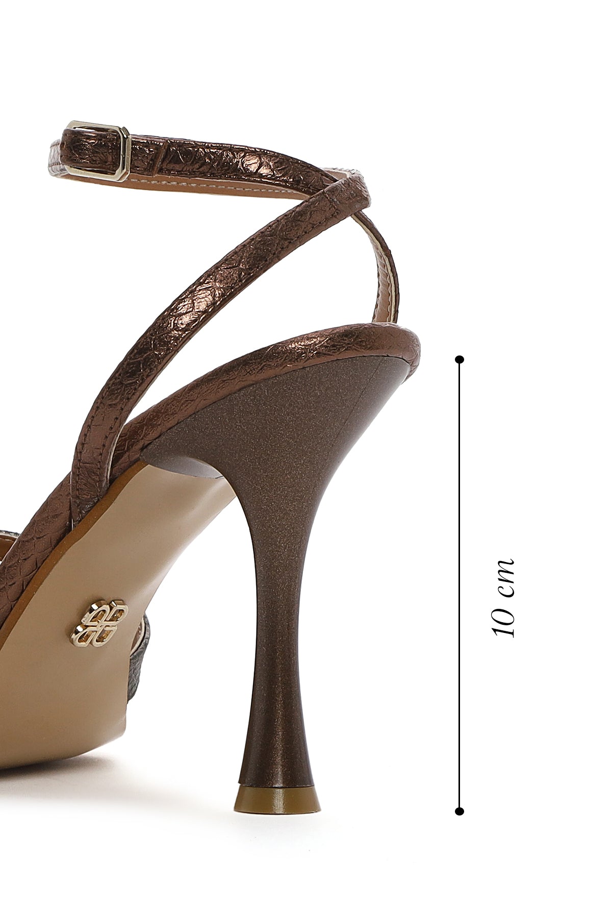 Kadın Bakır Bilekten Bağlamalı İnce Yüksek Topuklu Desenli Deri Sandalet