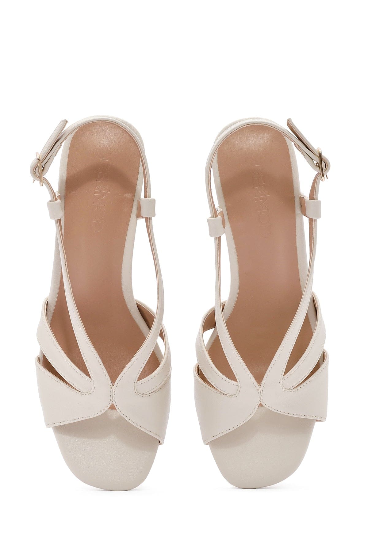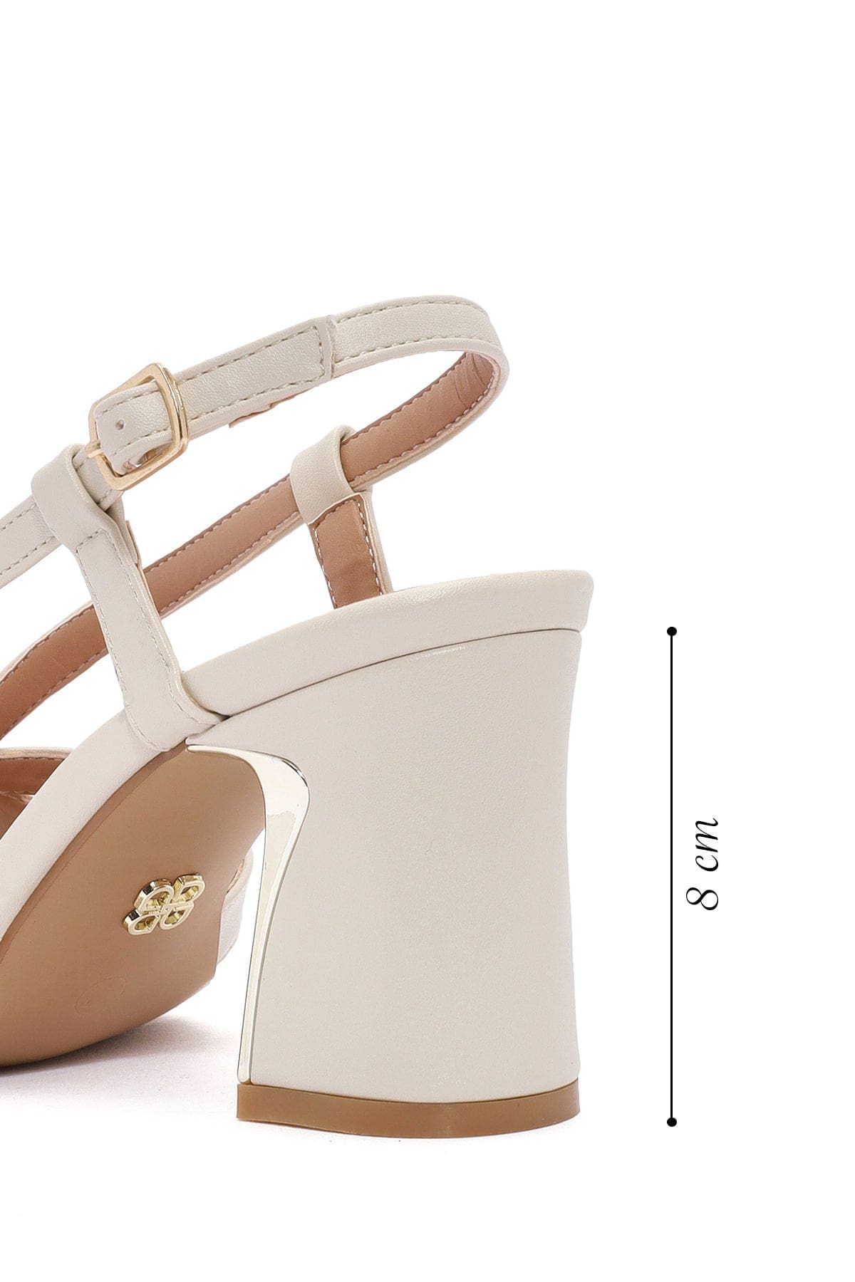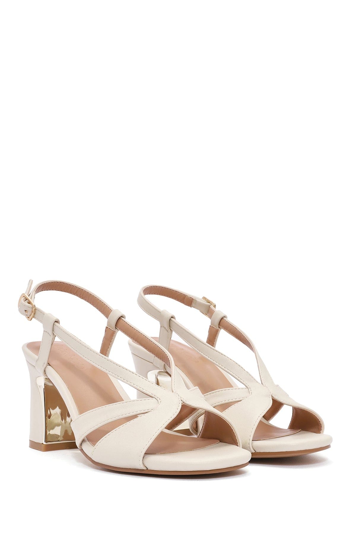Kadın Krem Bilekten Tokalı Kalın Topuklu Sandalet