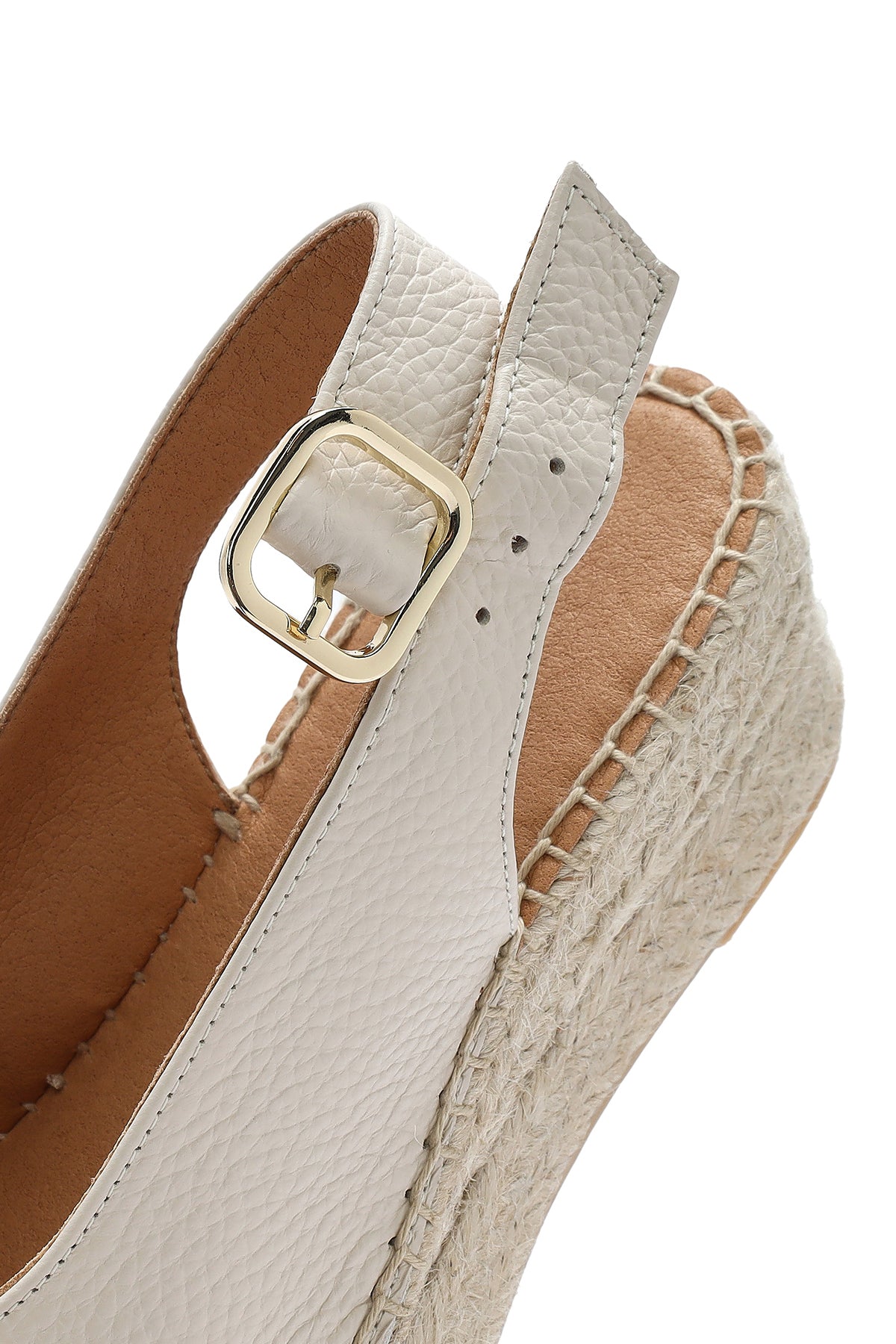 Kadın Krem Bilekten Tokalı Dolgu Topuklu Deri Espadril Sandalet