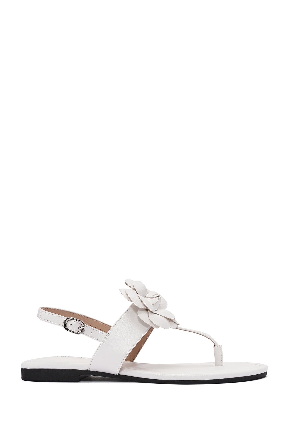 Kadın Krem Çiçek Detaylı Parmak Arası Sandalet