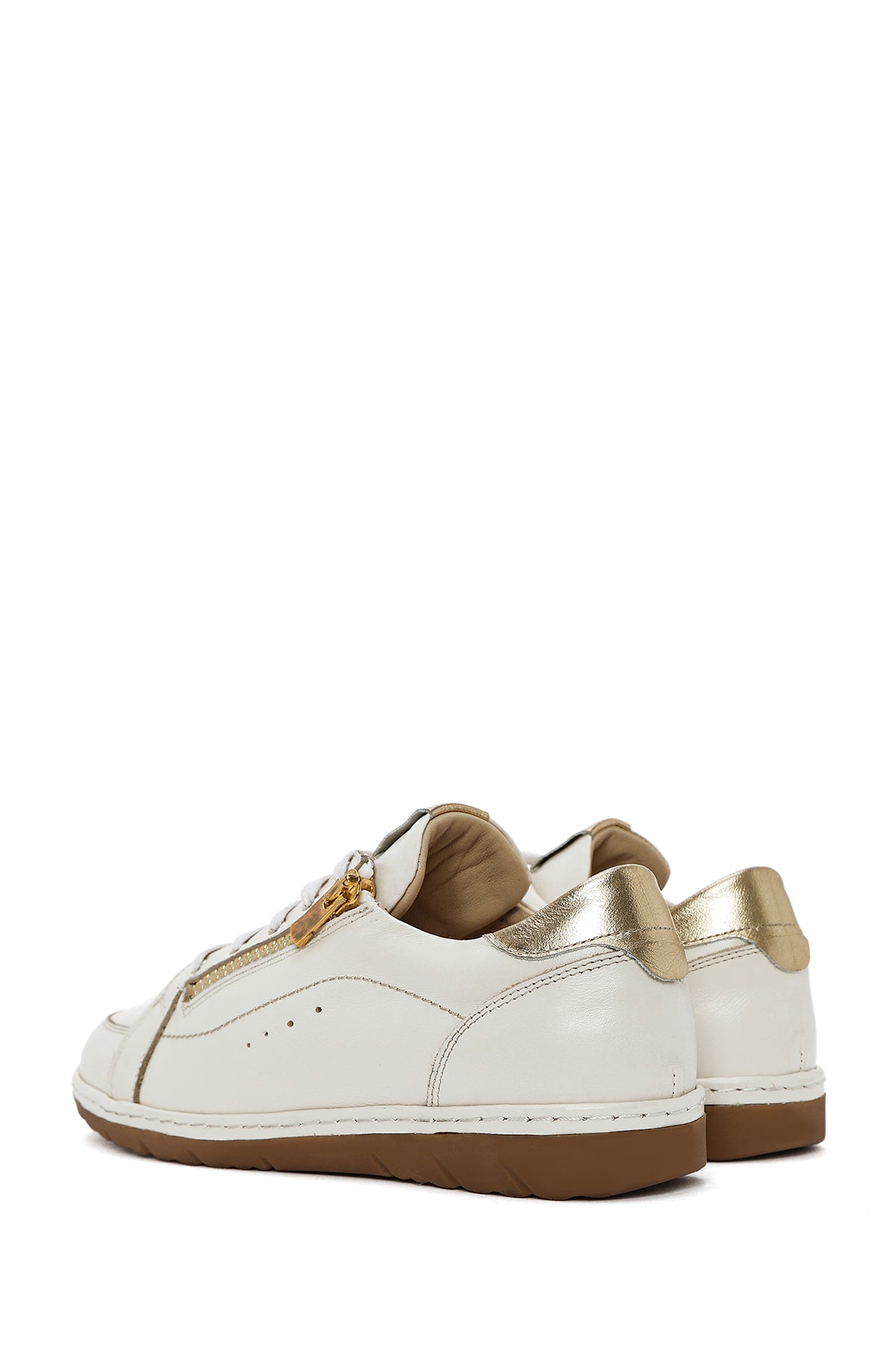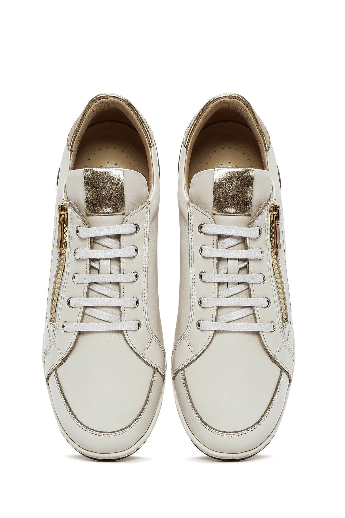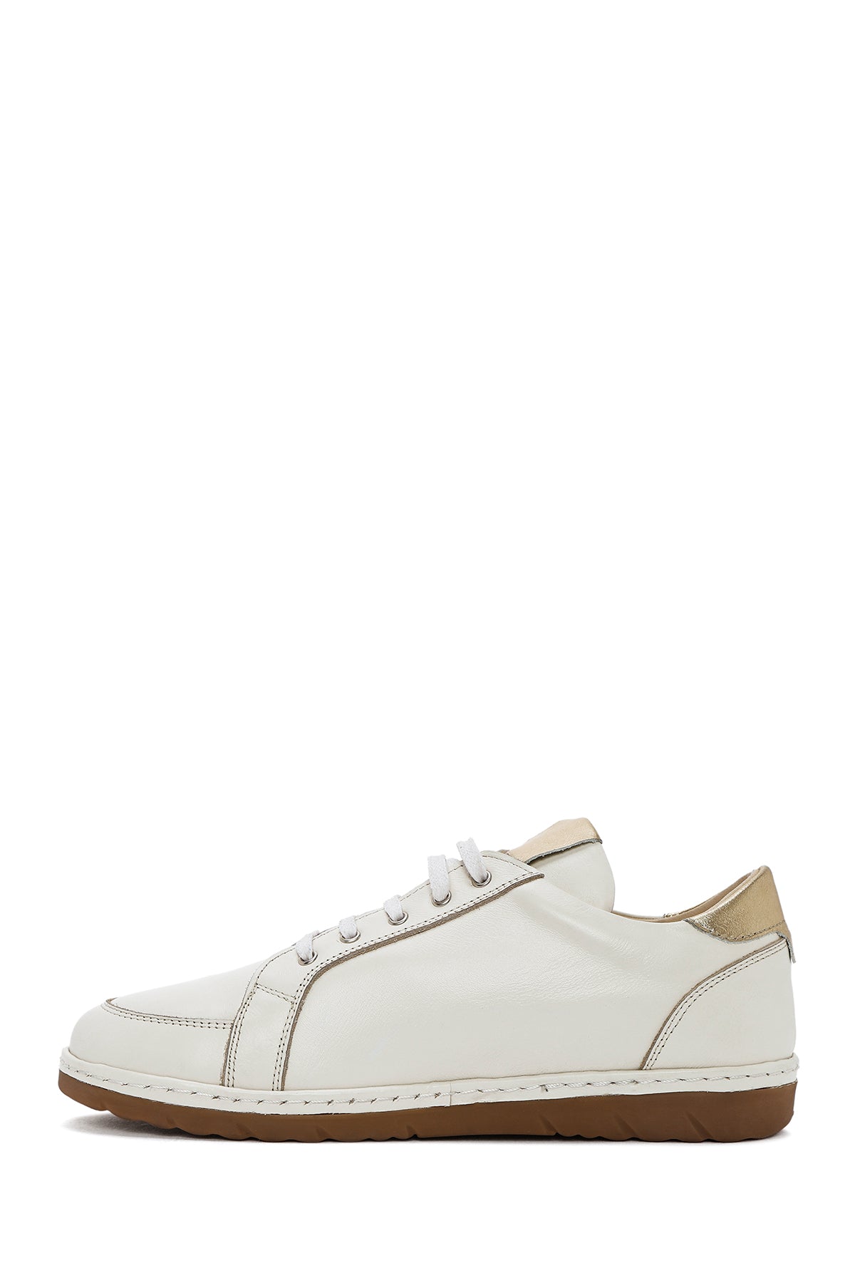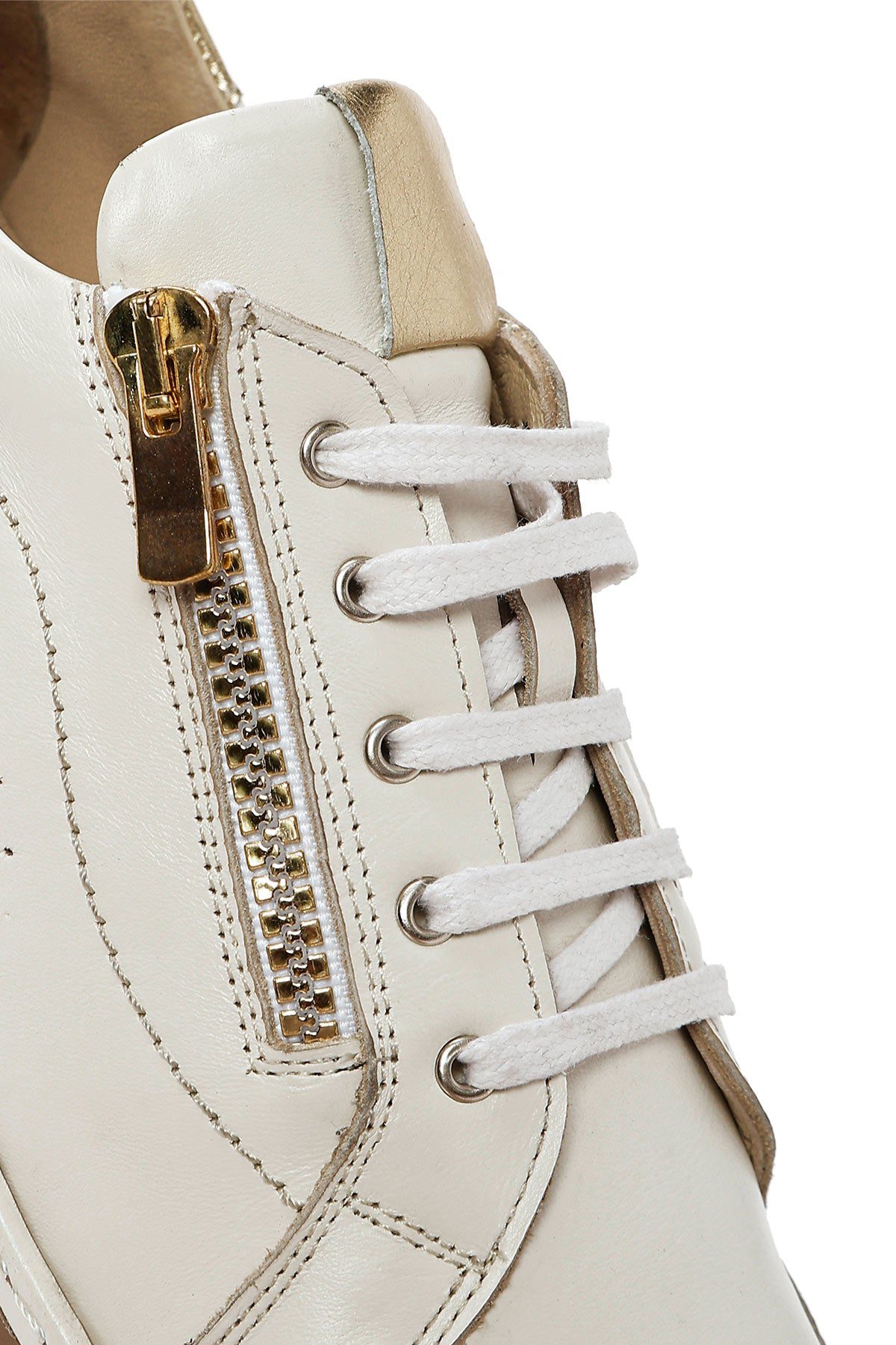 Kadın Krem Bağcıklı Deri Sneaker