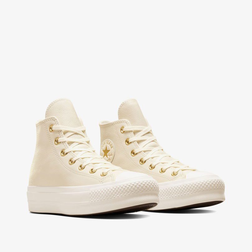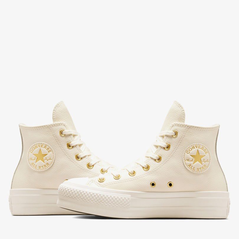 کتونی چرمی کانورس آل استار Chuck Taylor All Star Lift کرم زنانه لژدار اورجینال