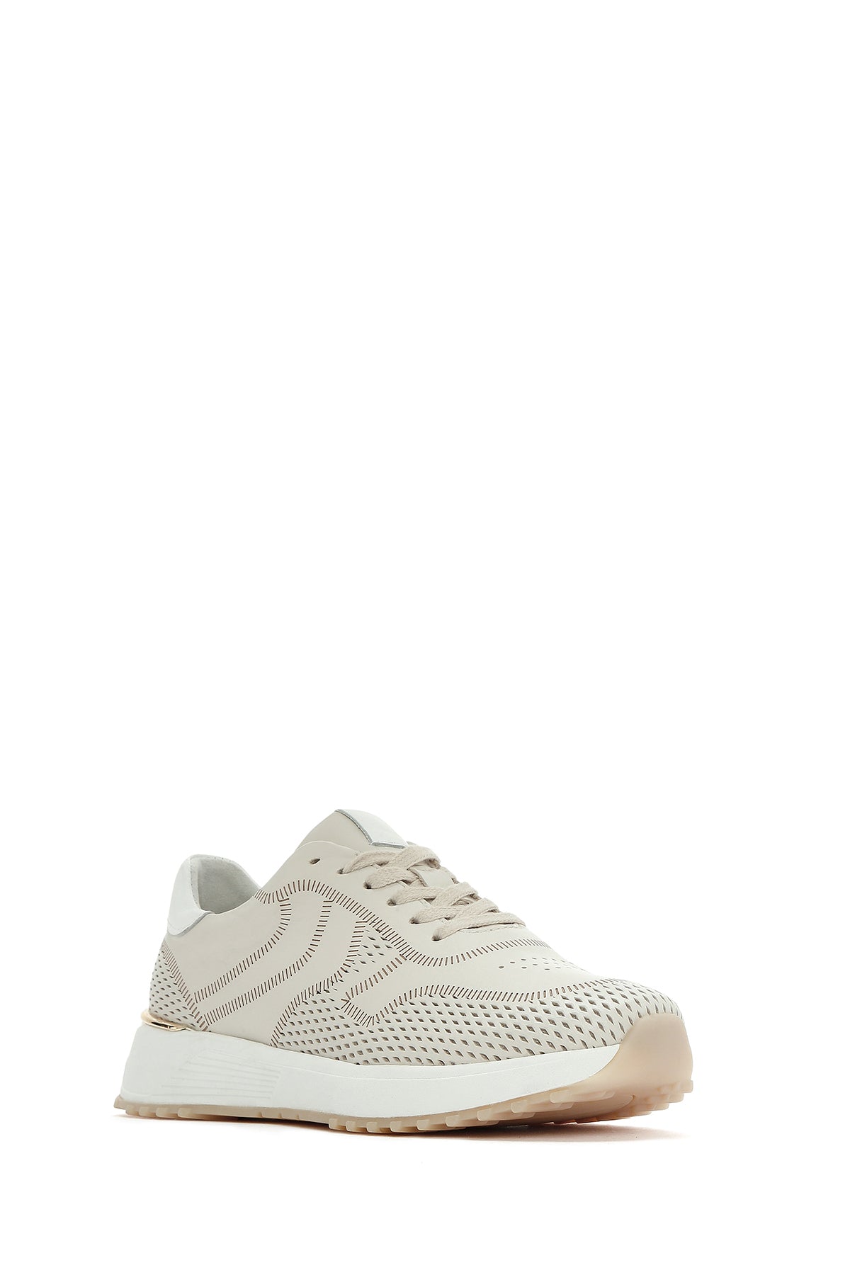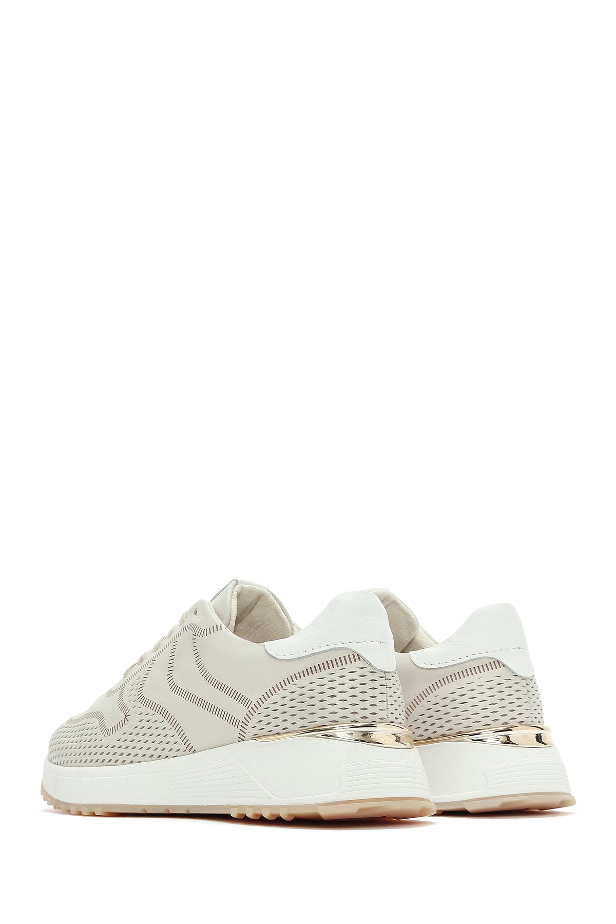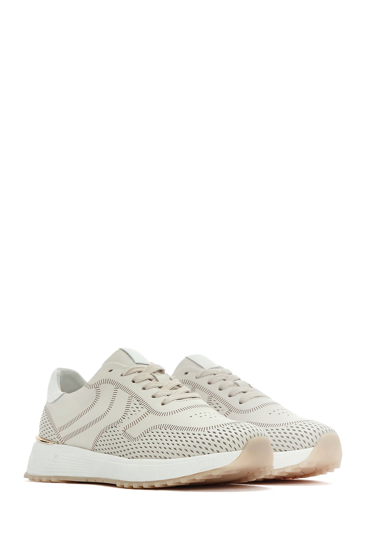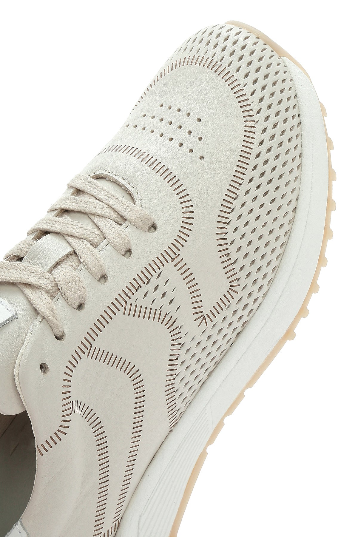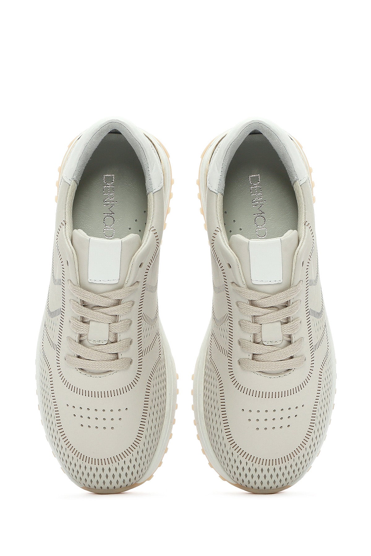 Kadın Krem Bağcıklı Kalın Tabanlı Deri Sneaker