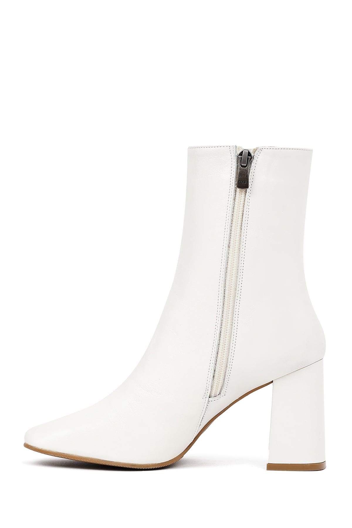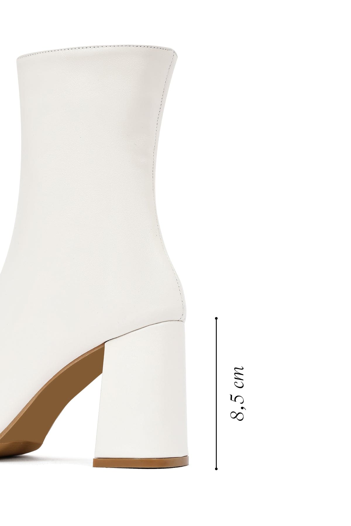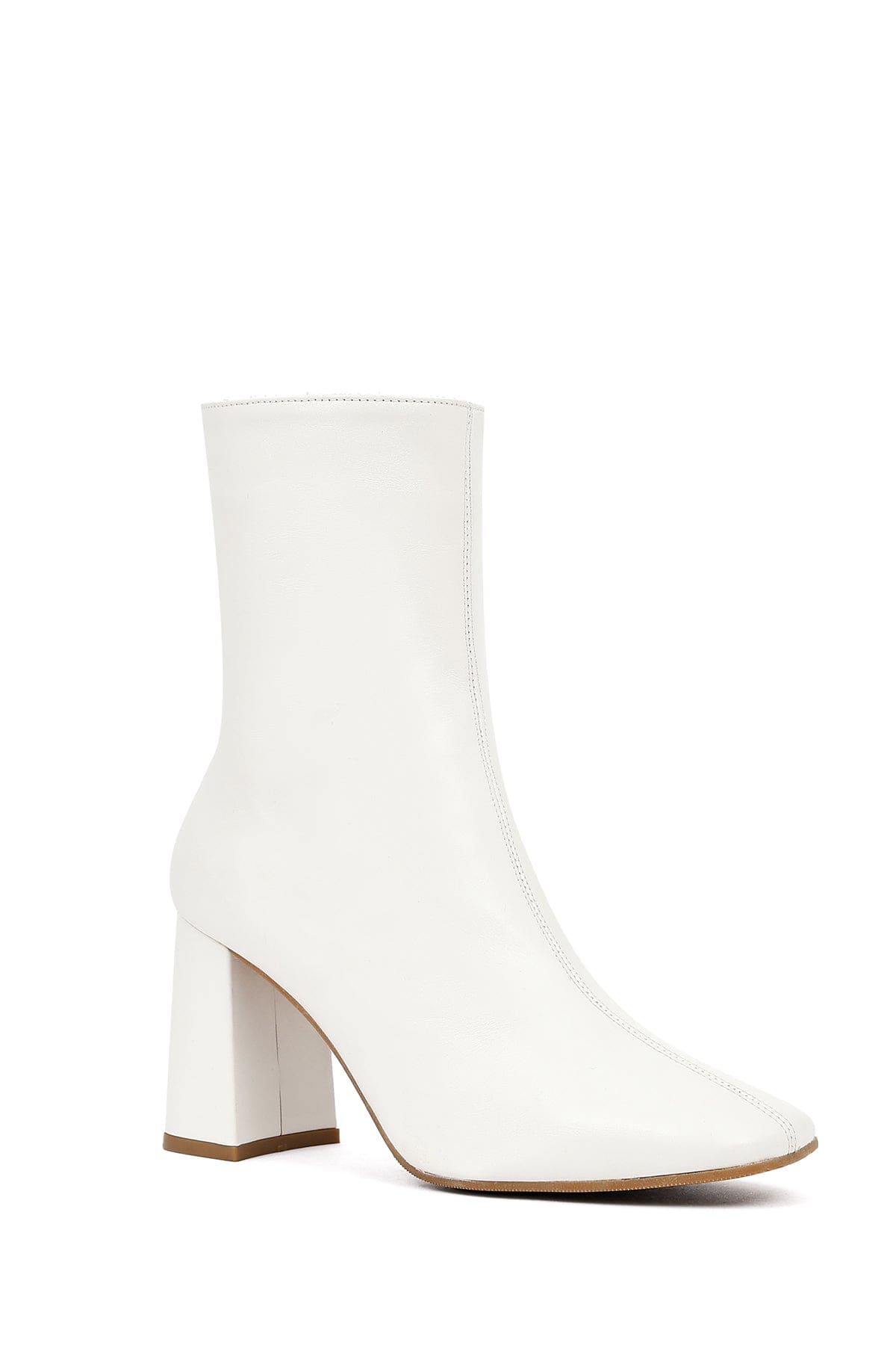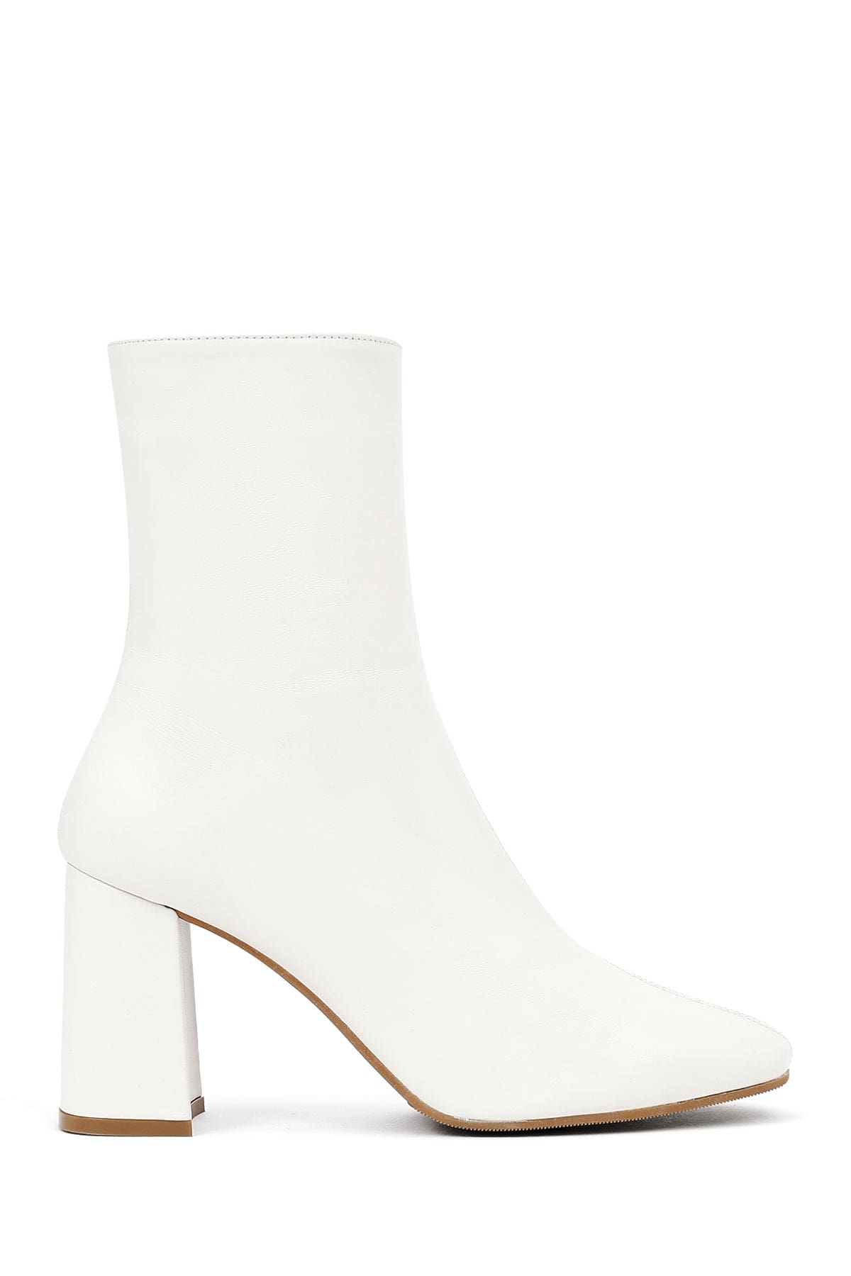 Kadın Krem Fermuarlı Kalın Topuklu Deri Bot