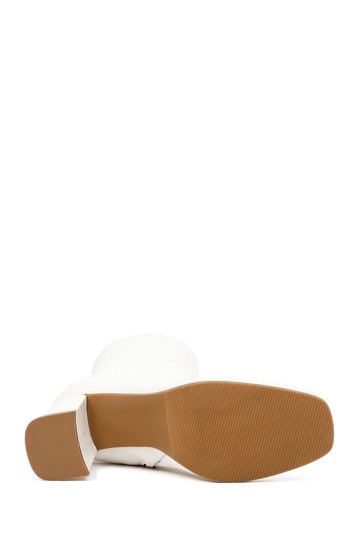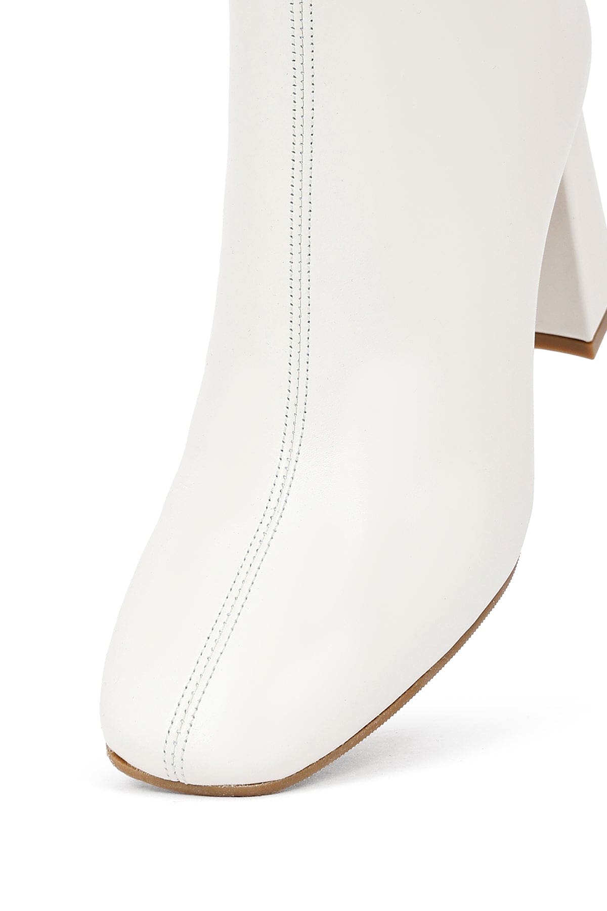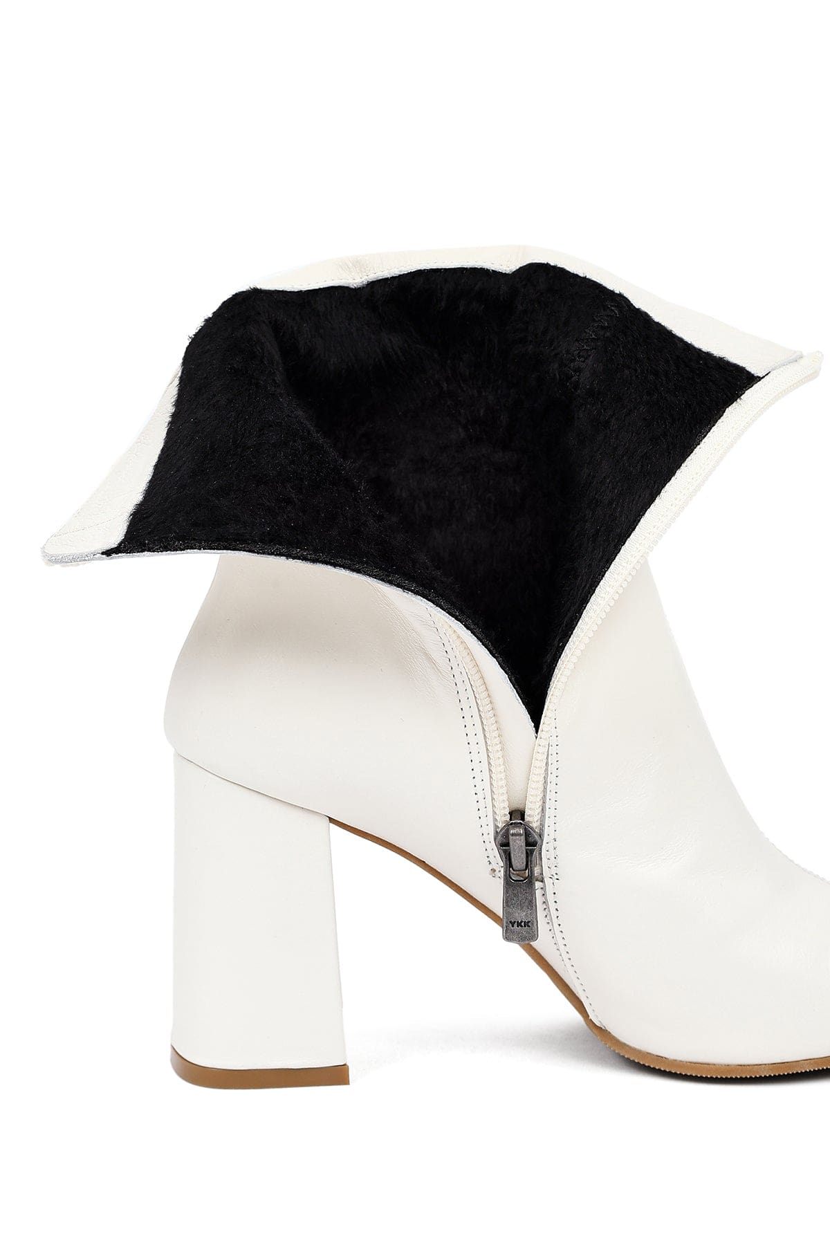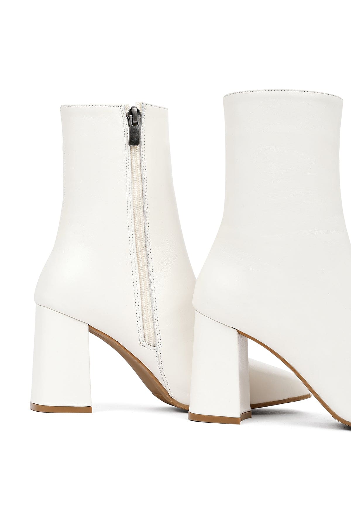 Kadın Krem Fermuarlı Kalın Topuklu Deri Bot