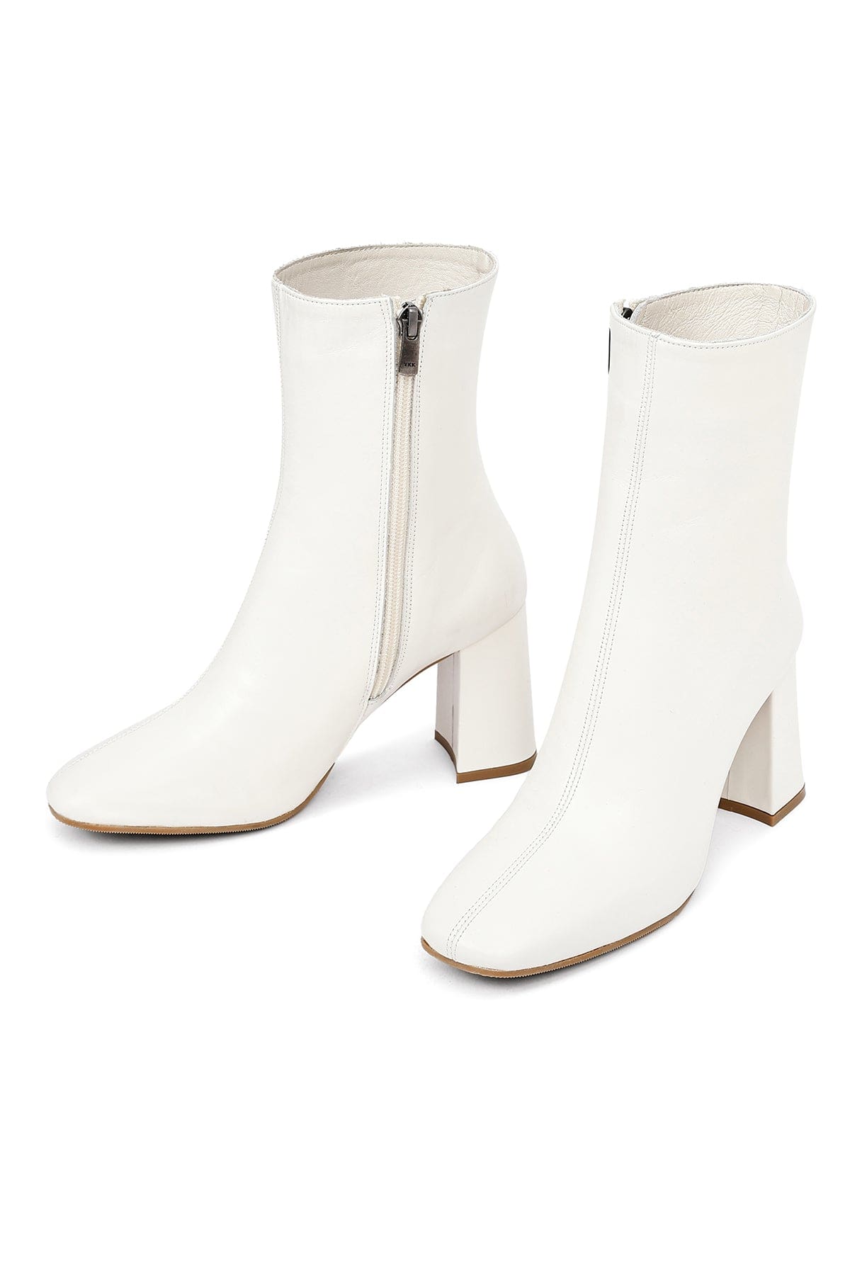 بوت زنانه کرم چرمی زیپدار پاشنه ضخیم دری مد