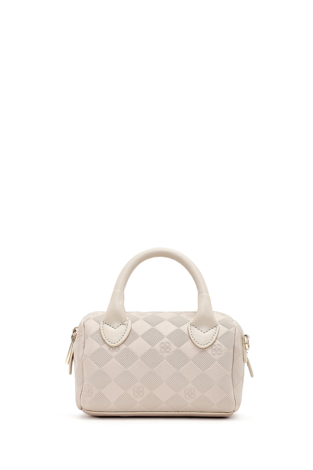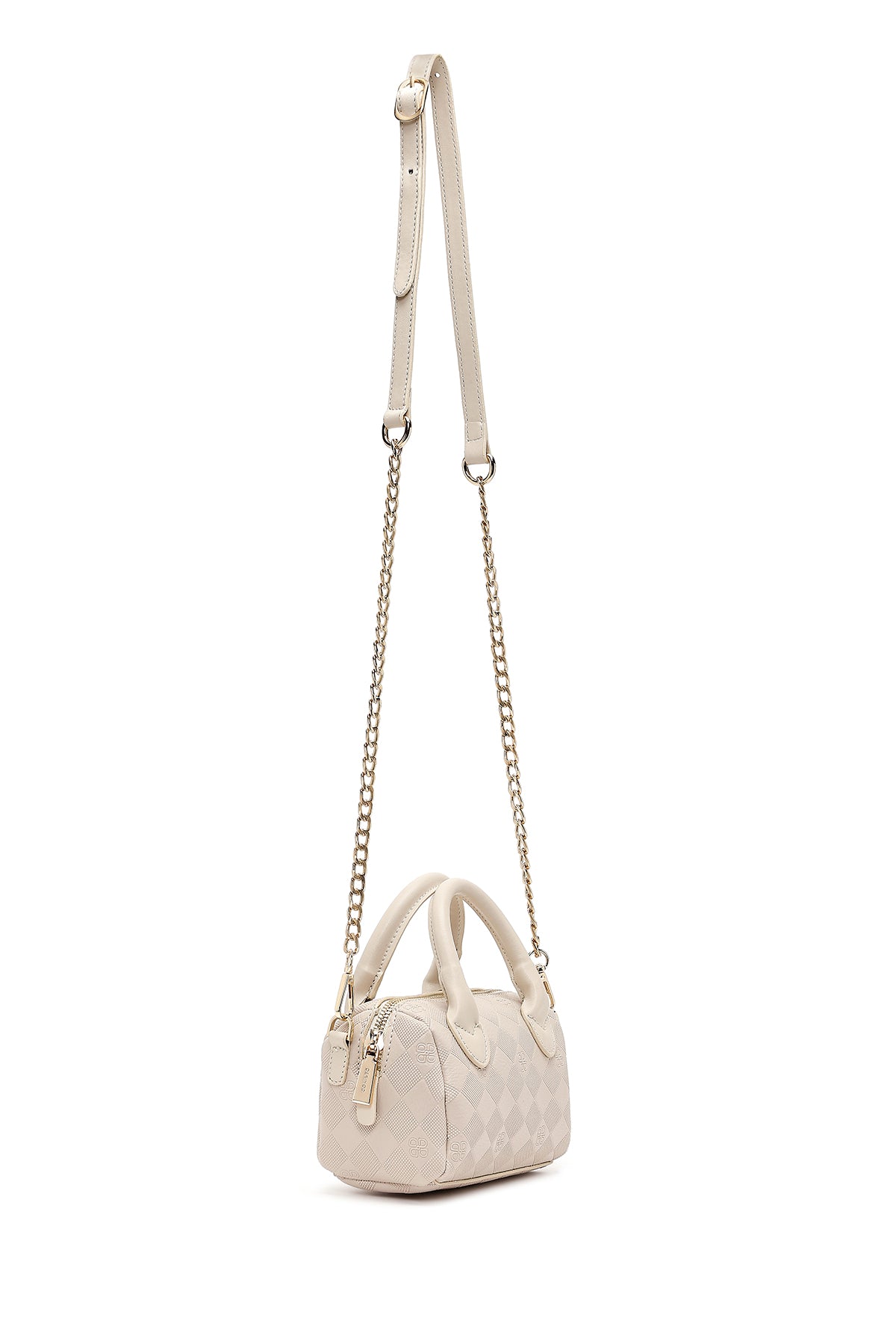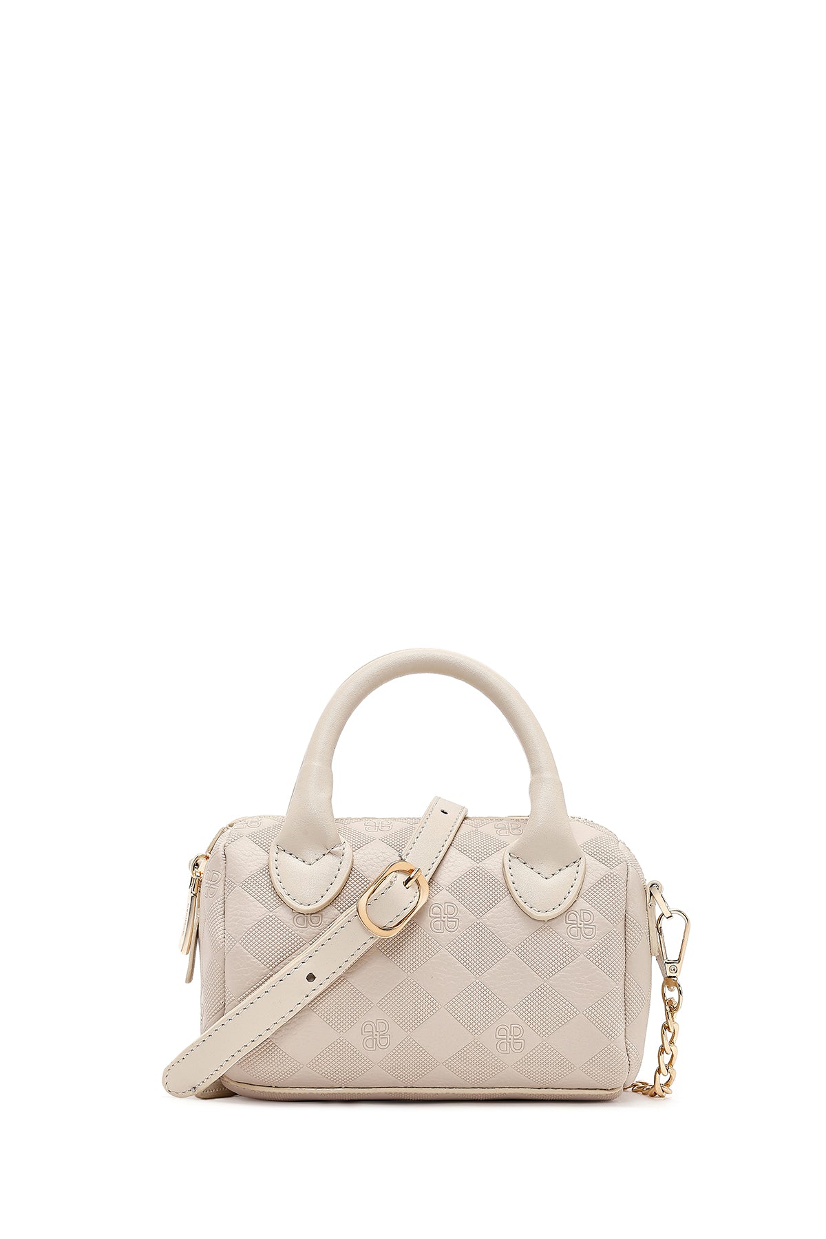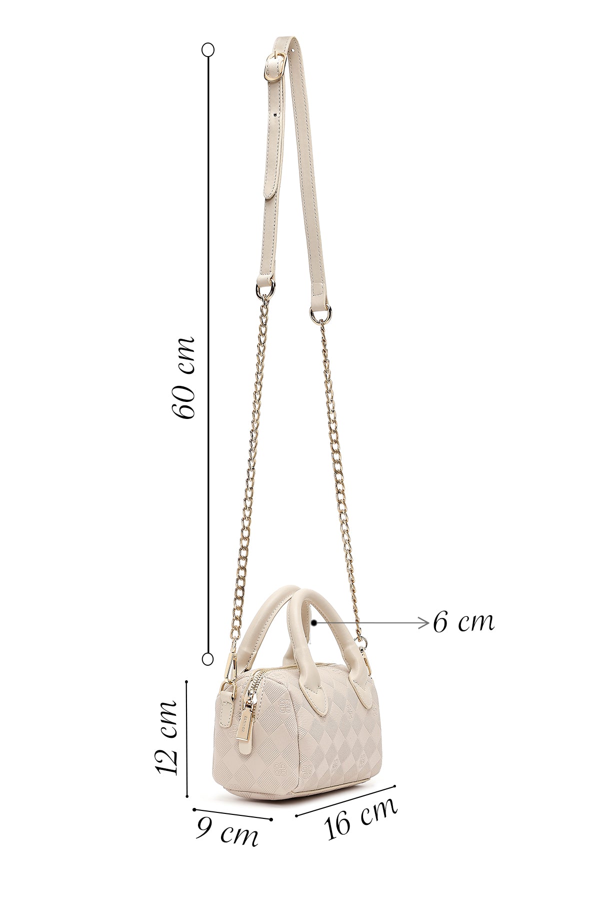 Kadın Krem Uzun Askılı Baskılı Mini Çapraz Çanta