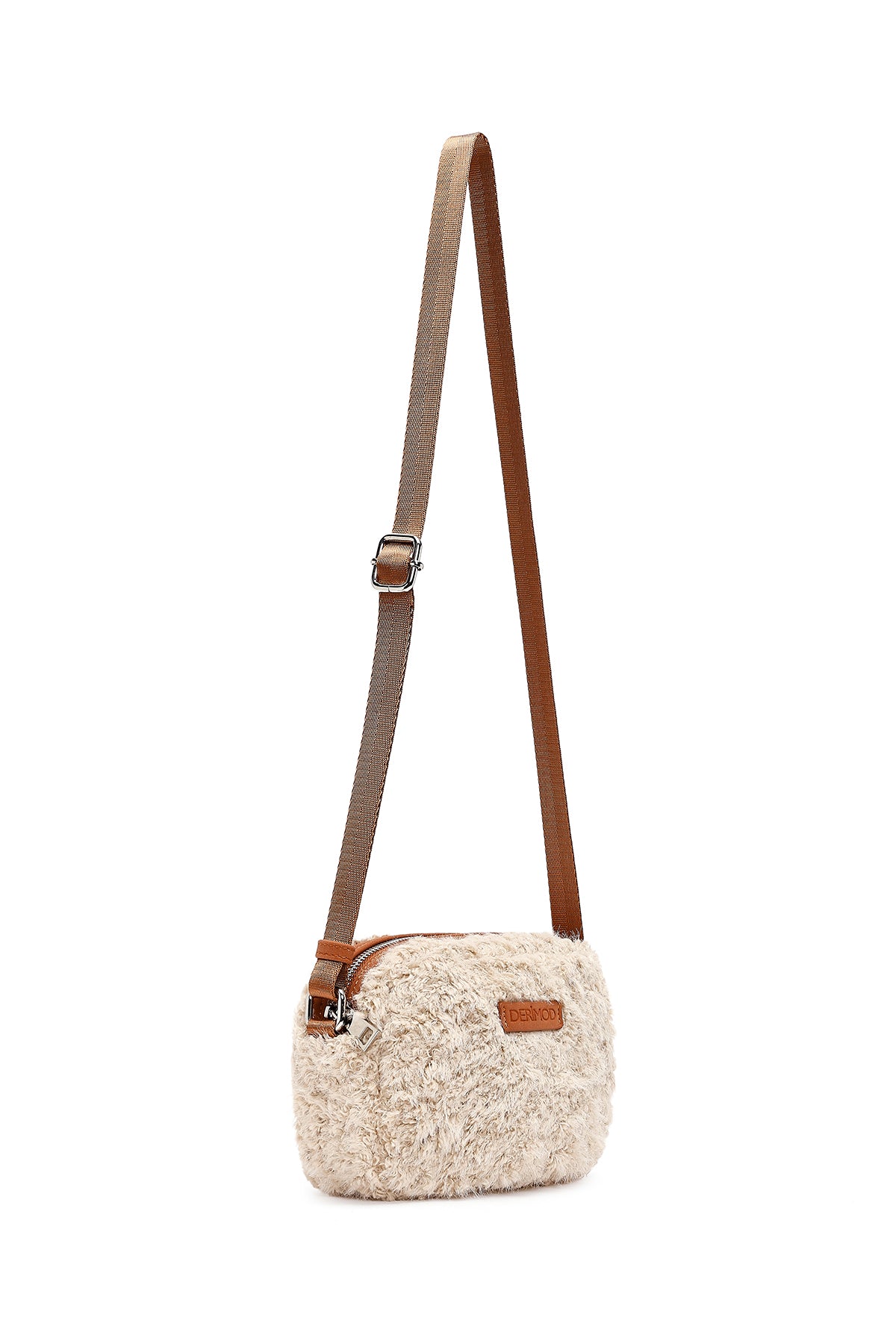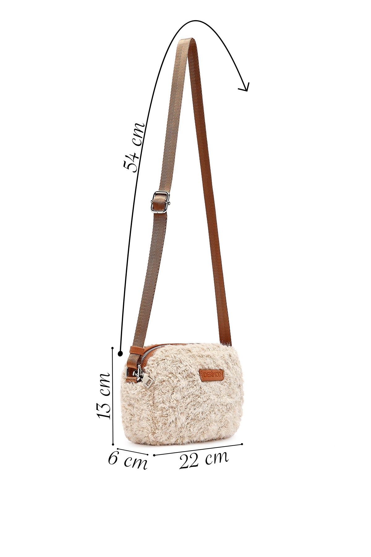 Kadın Krem Uzun Askılı Peluş Çapraz Çanta