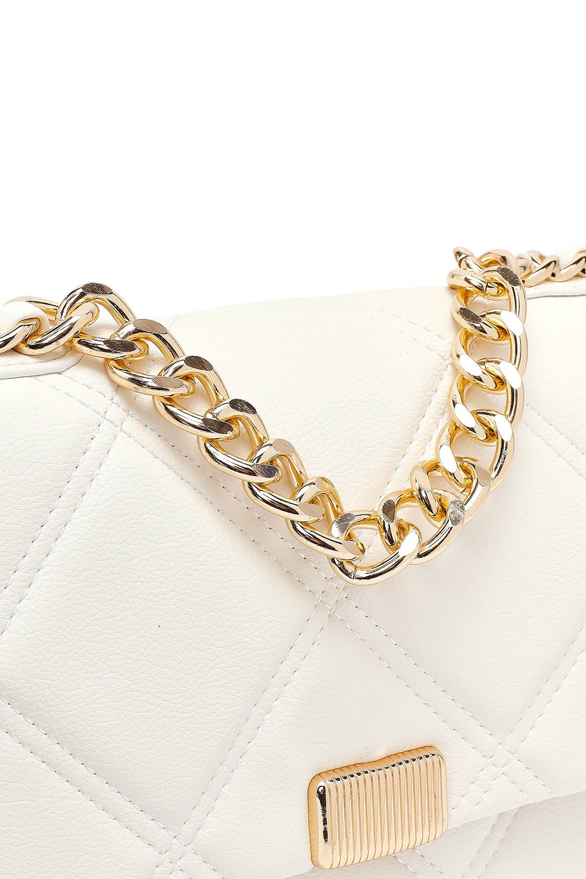 Kadın Krem Uzun Askılı Kapitone Çapraz Çanta