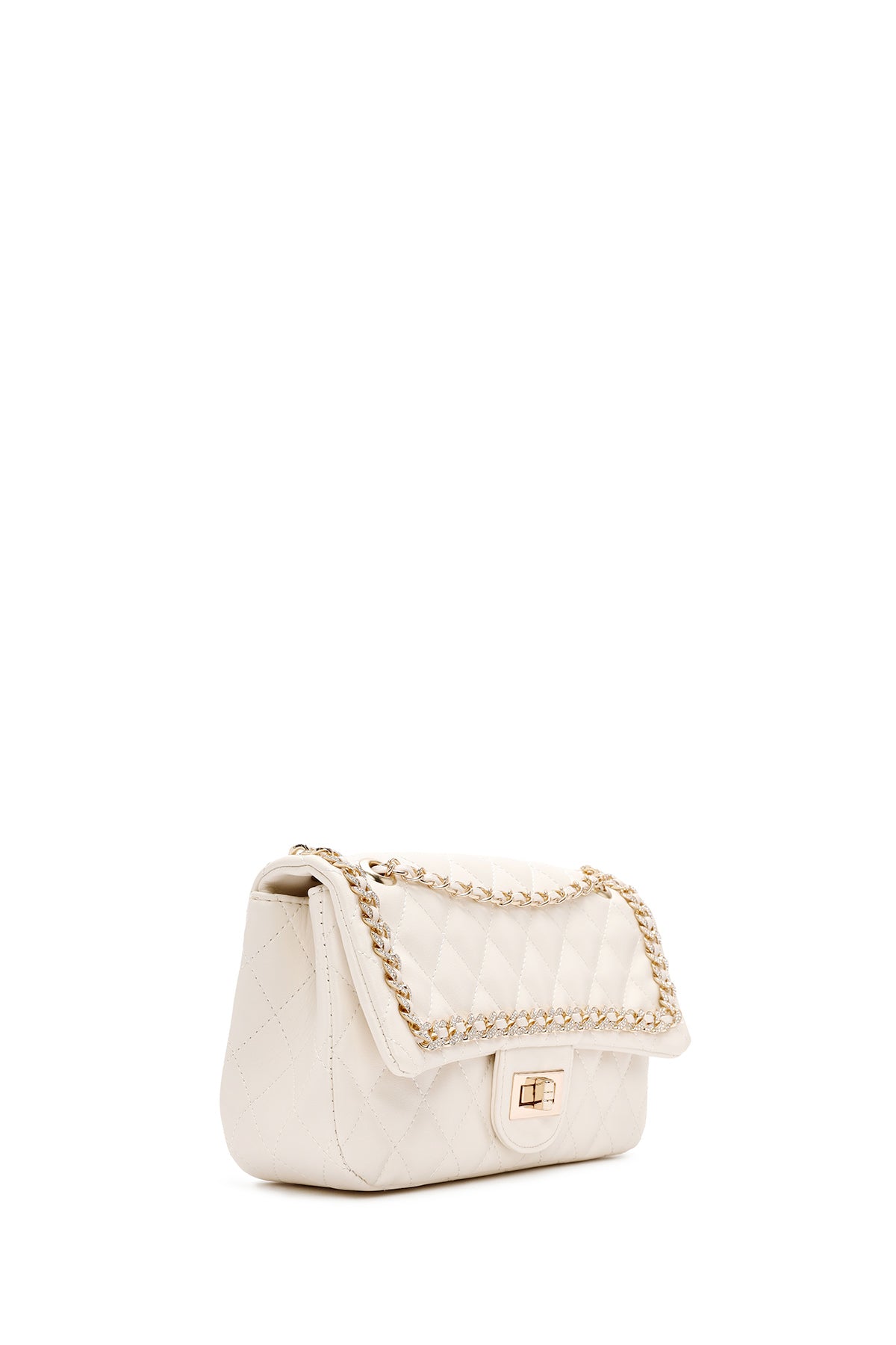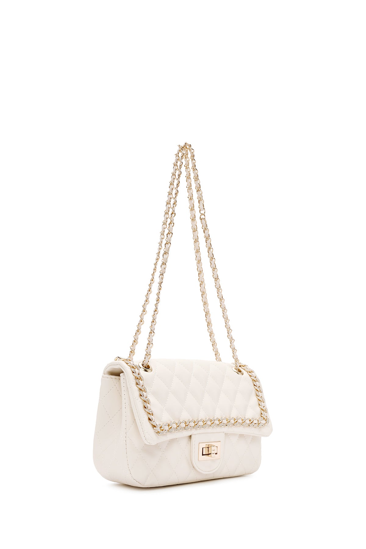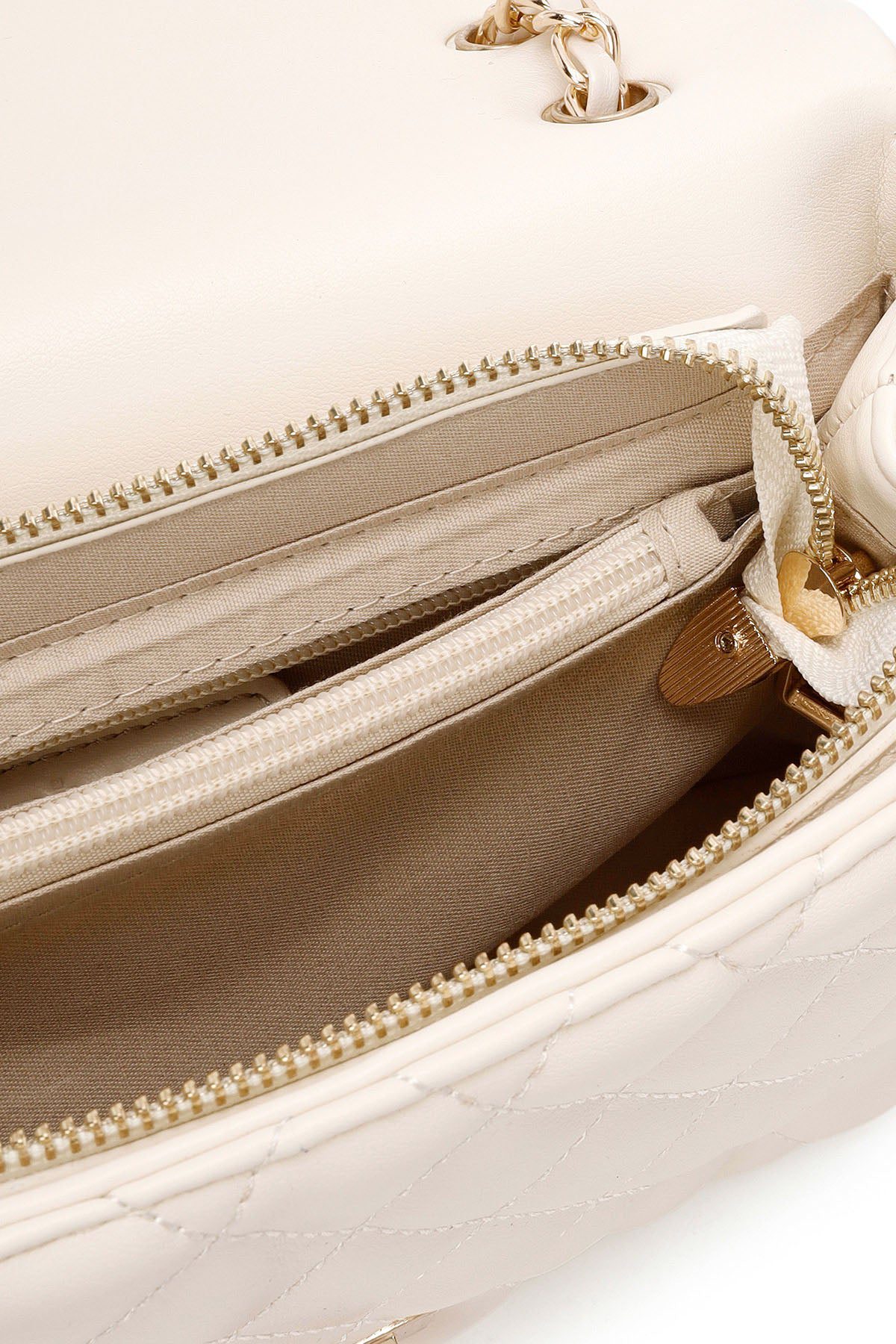Kadın Krem Uzun Askılı Kapitone Omuz Çantası