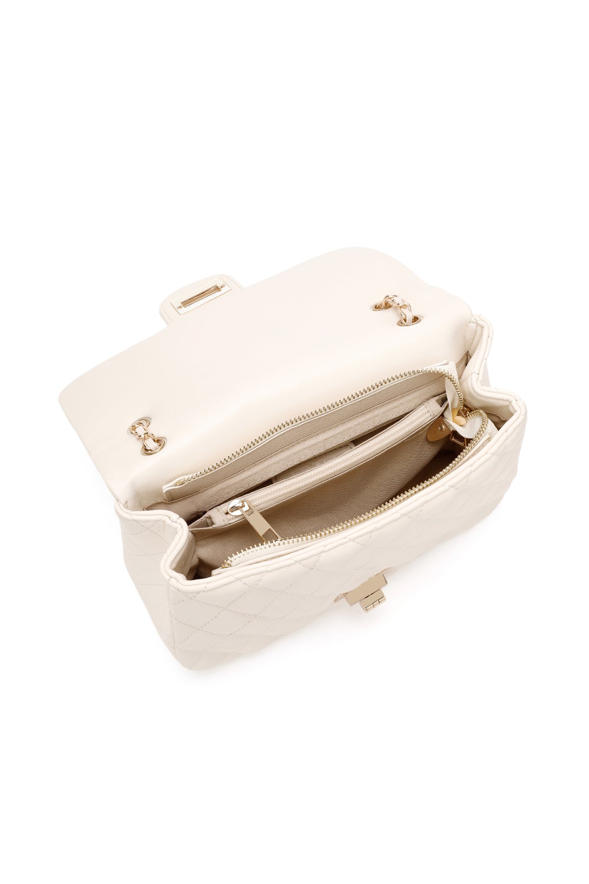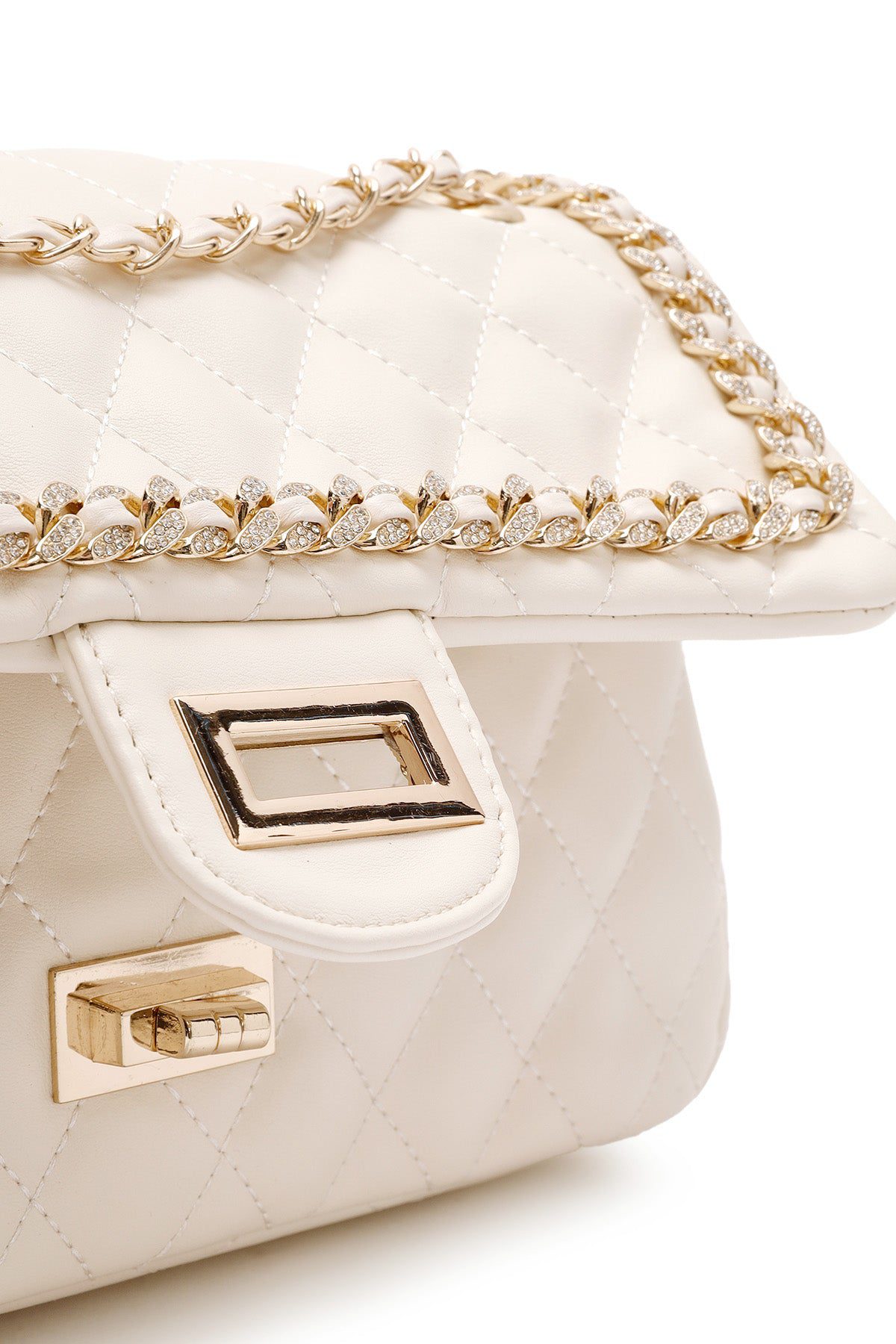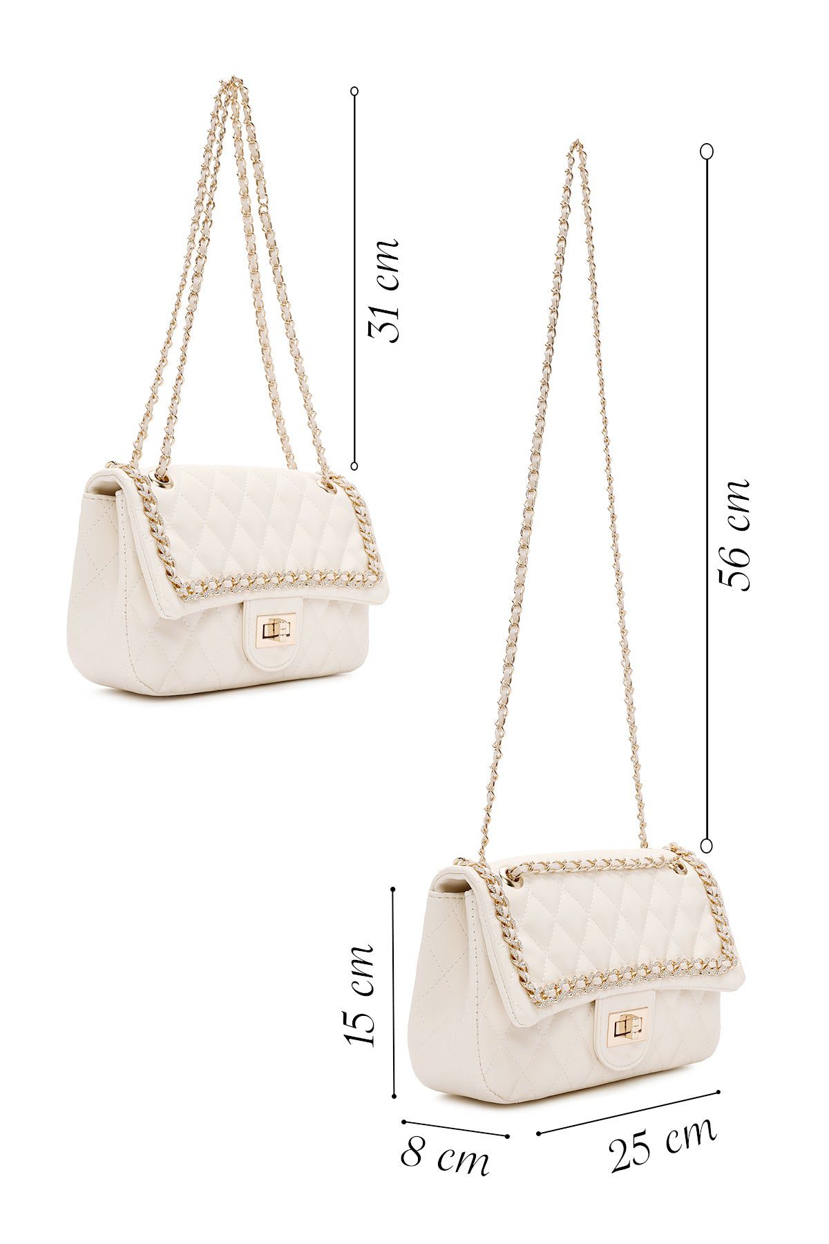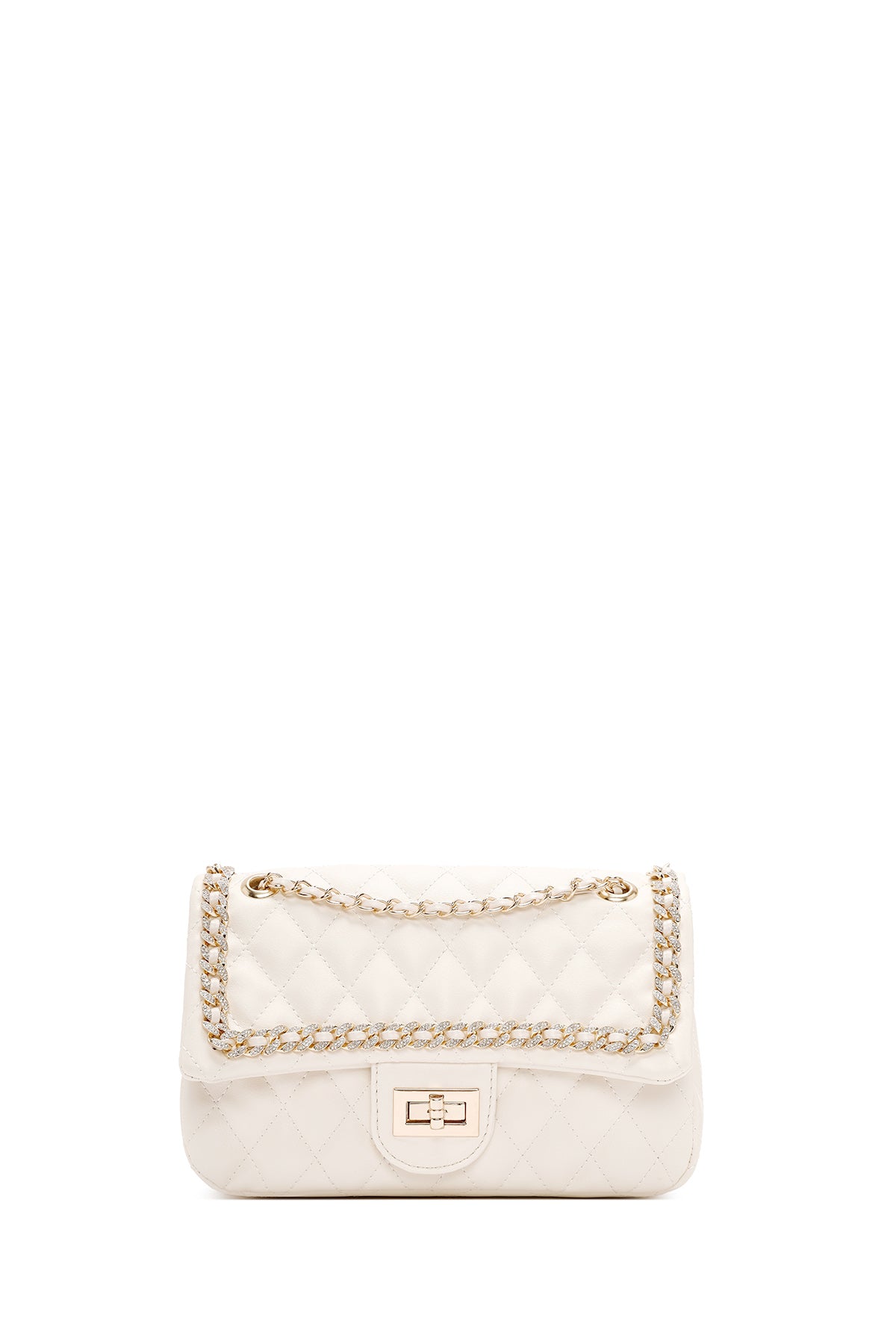 Kadın Krem Uzun Askılı Kapitone Omuz Çantası