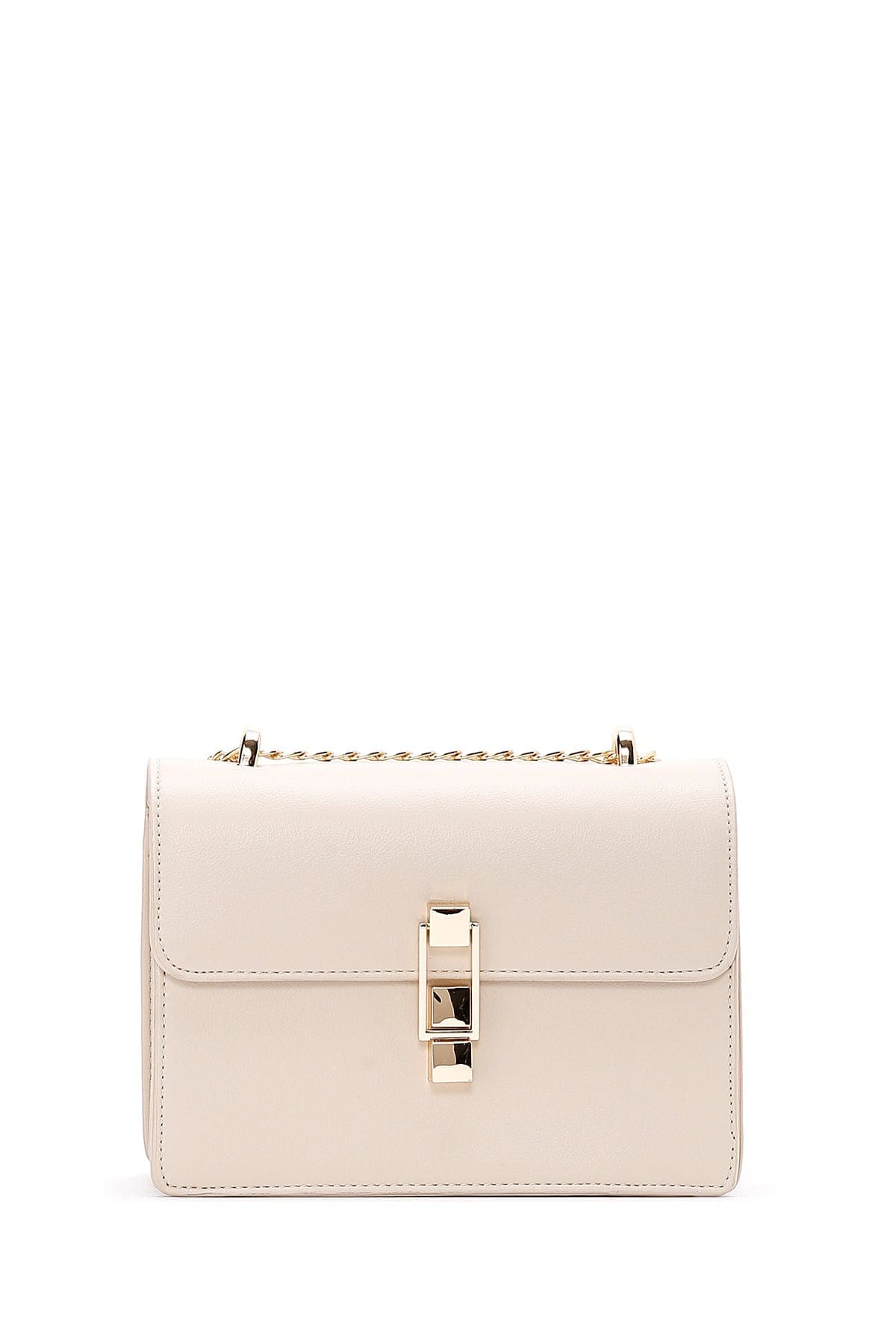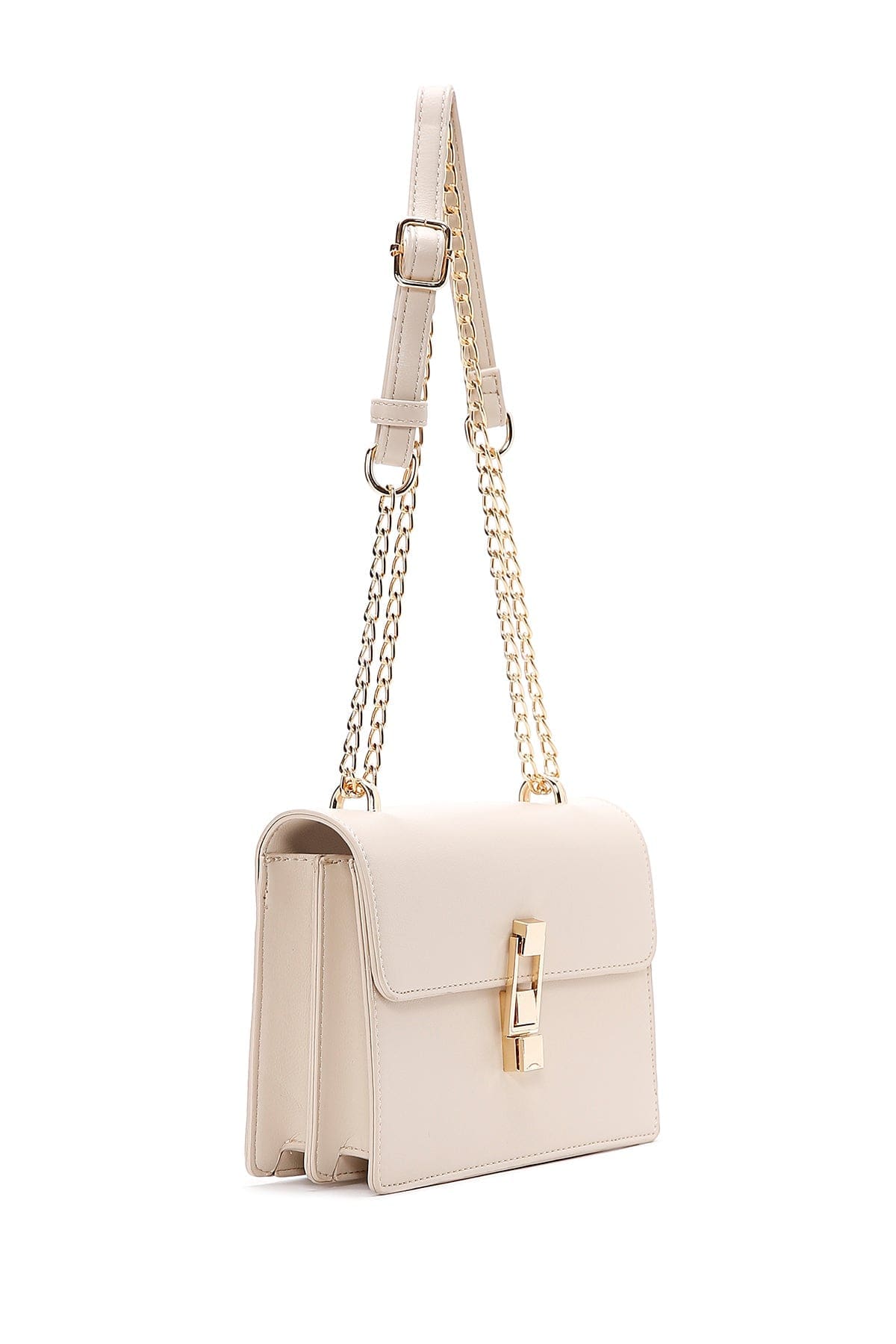 Kadın Krem Uzun Zincir Askılı Mini Klasik Çapraz Çanta