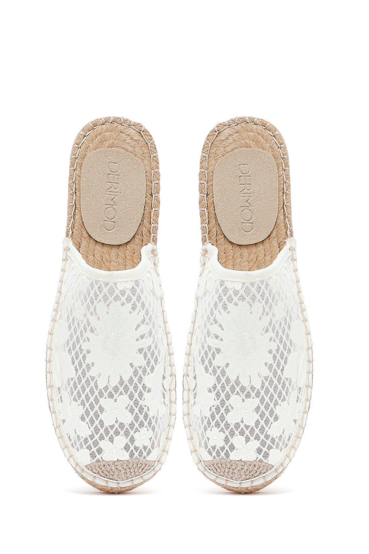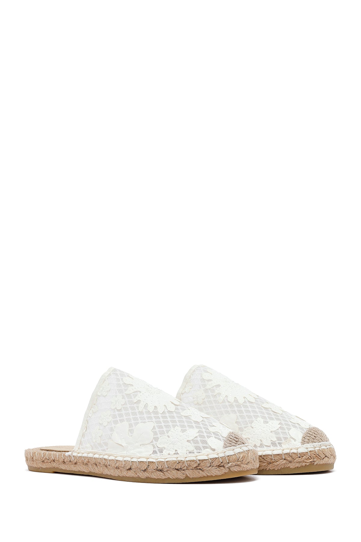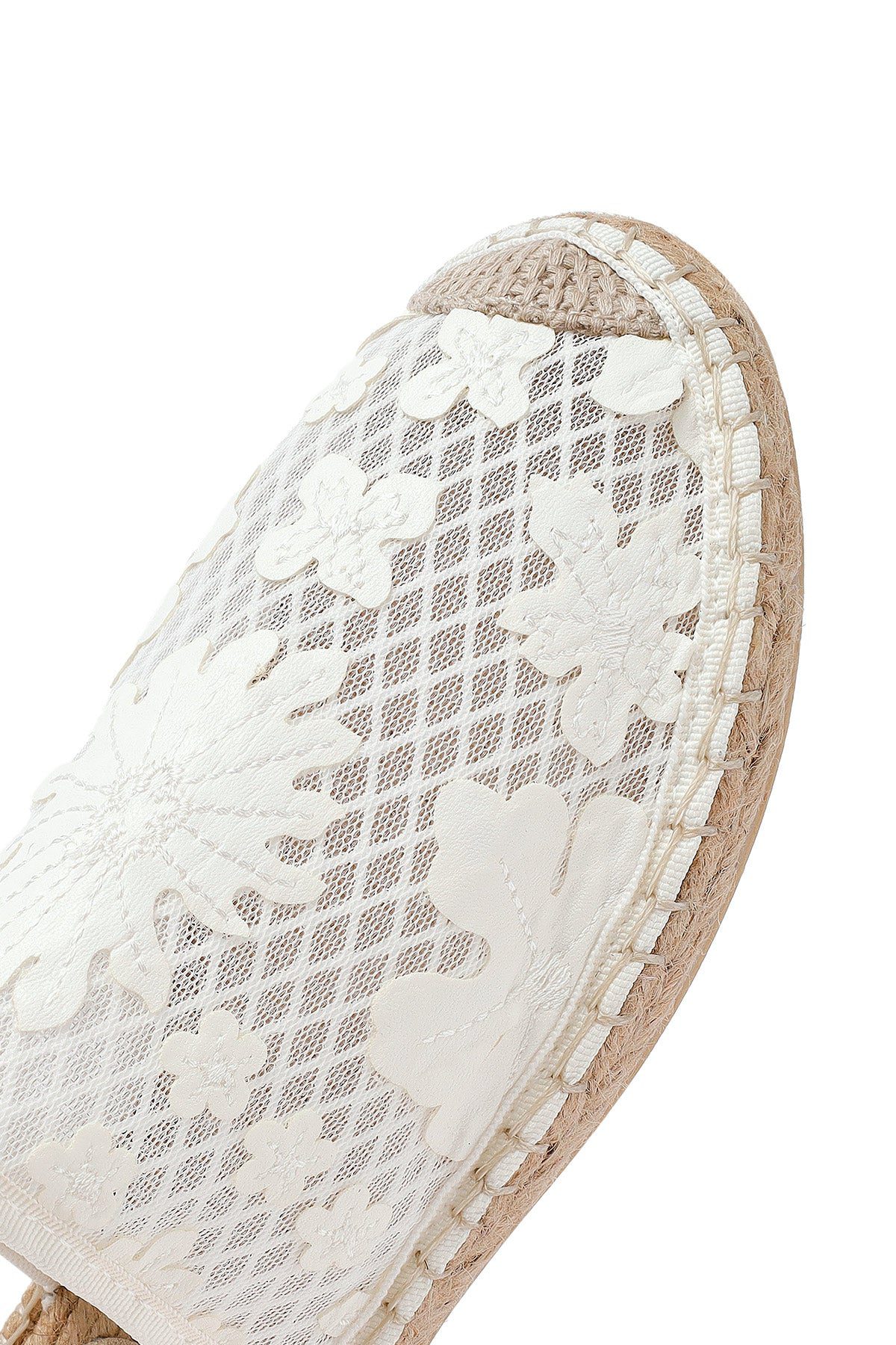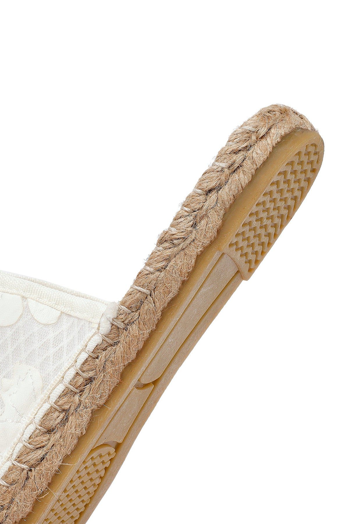 Kadın Krem Desenli Espadril Terlik
