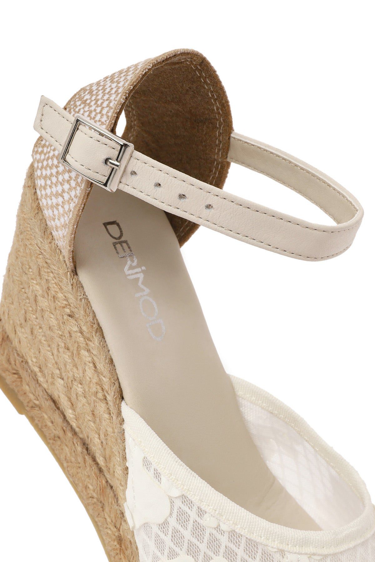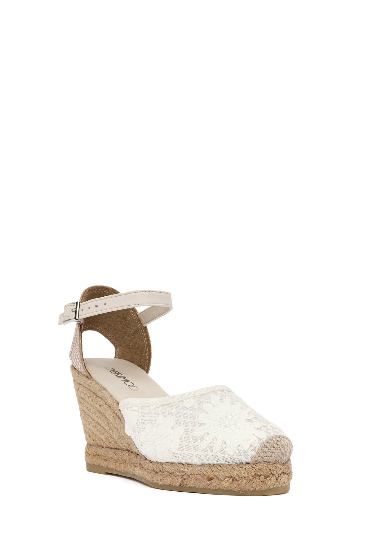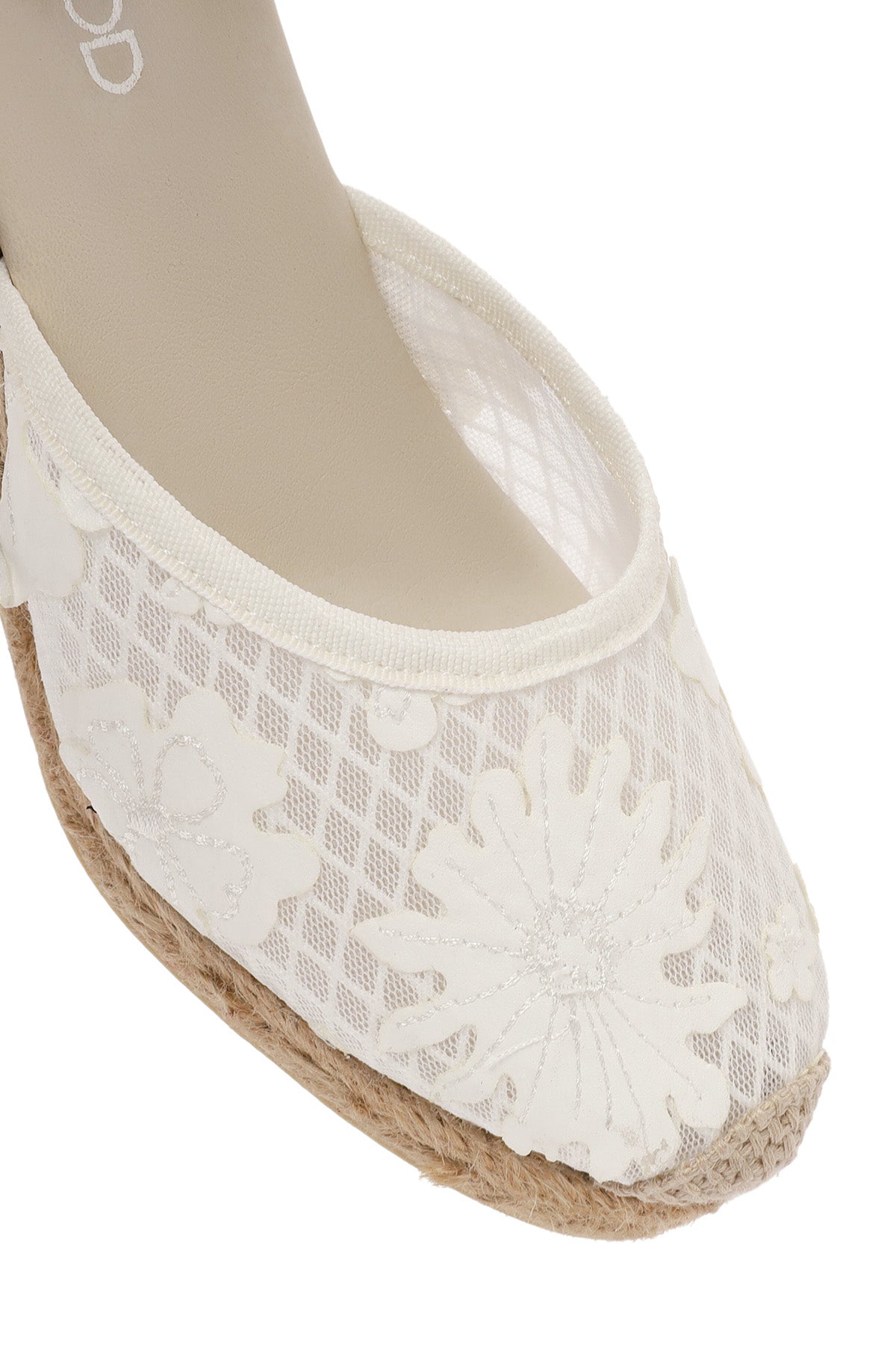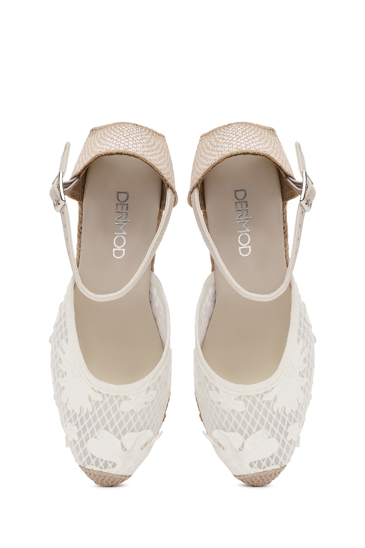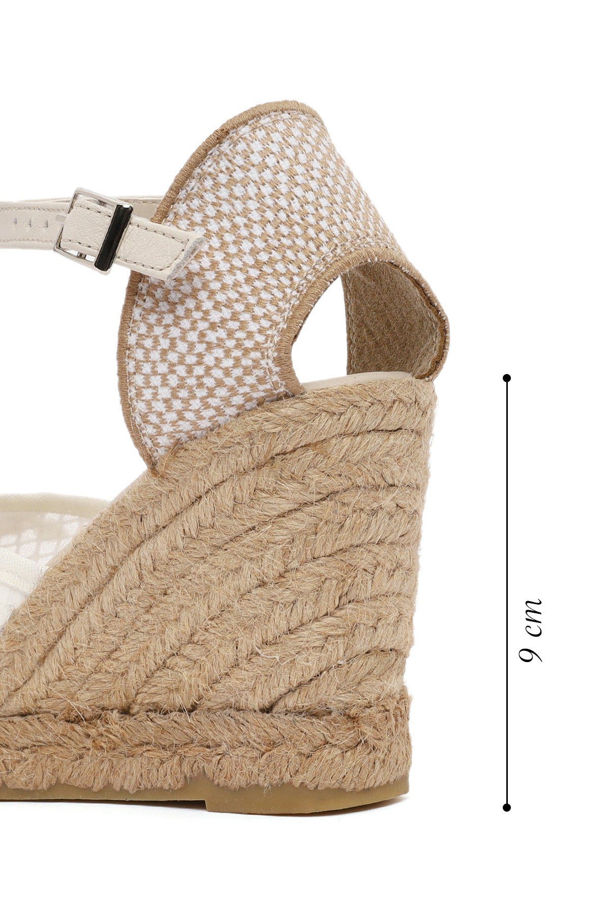 Kadın Krem Bilekten Bantlı Desenli Dolgu Topuklu Espadril