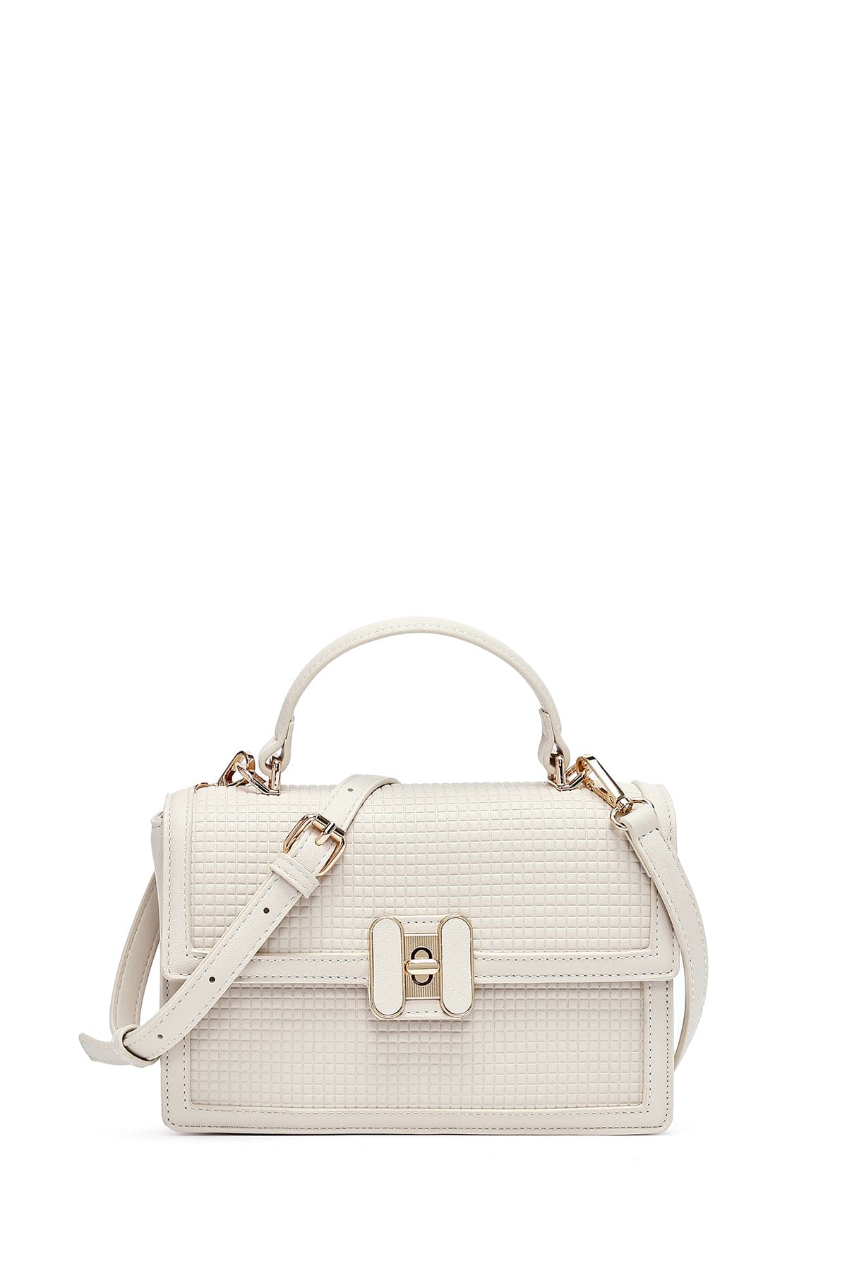 Kadın Krem Uzun Askılı Baskılı Çapraz Çanta