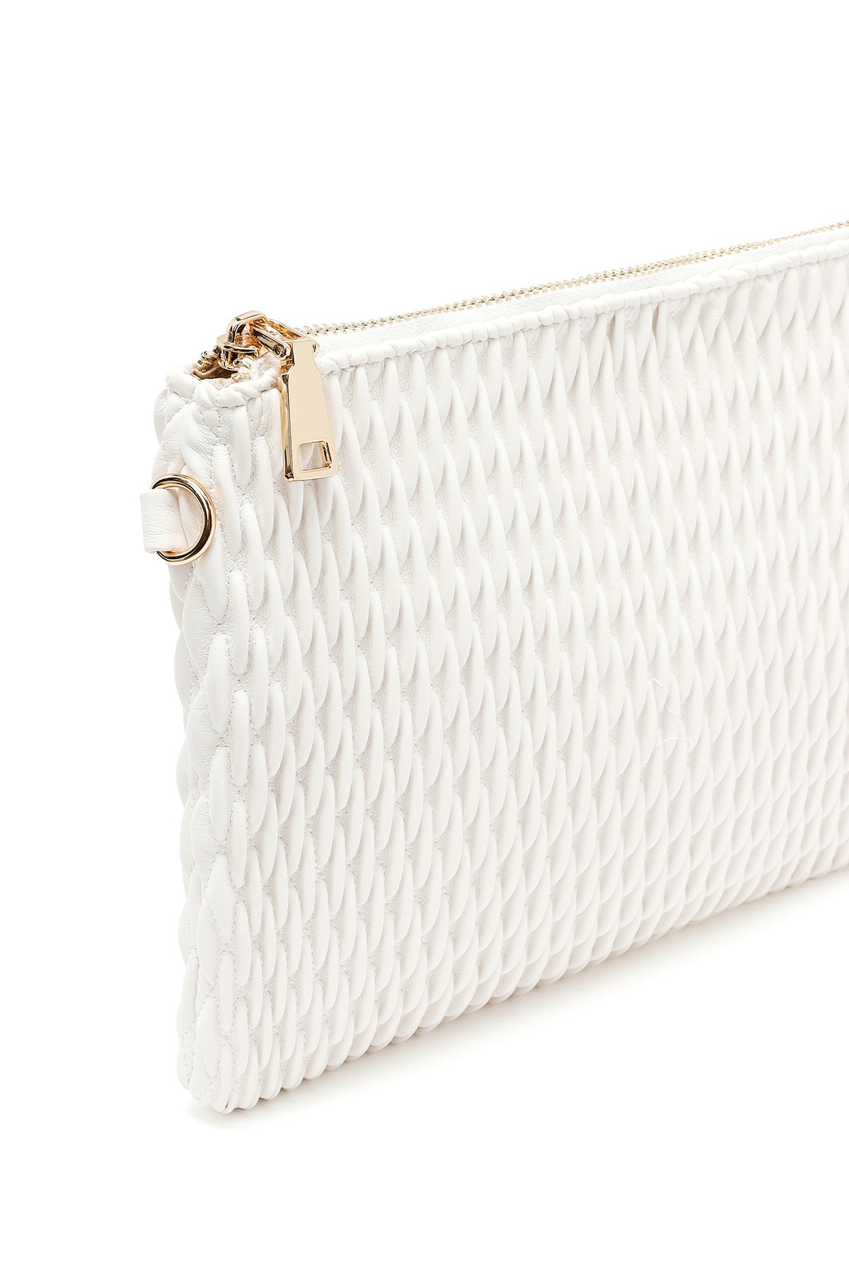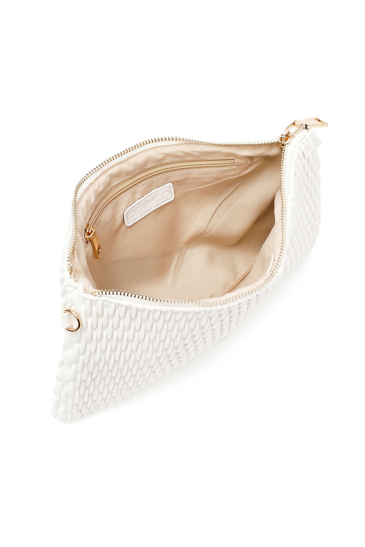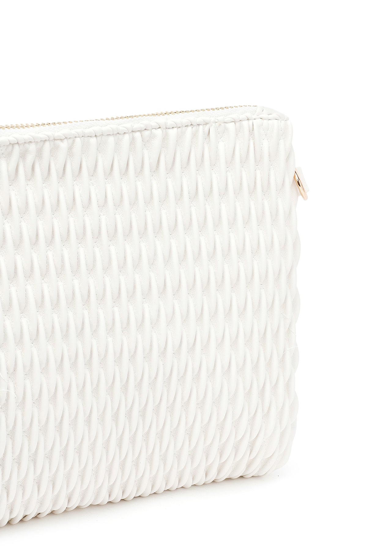 کیف مجلسی زنانه کرم طرحدار با بند زنجیری بلند دری مد