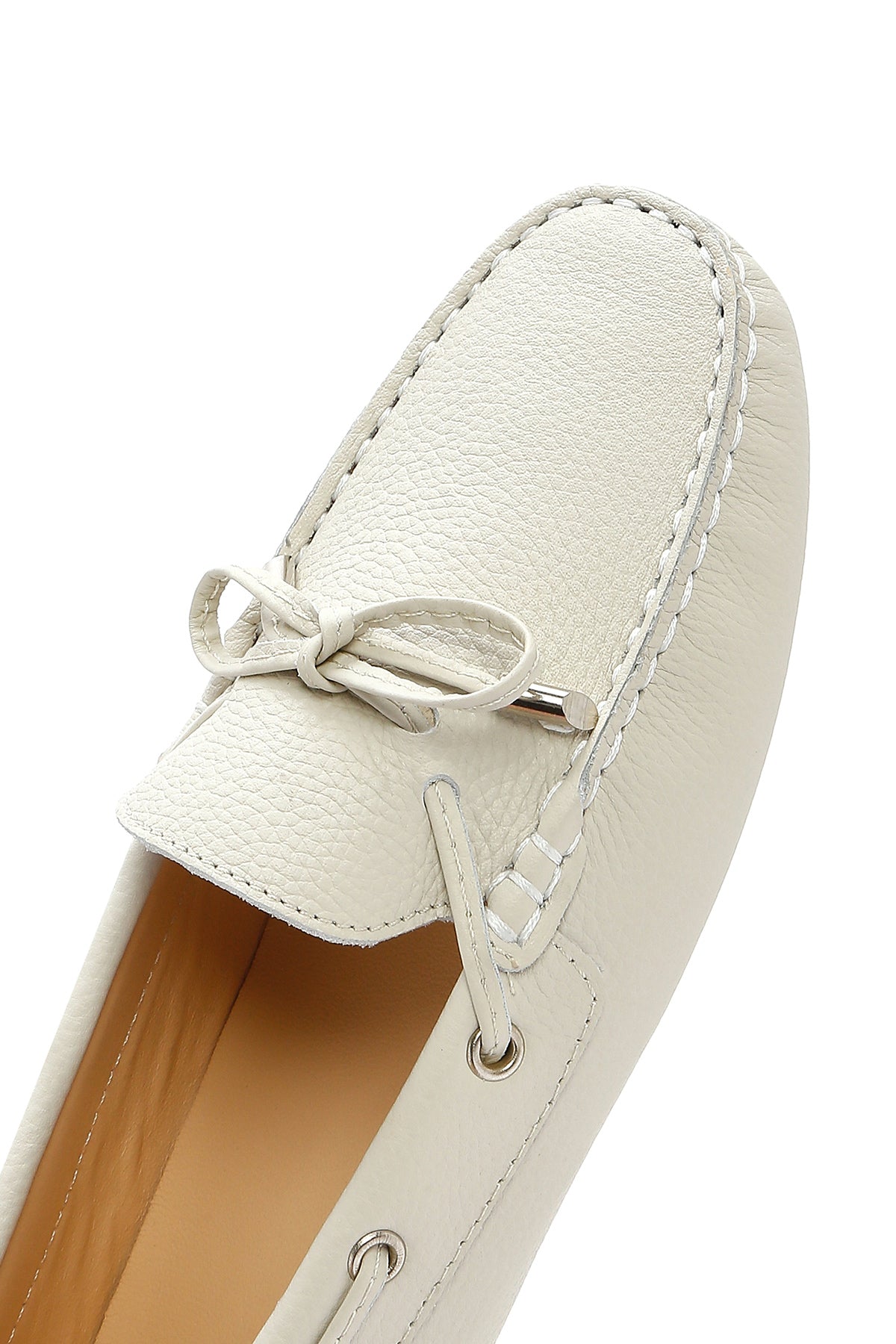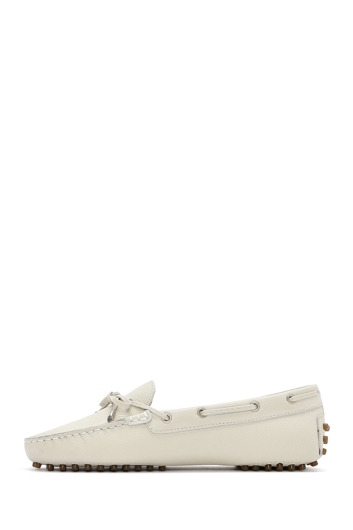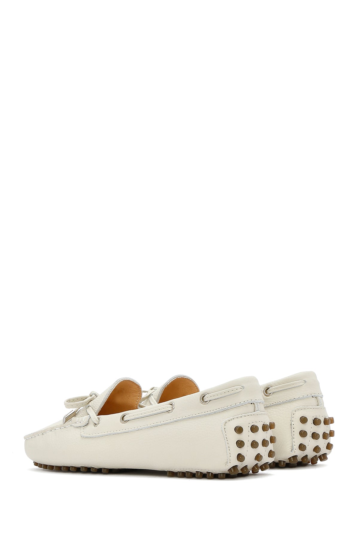 Kadın Krem Püsküllü Deri Loafer