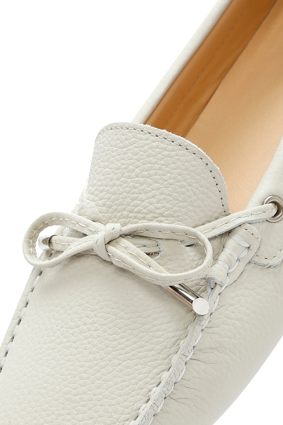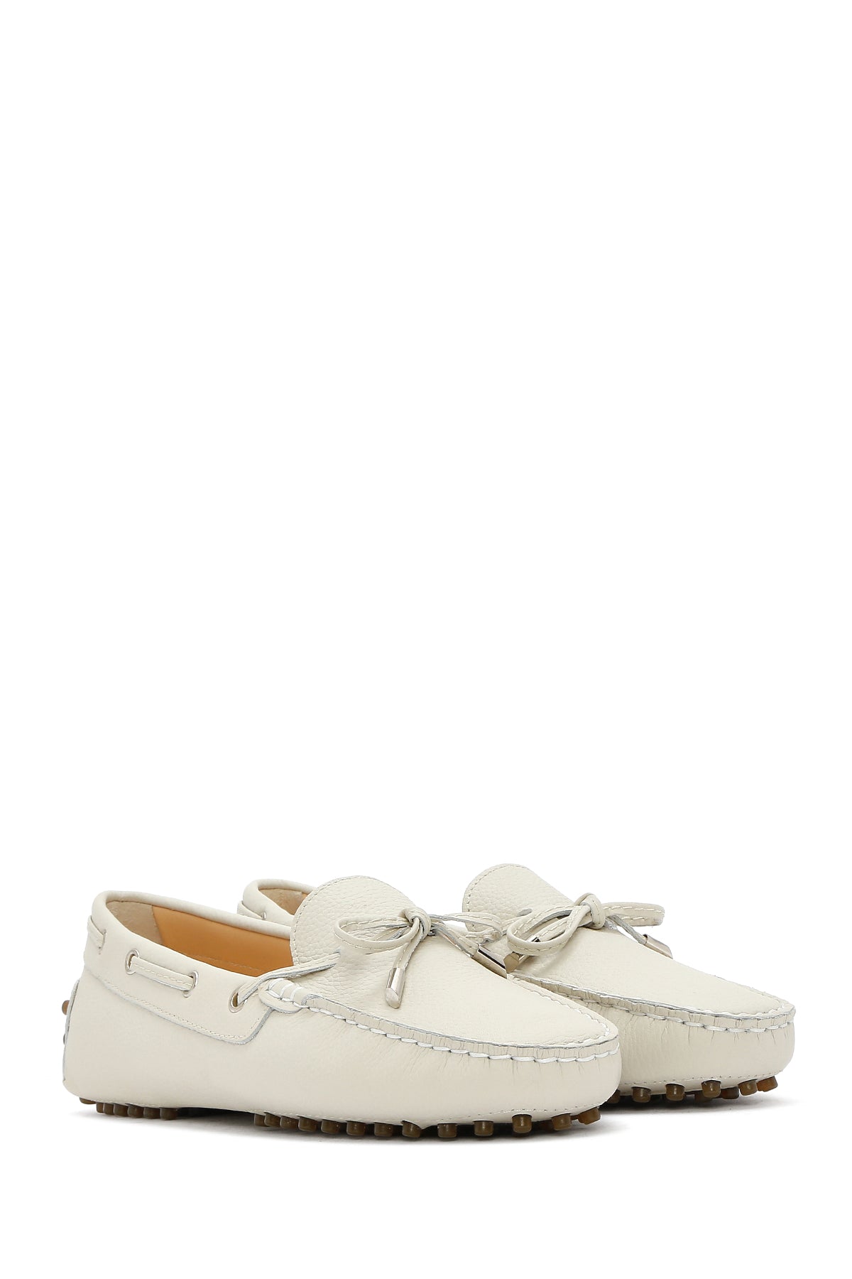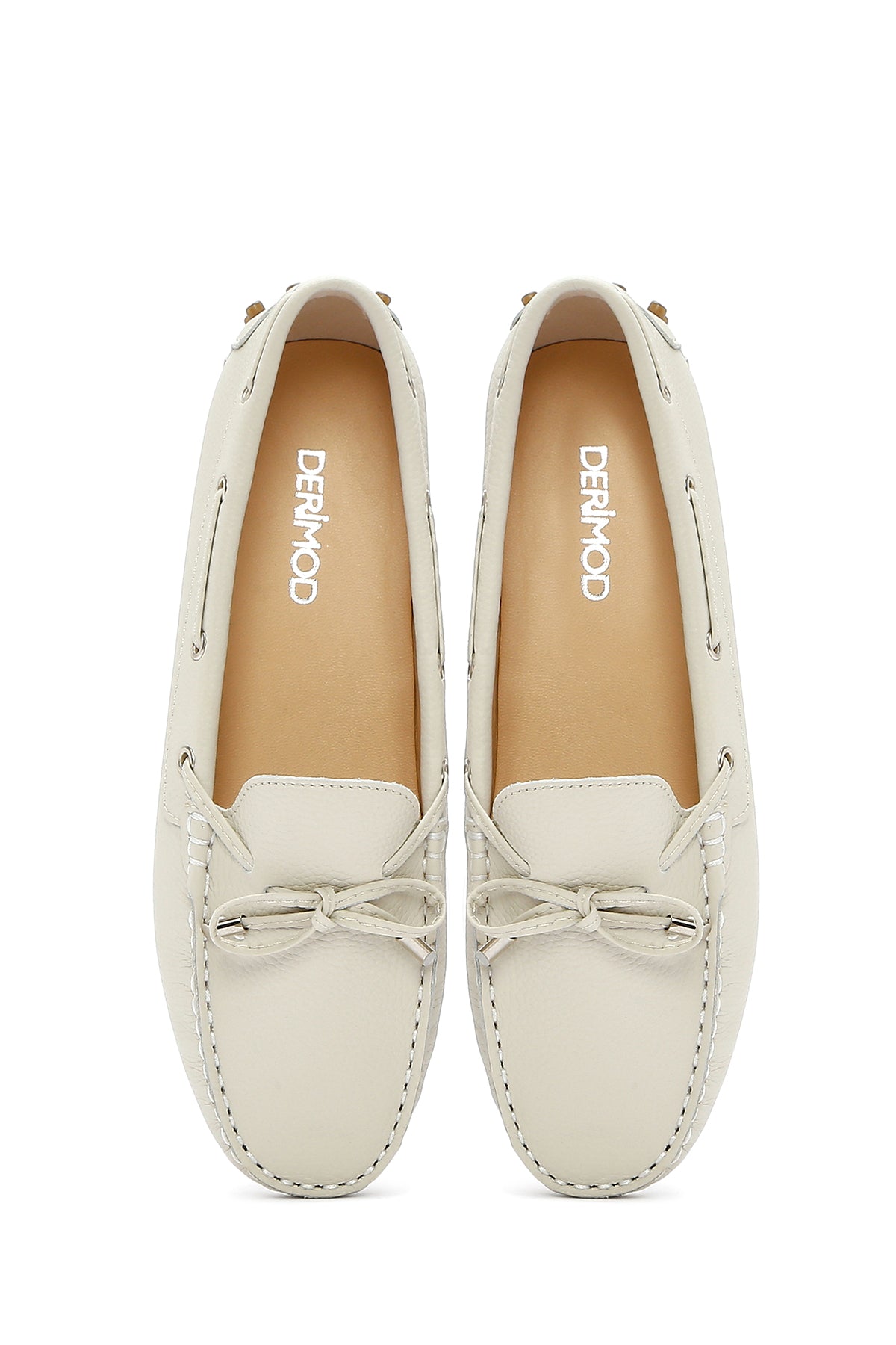Kadın Krem Püsküllü Deri Loafer
