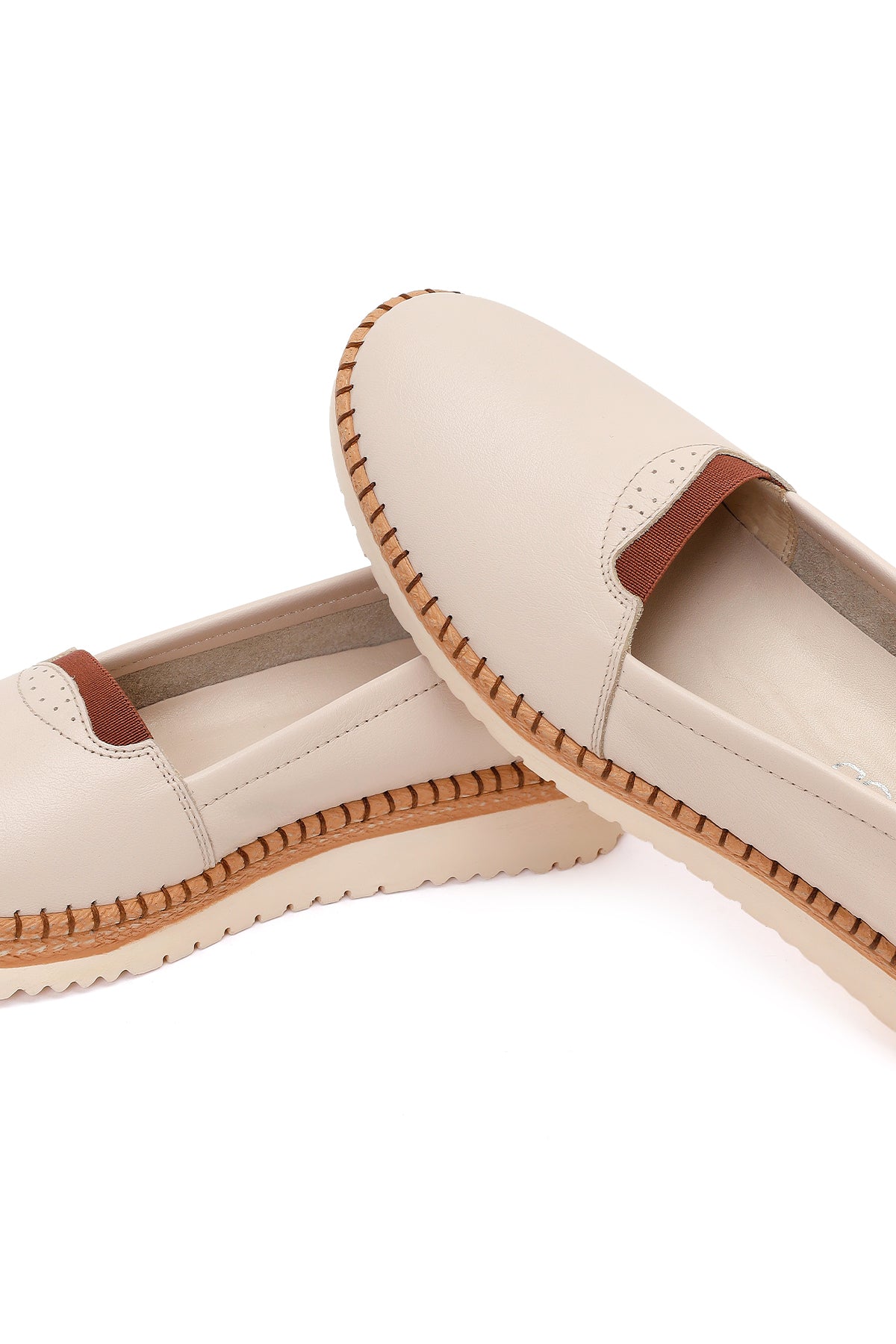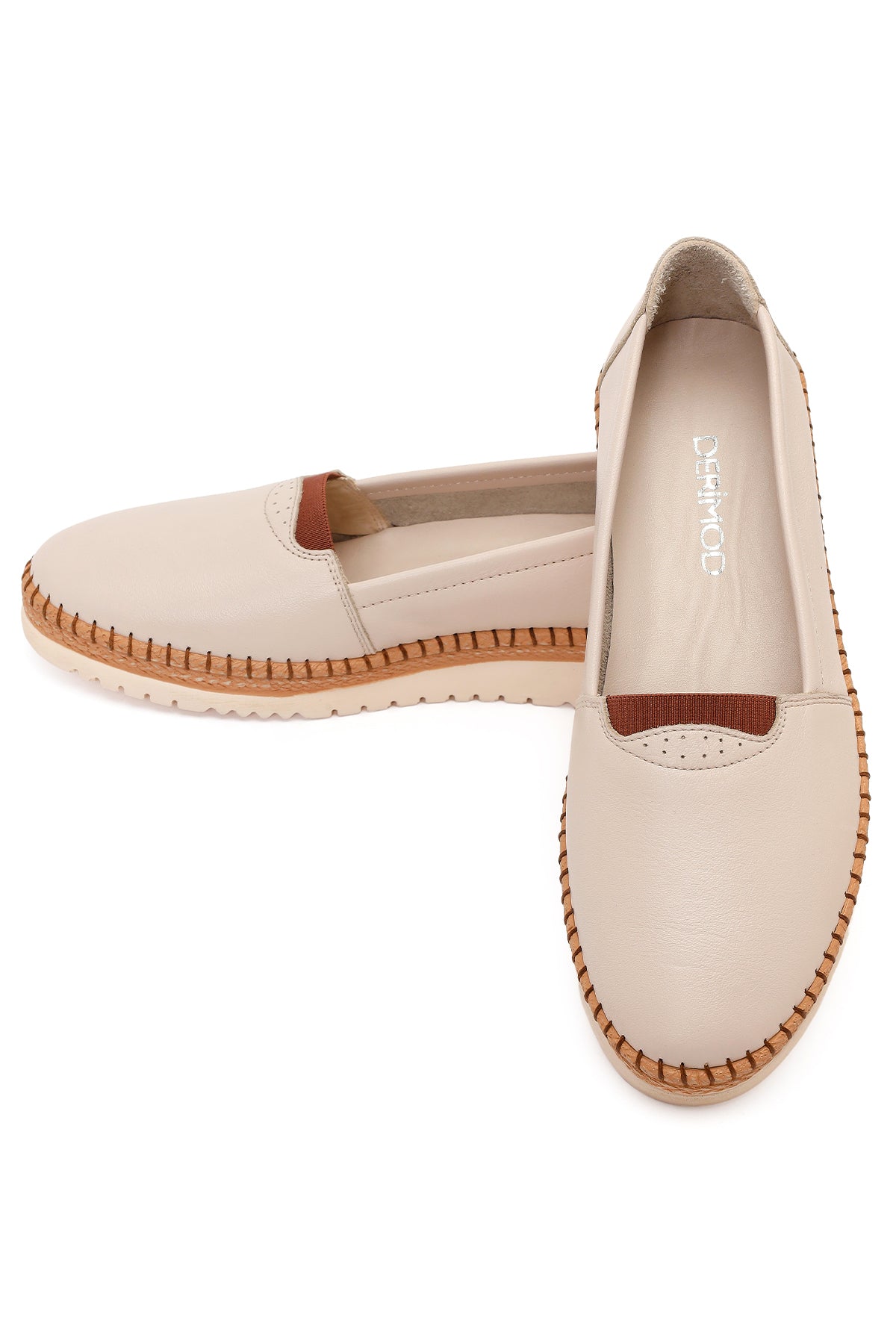 کفش زنانه چرم کرم لژدار راحتی دری مد