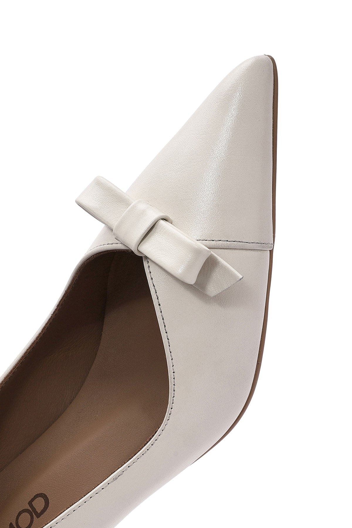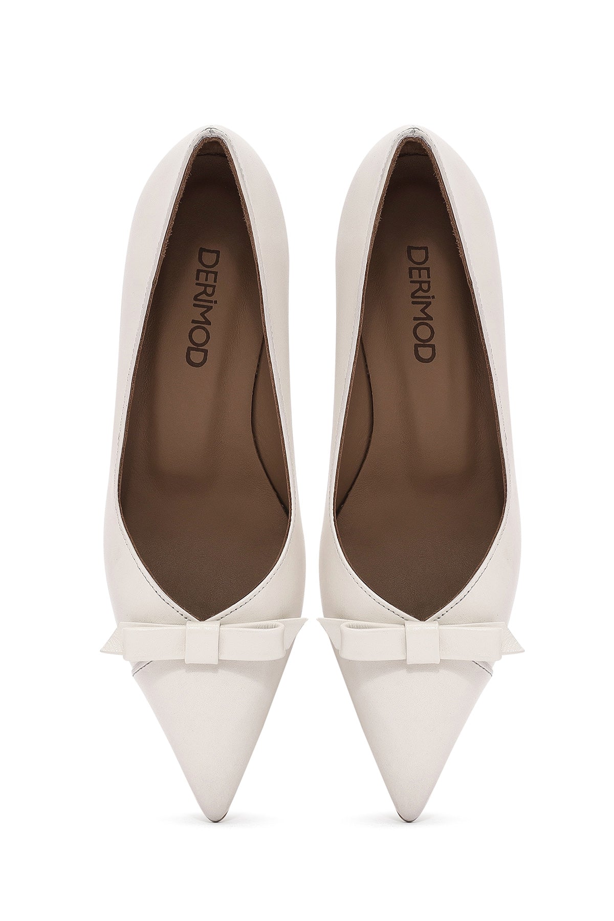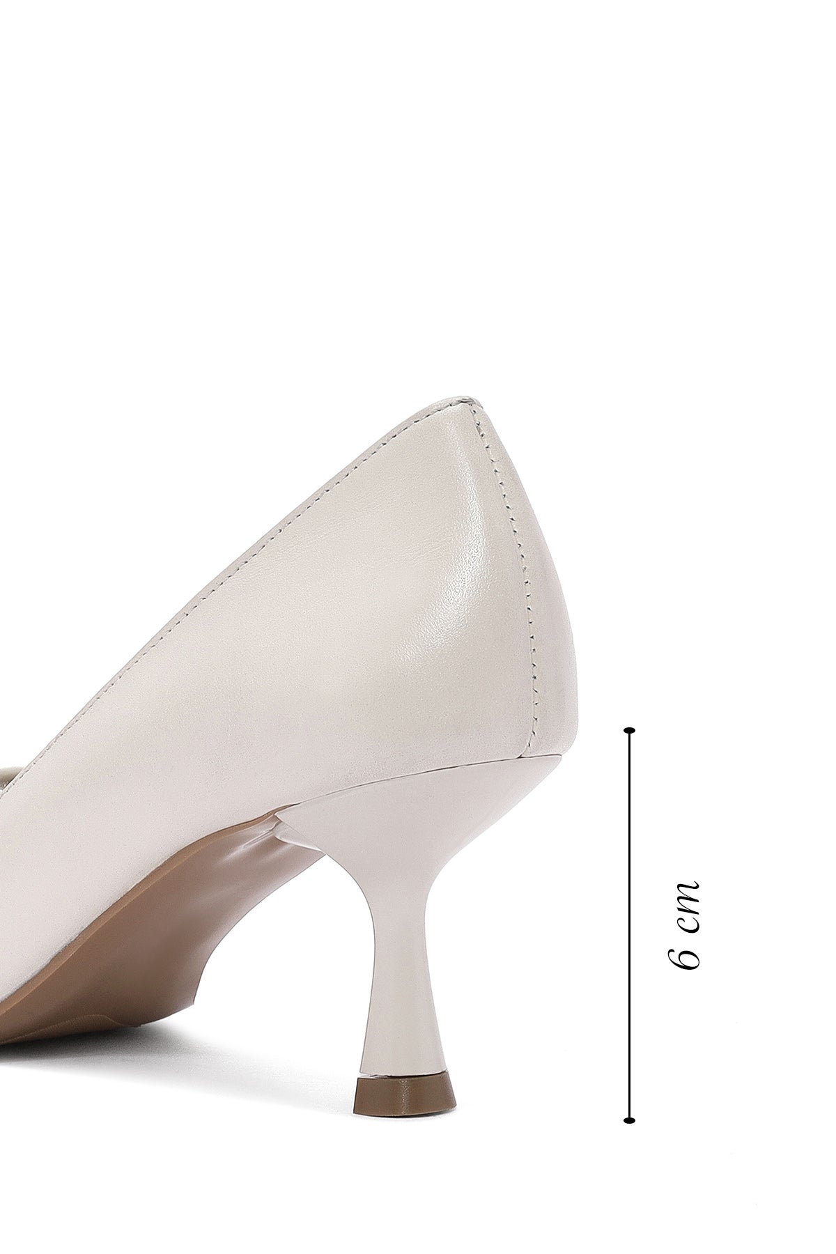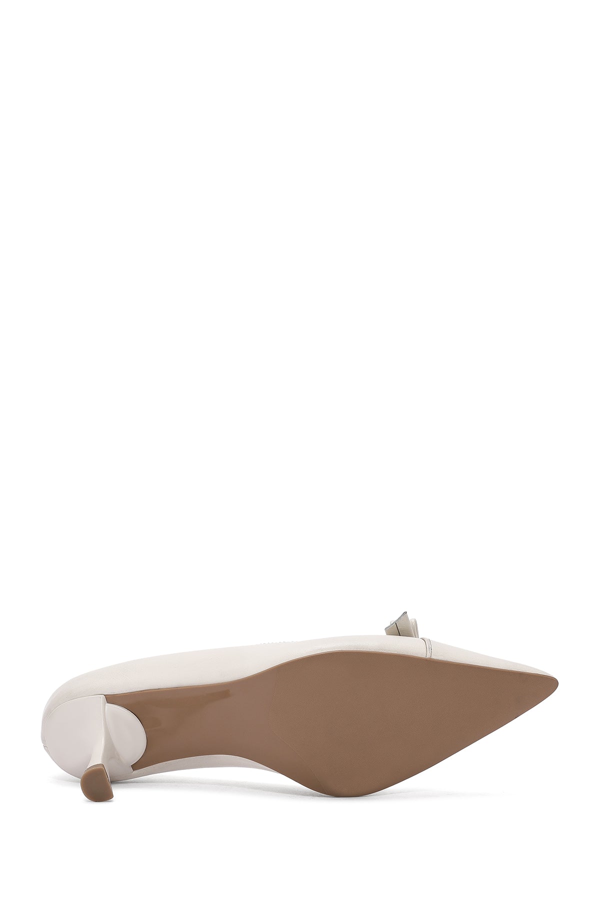 Kadın Krem İnce Kısa Topuklu Deri Stiletto