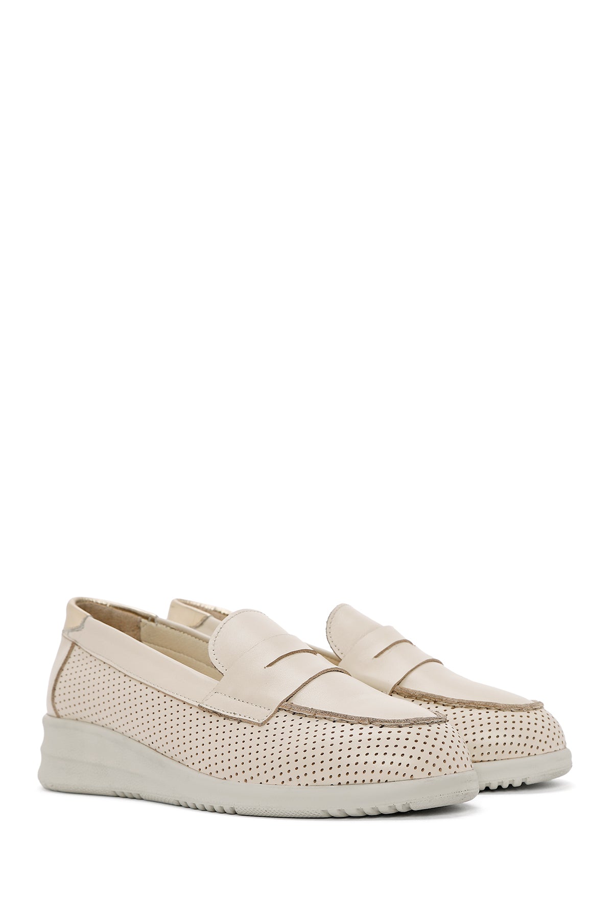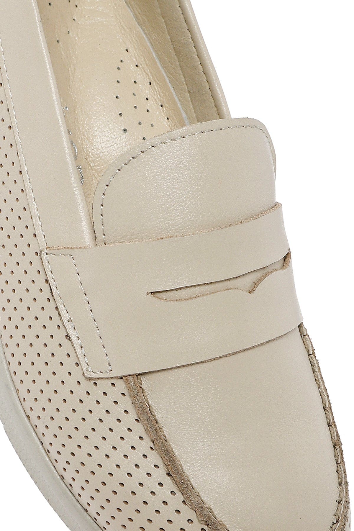 Kadın Krem Dolgu Topuklu Deri Comfort Loafer