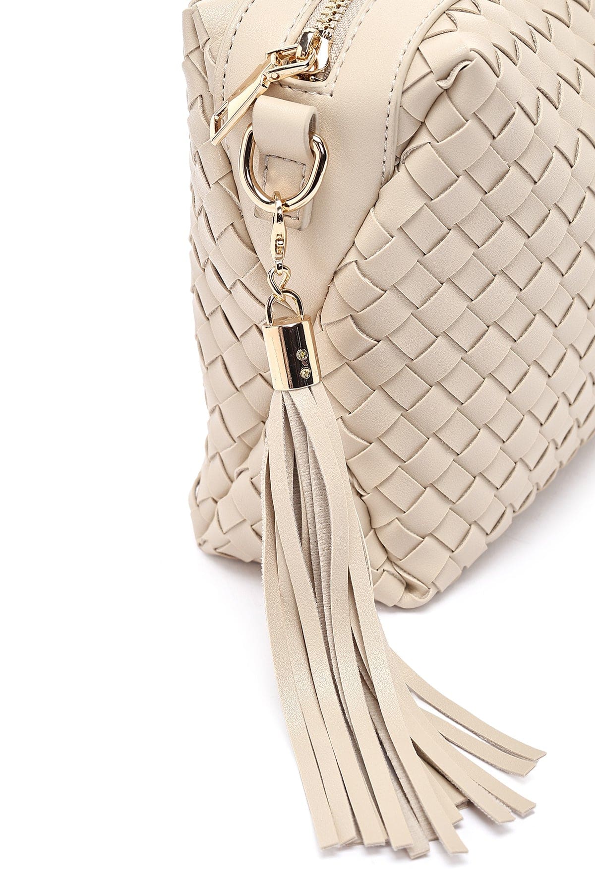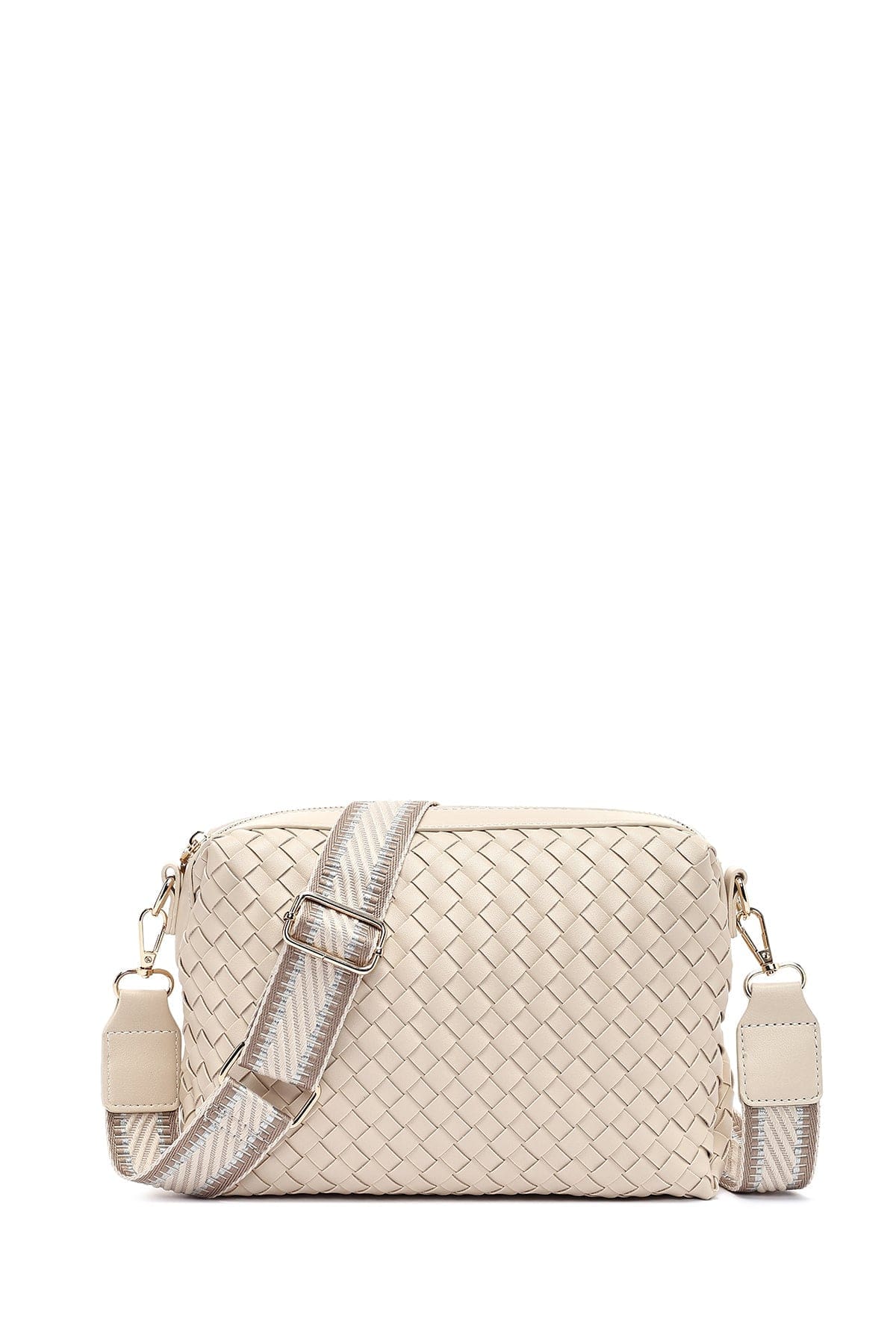 کیف کراس بادی زنانه چرم کرم بافتدار دری مد